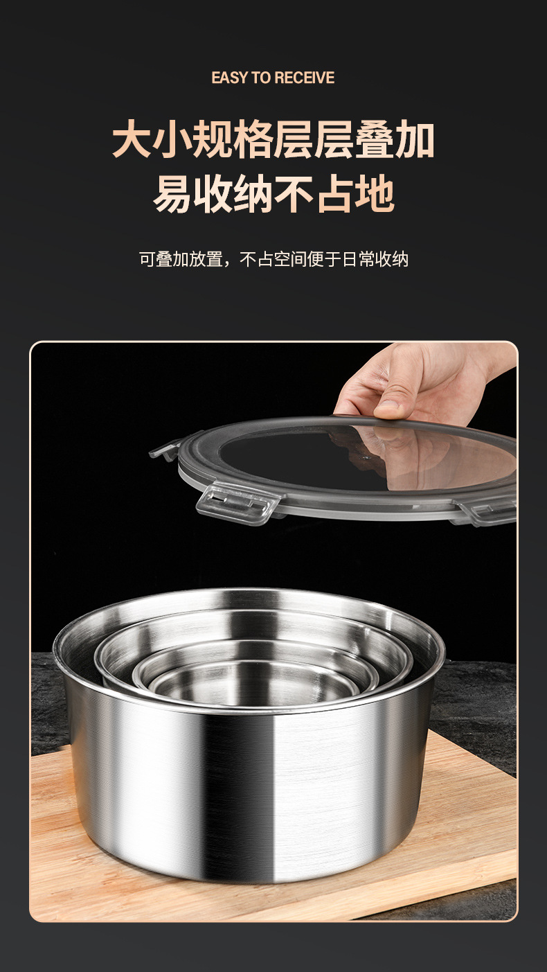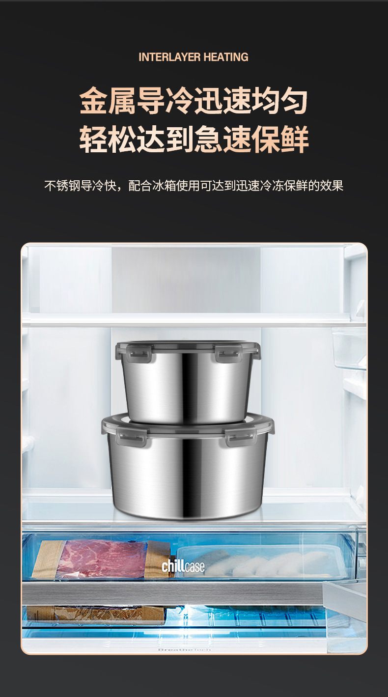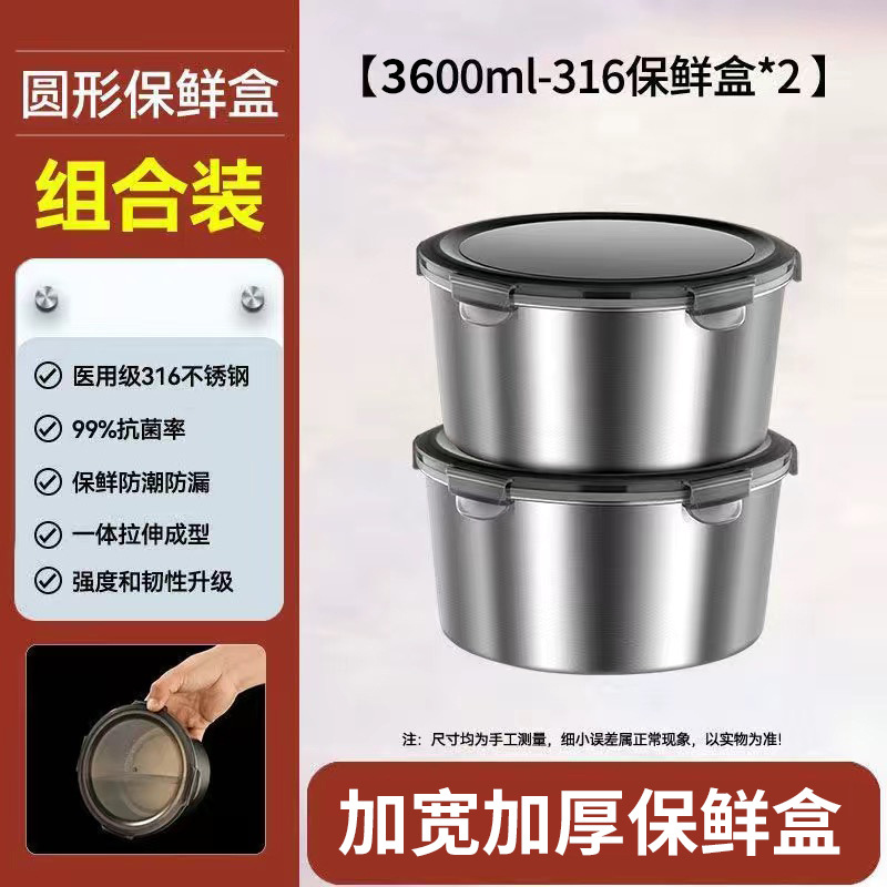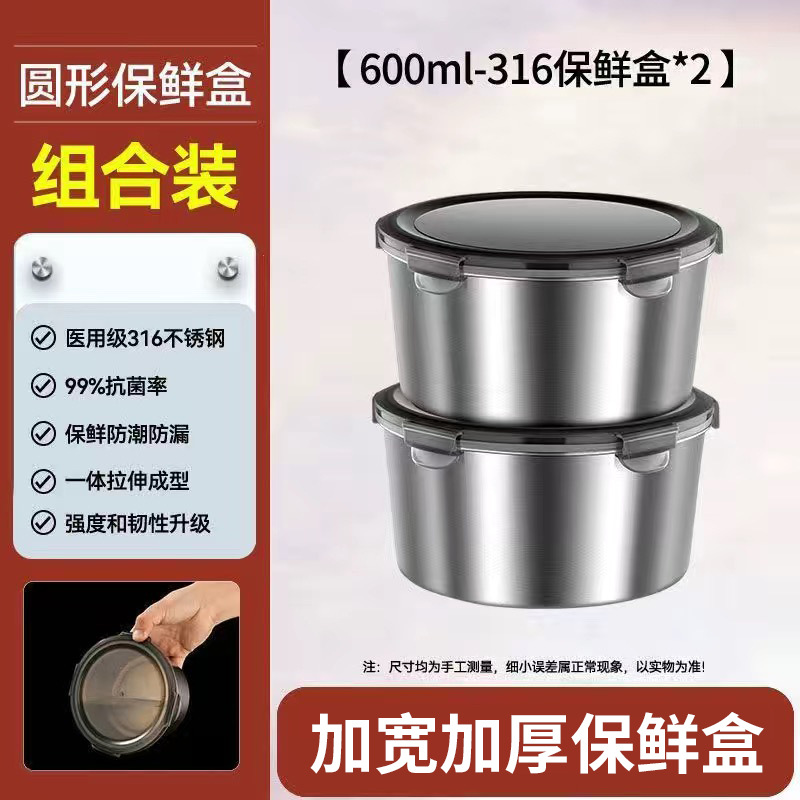 316不锈钢保鲜盒食品级圆形饭盒野餐盒水果便当盒密封带盖碗打包