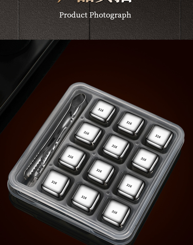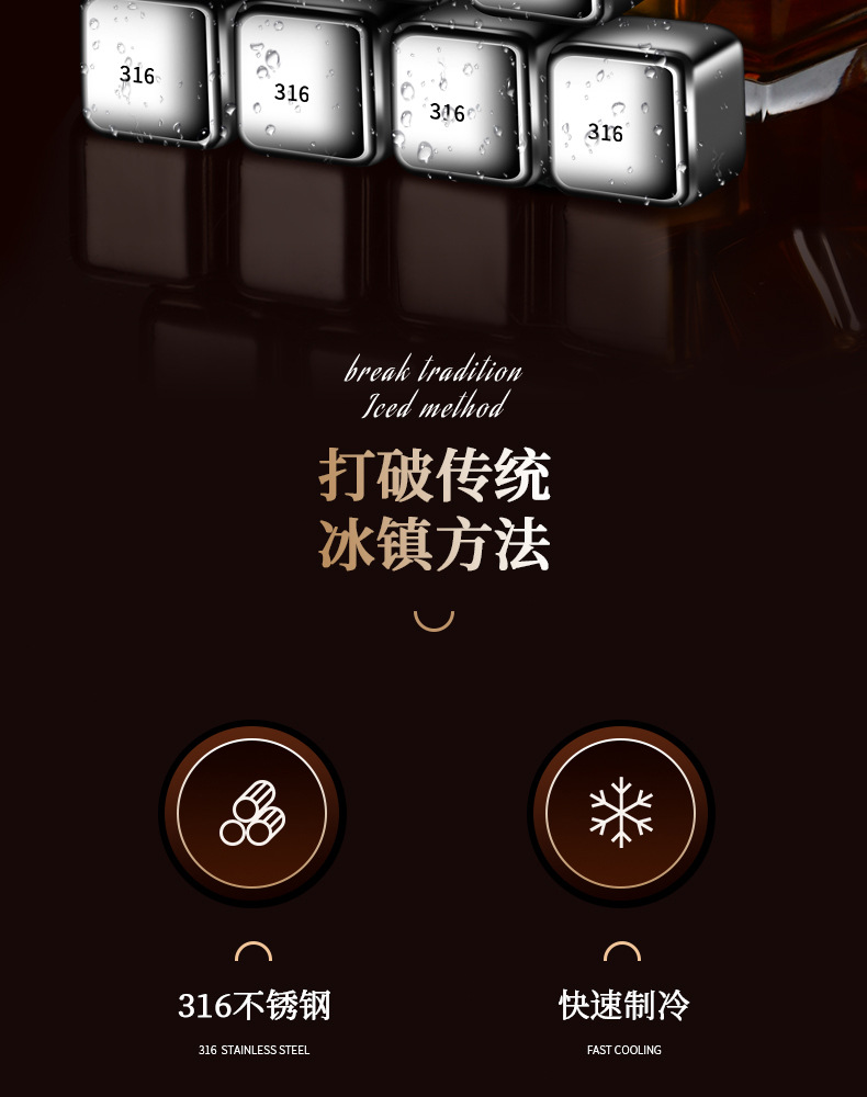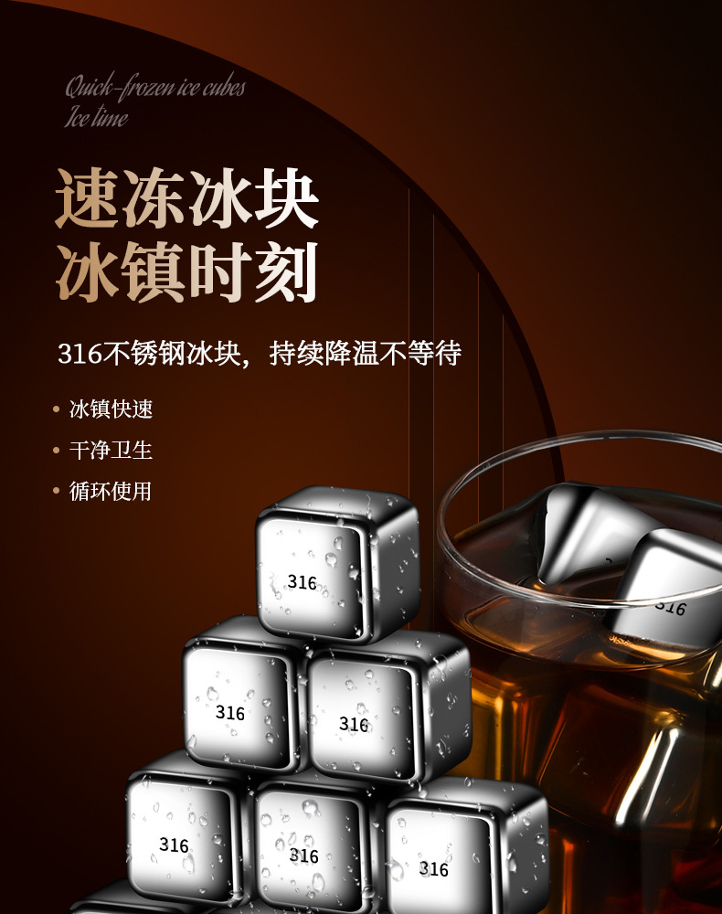316不锈钢冰块食品级速冻冰酒石红酒威士忌冰块套装冰球金属冰粒