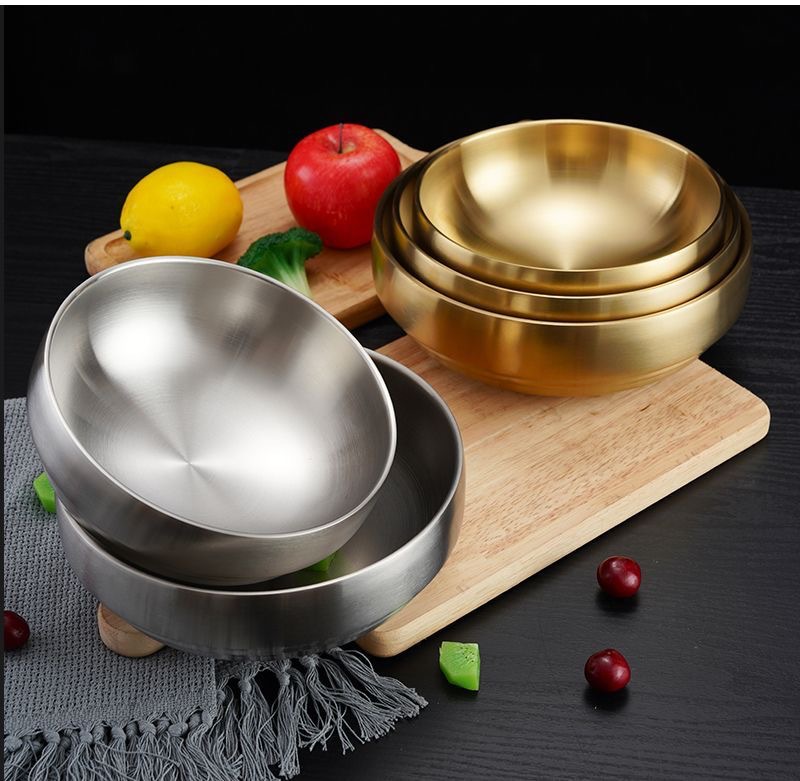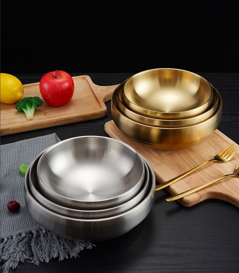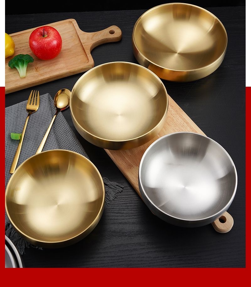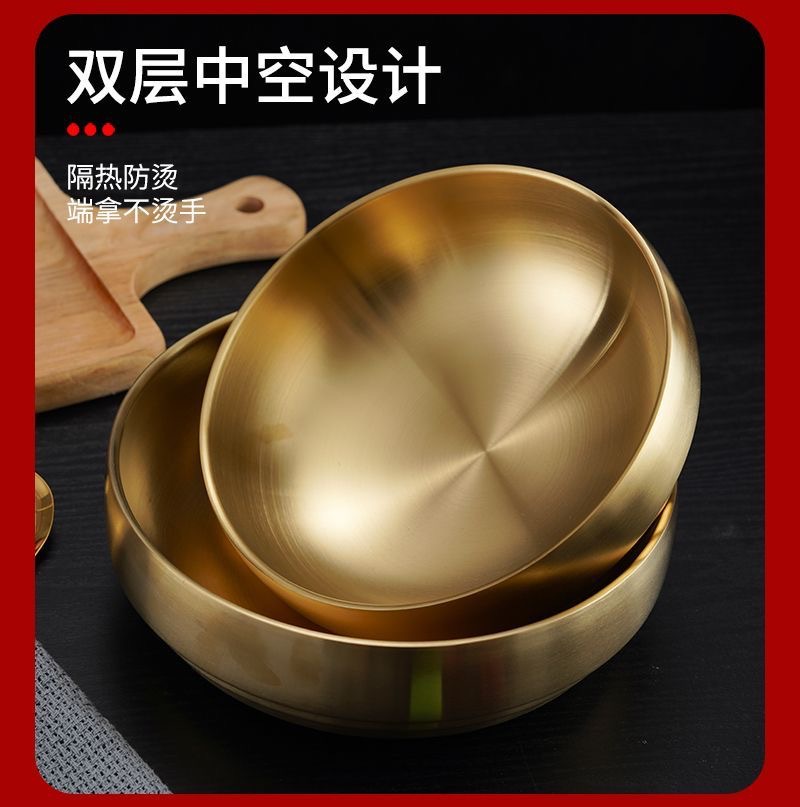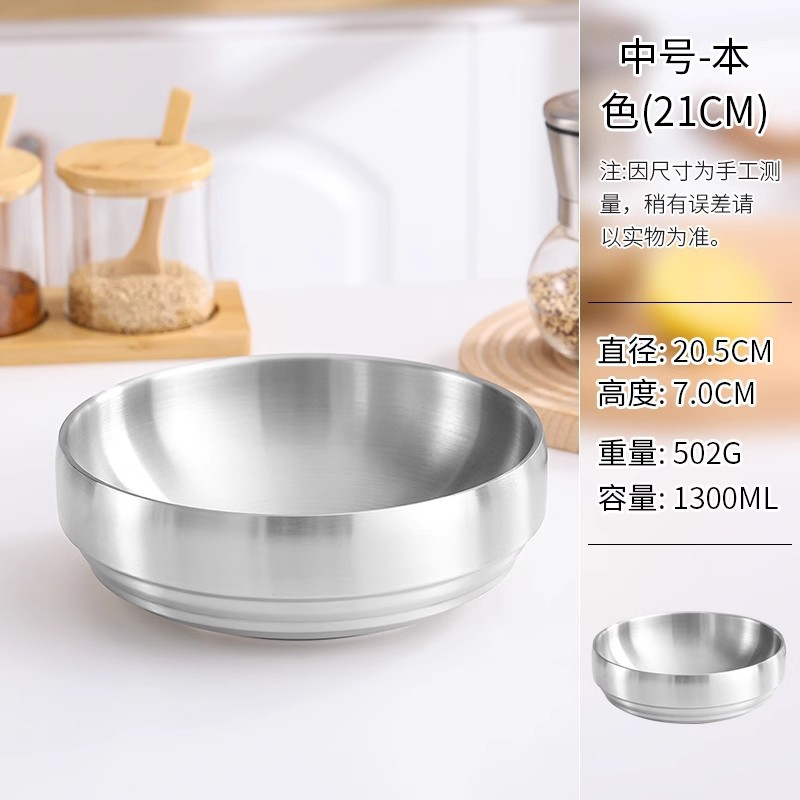 韩式冷面碗沙拉碗不锈钢食品级双层防烫特厚拌饭碗泡面碗冷面料理