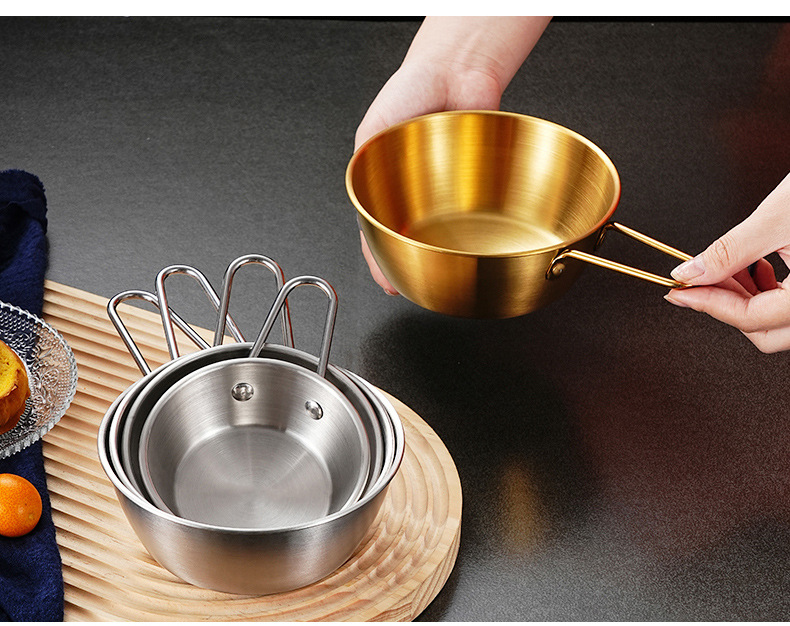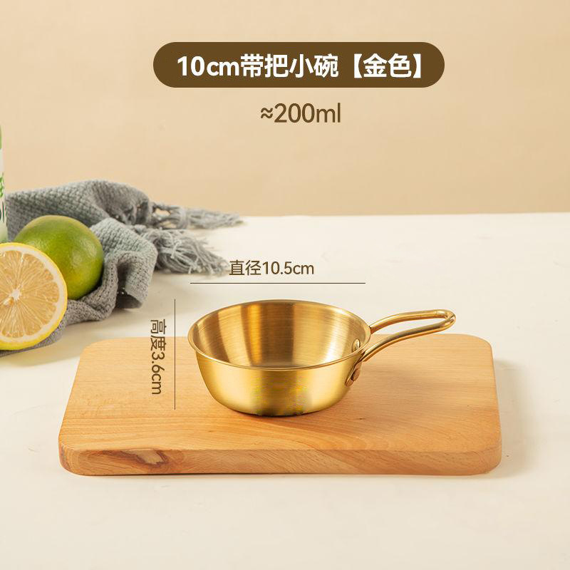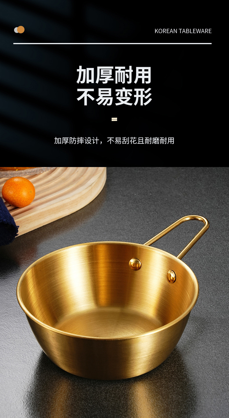 韩式金色米酒碗316不锈钢碗带把手小吃碗韩餐料理店专用碗调料碗