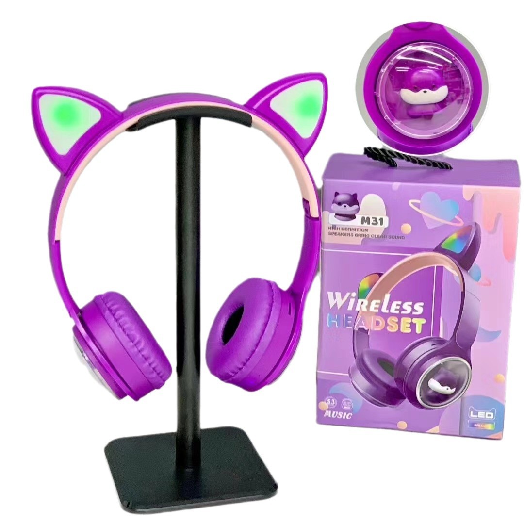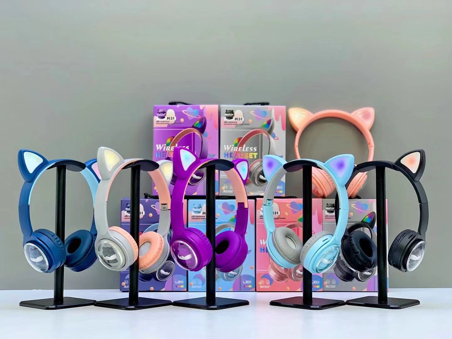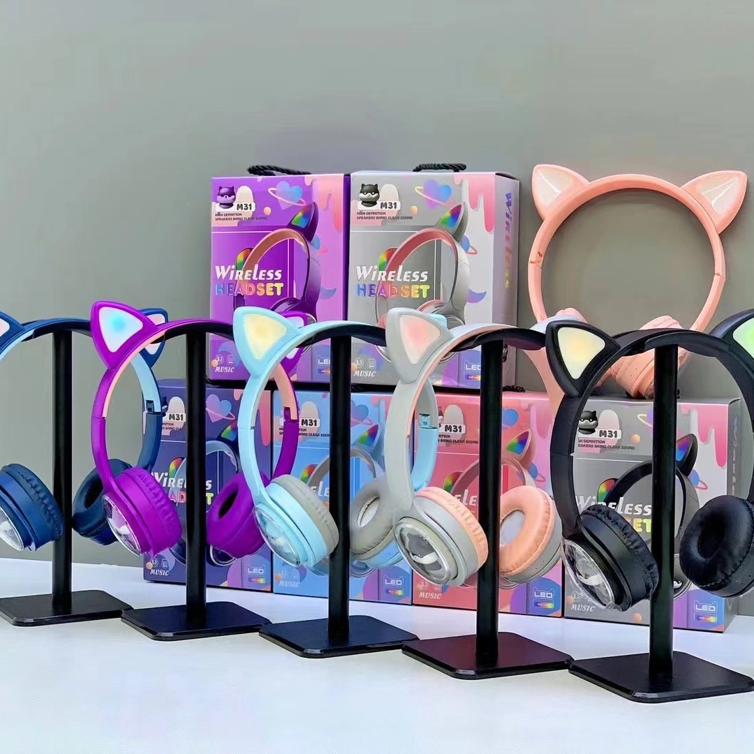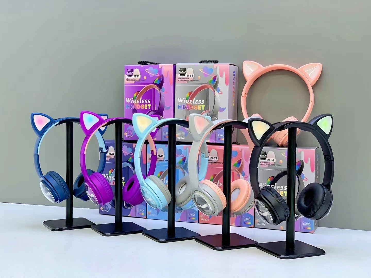 外贸爆款M31猫耳朵发光头戴式蓝牙耳机折叠P系列无线运动游戏耳机