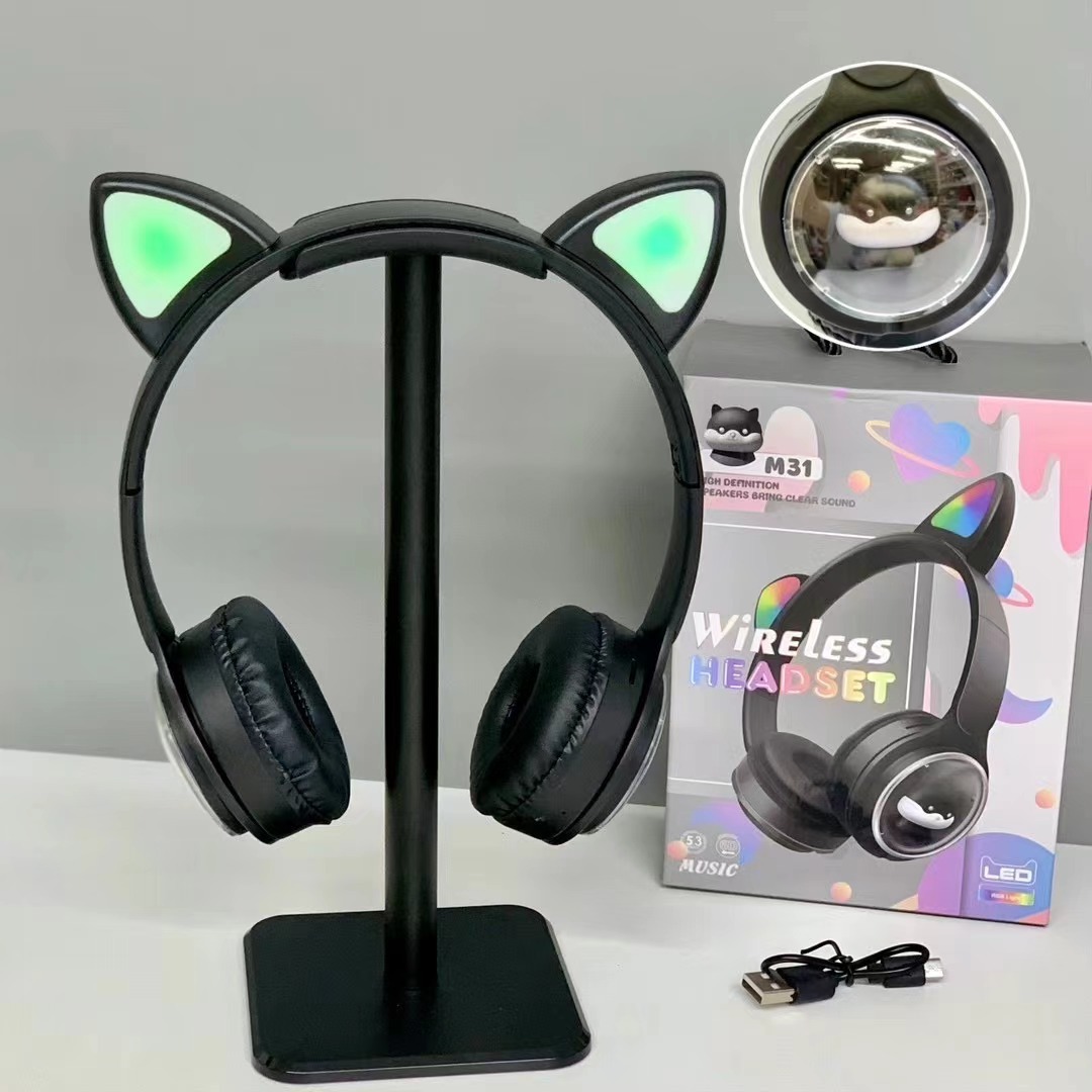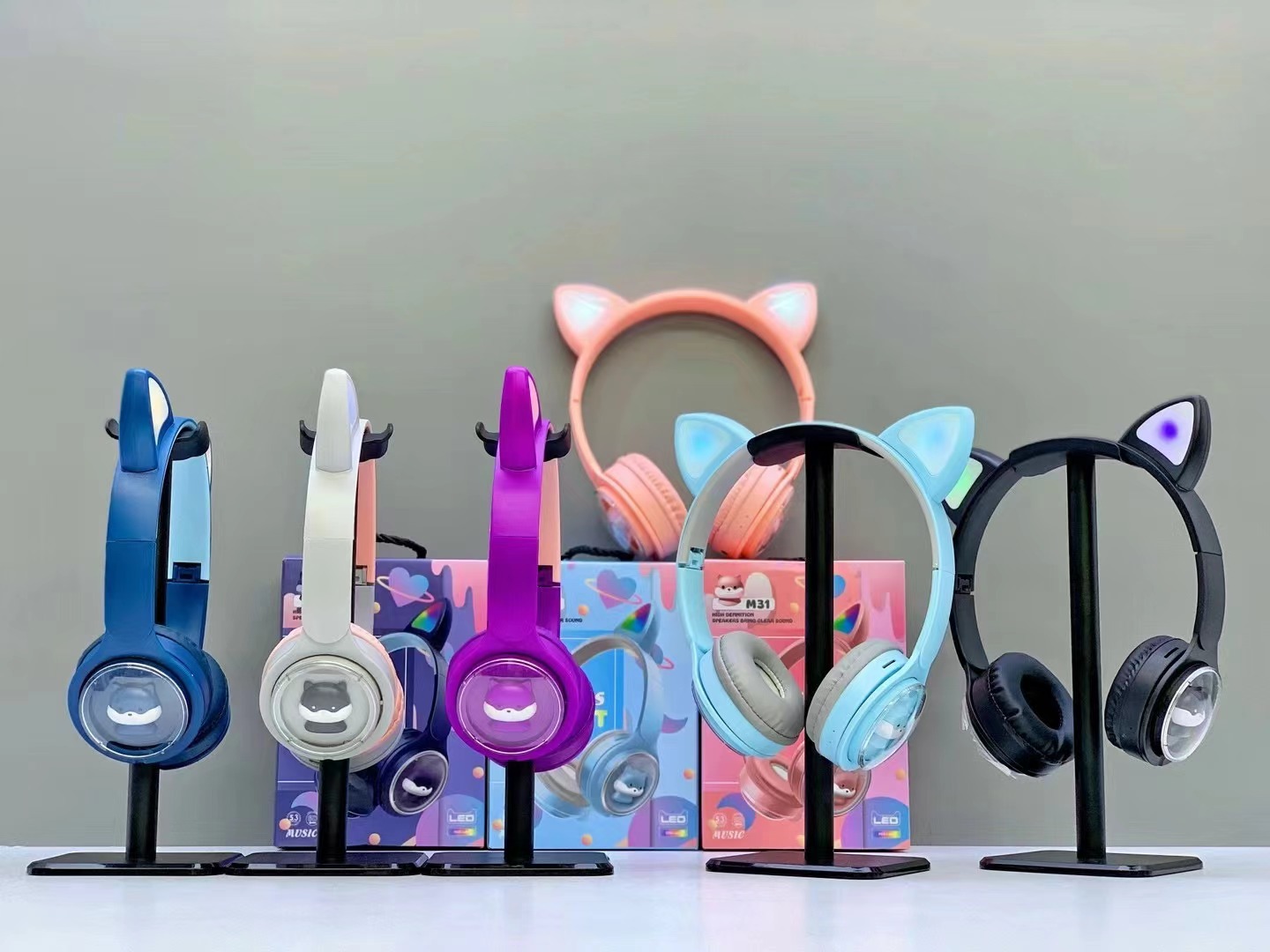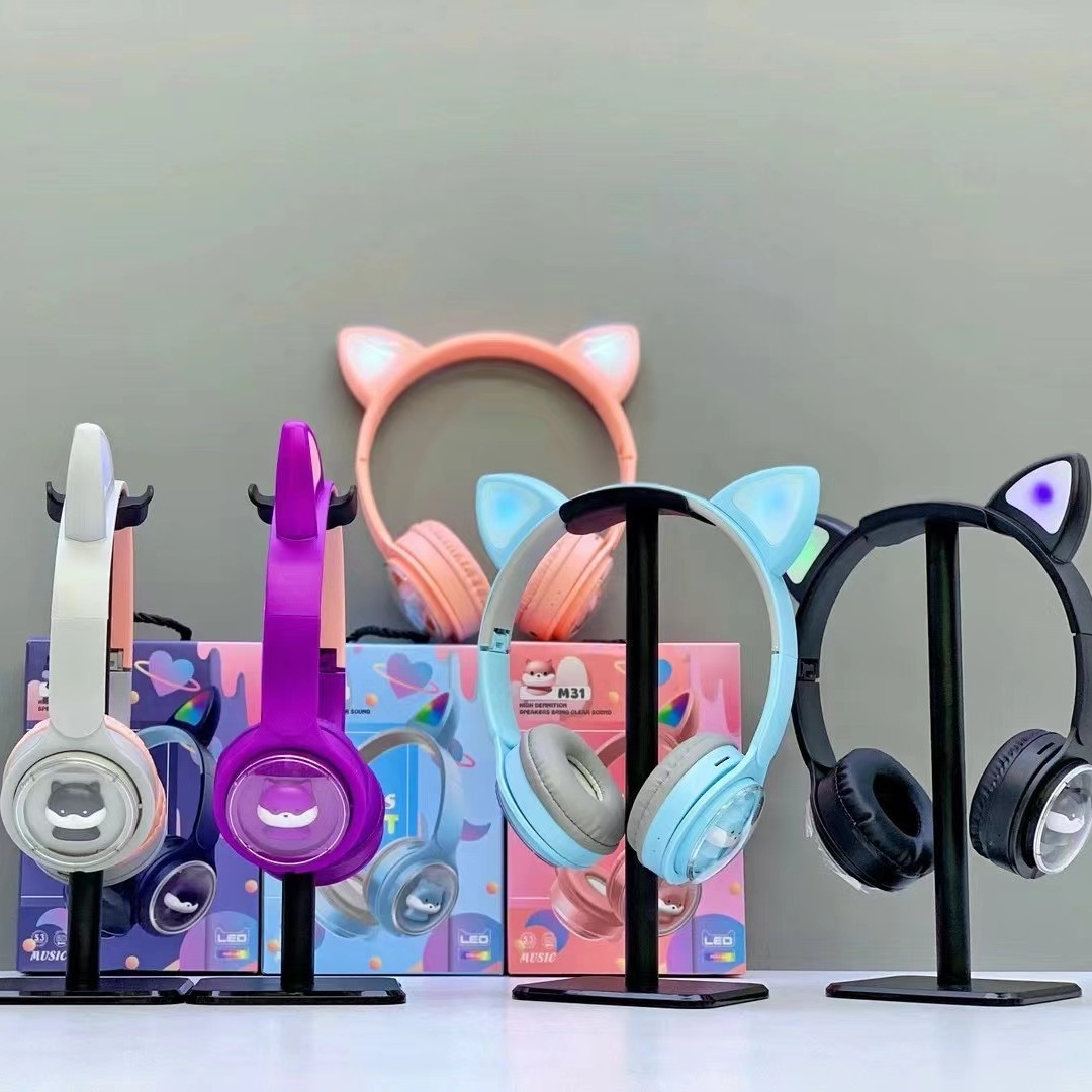 外贸爆款M31猫耳朵发光头戴式蓝牙耳机折叠P系列无线运动游戏耳机