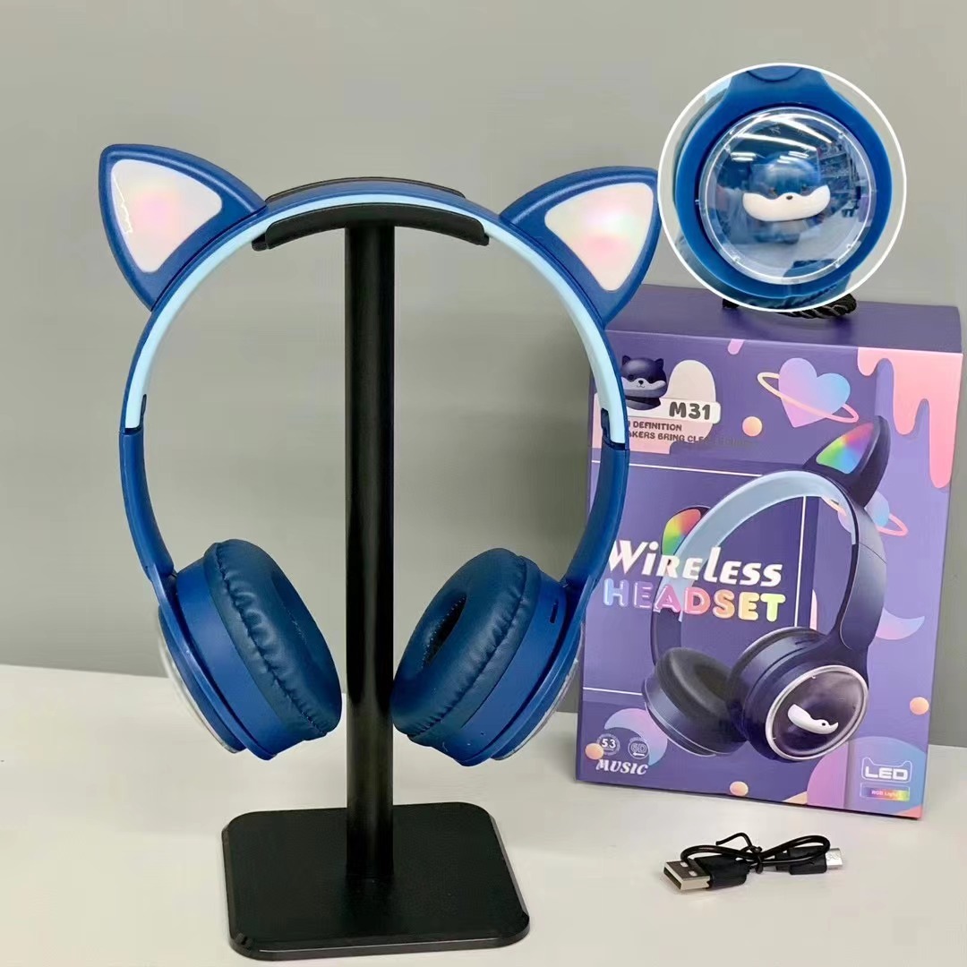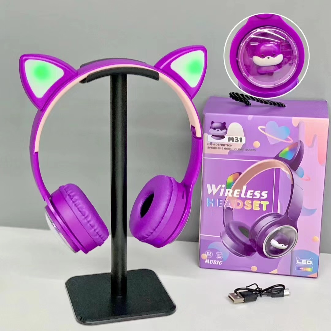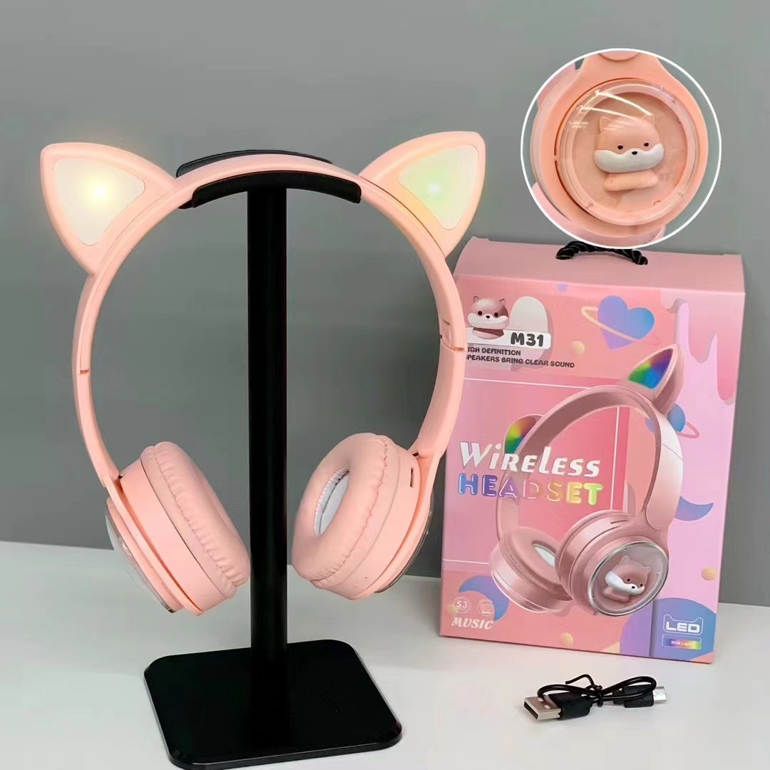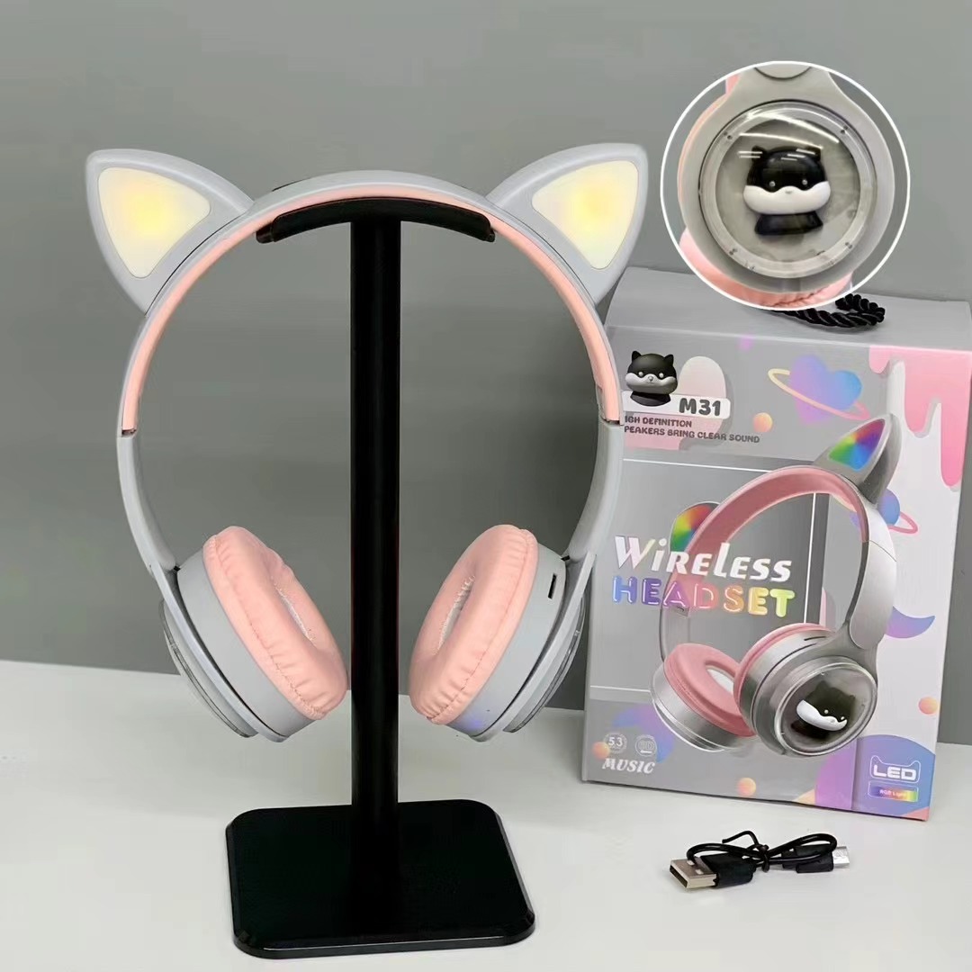 外贸爆款M31猫耳朵发光头戴式蓝牙耳机折叠P系列无线运动游戏耳机
