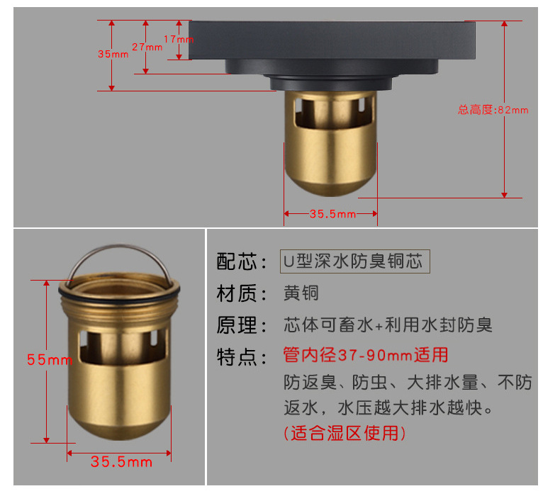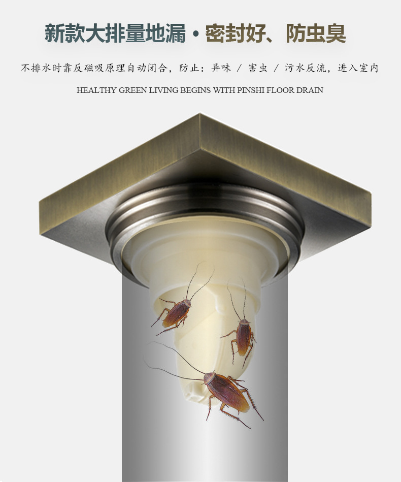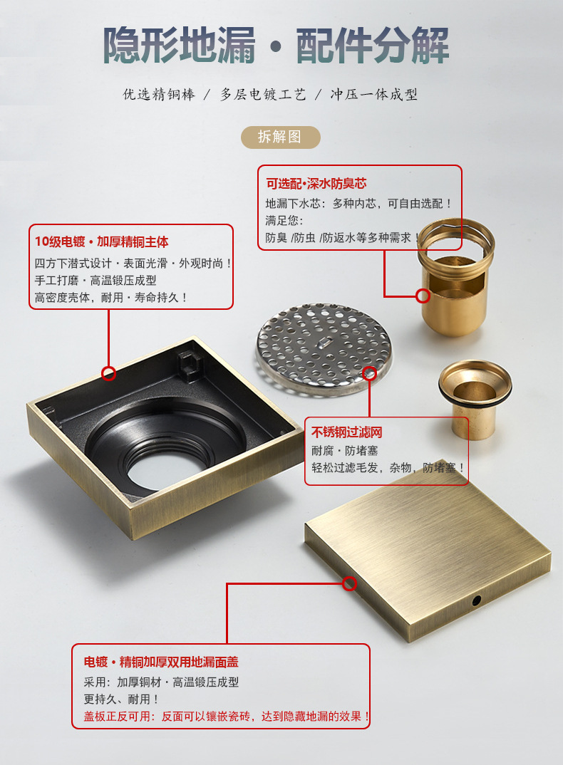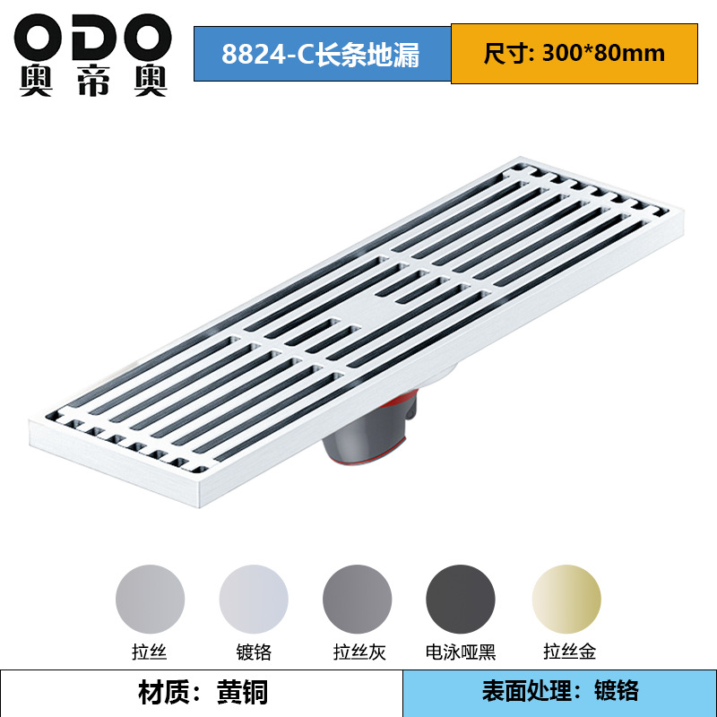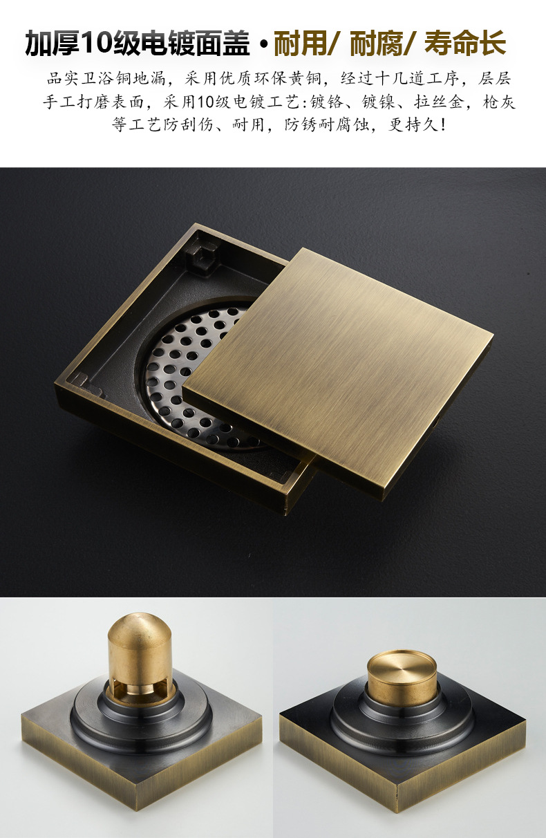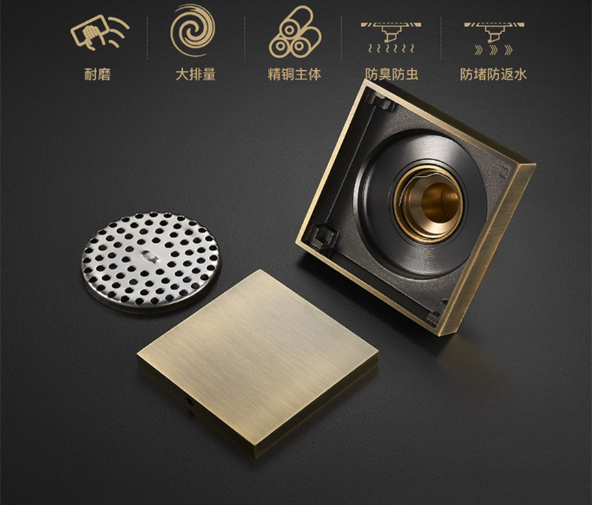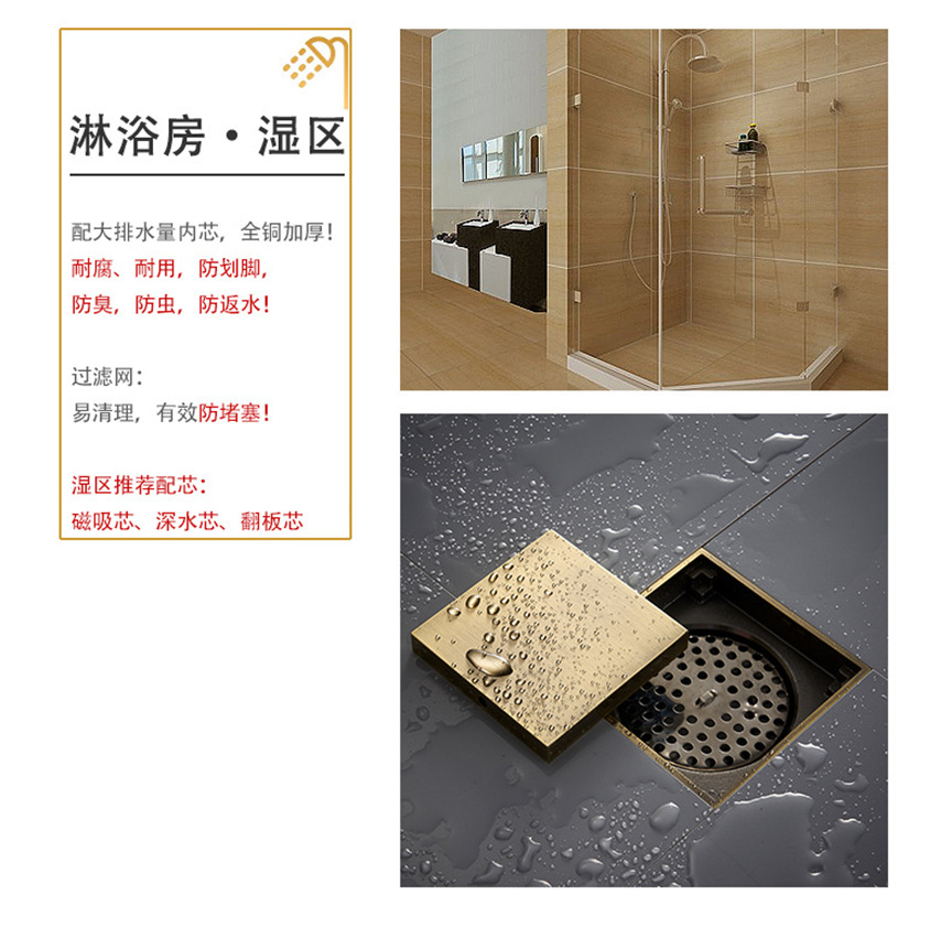 卫生间全铜防臭地漏大排量加厚长条地漏厨卫洗衣机防臭芯隐形地漏