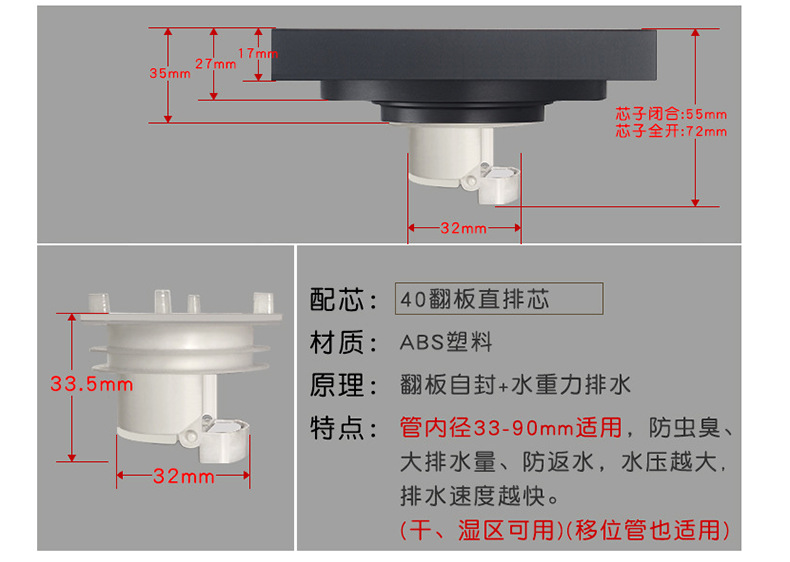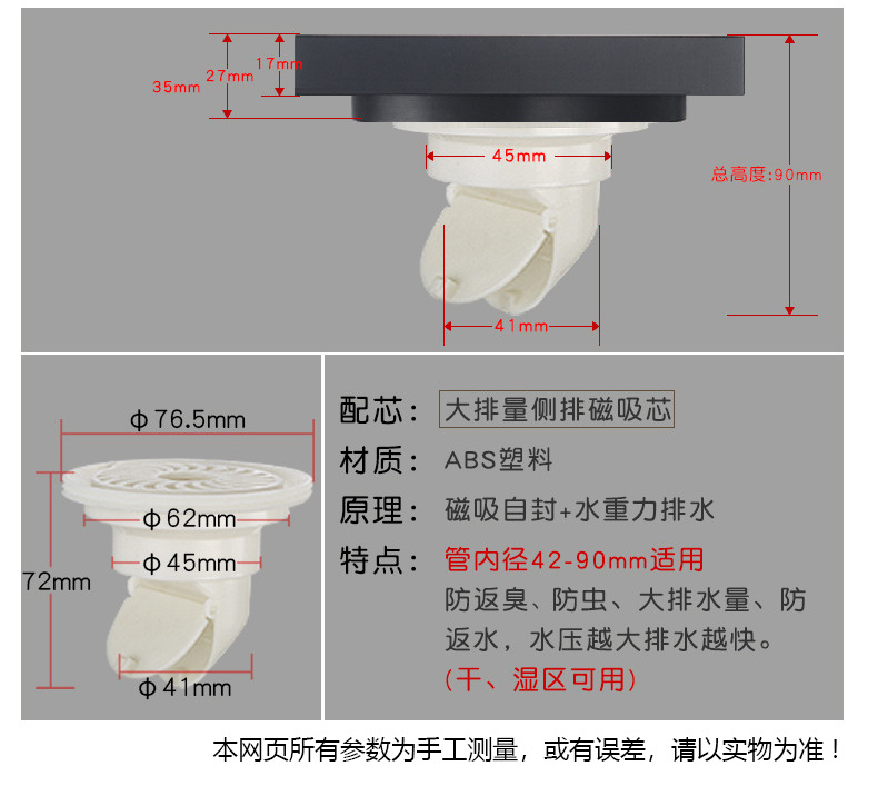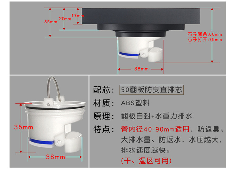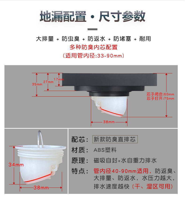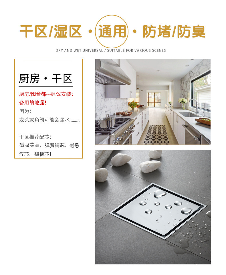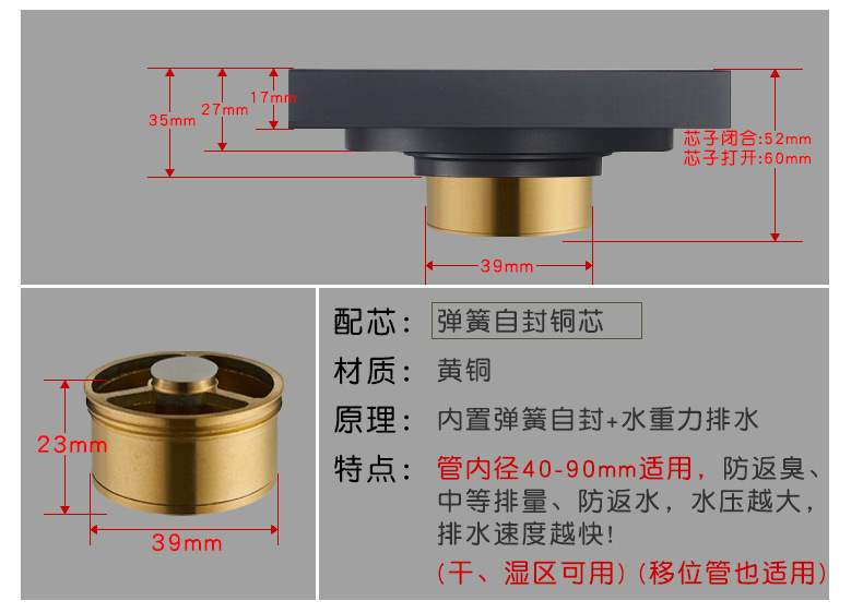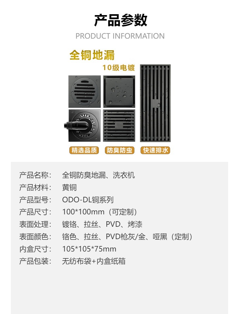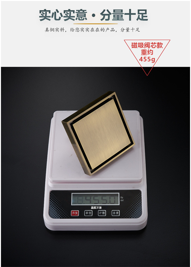 卫生间全铜防臭地漏大排量加厚长条地漏厨卫洗衣机防臭芯隐形地漏