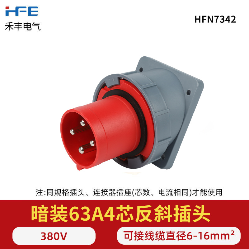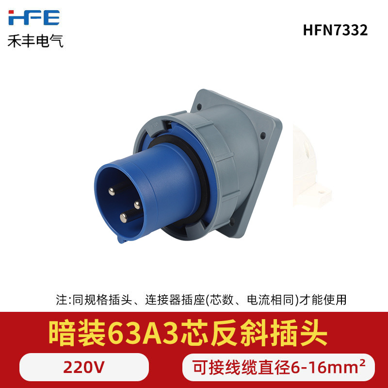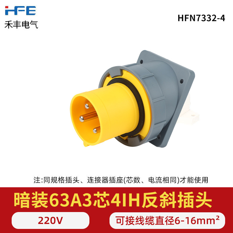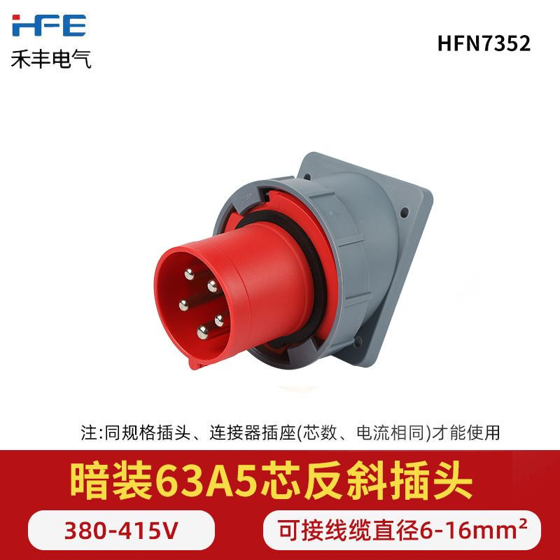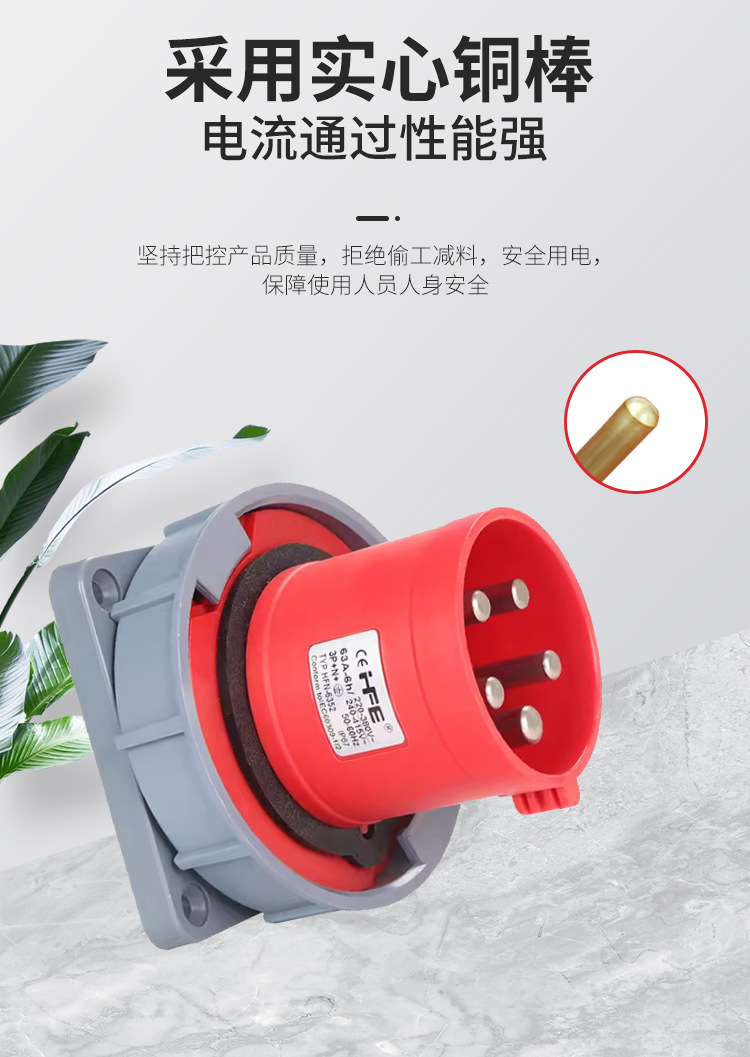 航空工业暗座连接器63A125A明装头3芯4线5孔 IP67防水爆器具反插