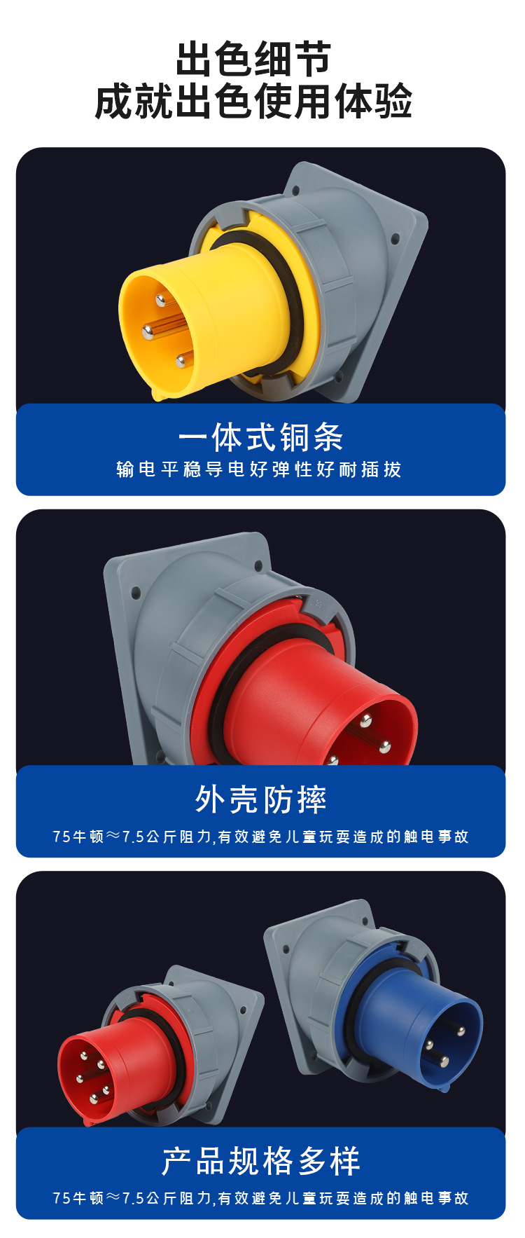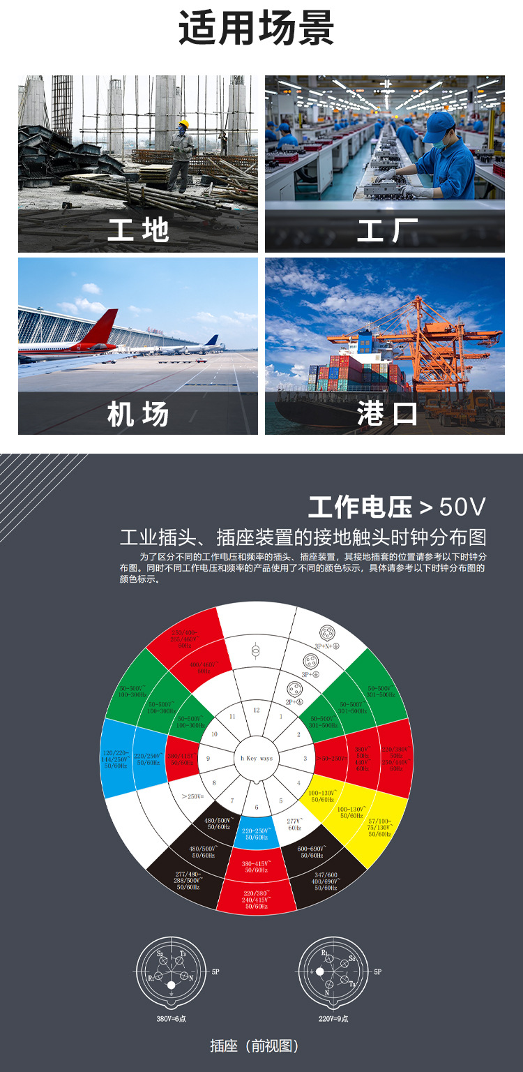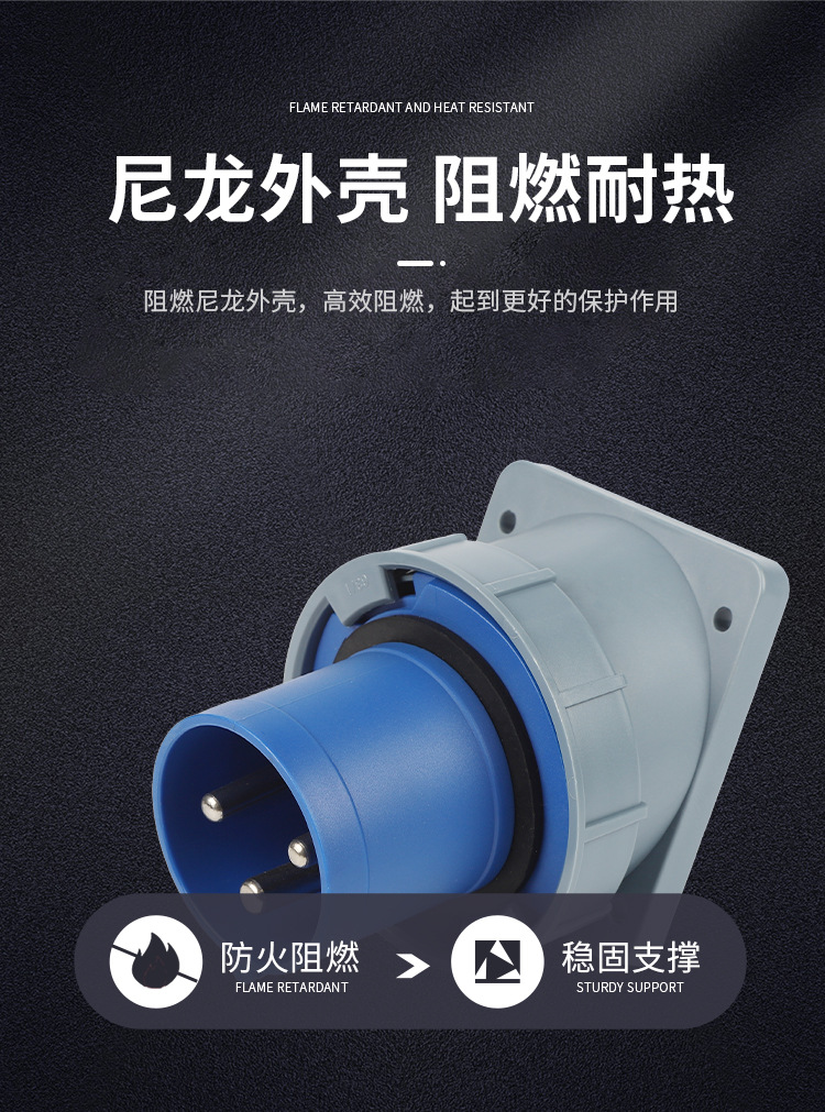 航空工业暗座连接器63A125A明装头3芯4线5孔 IP67防水爆器具反插