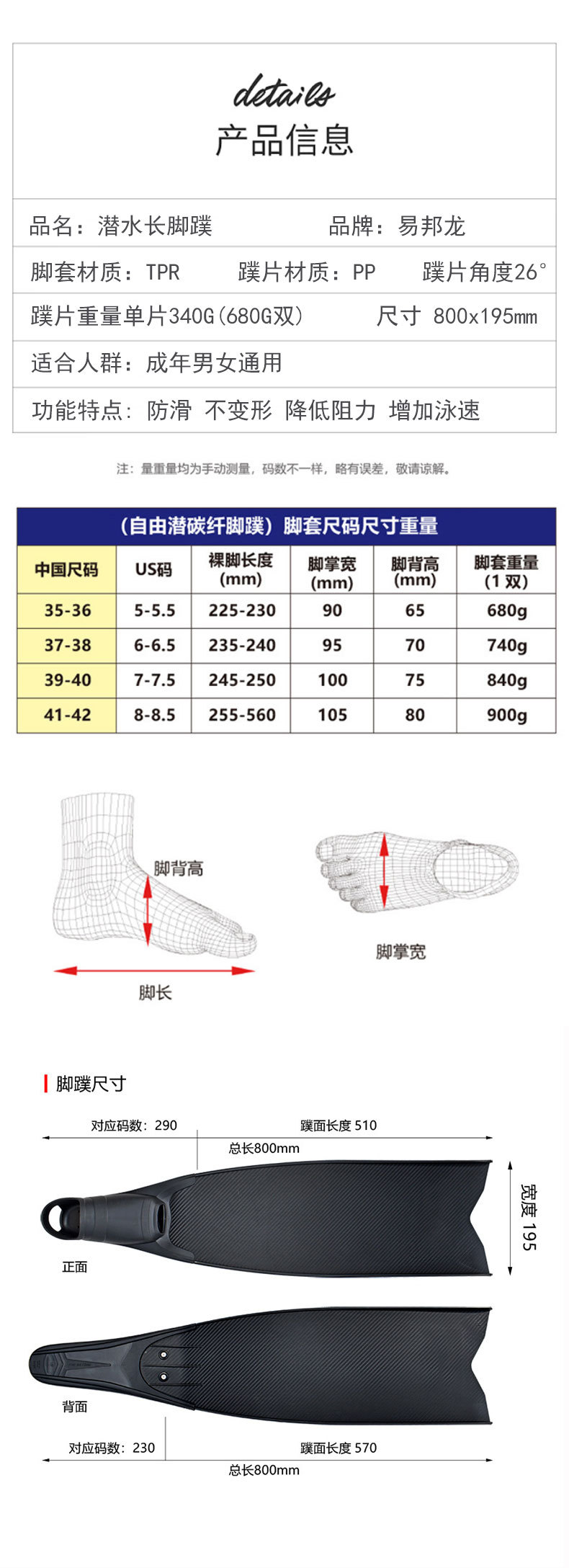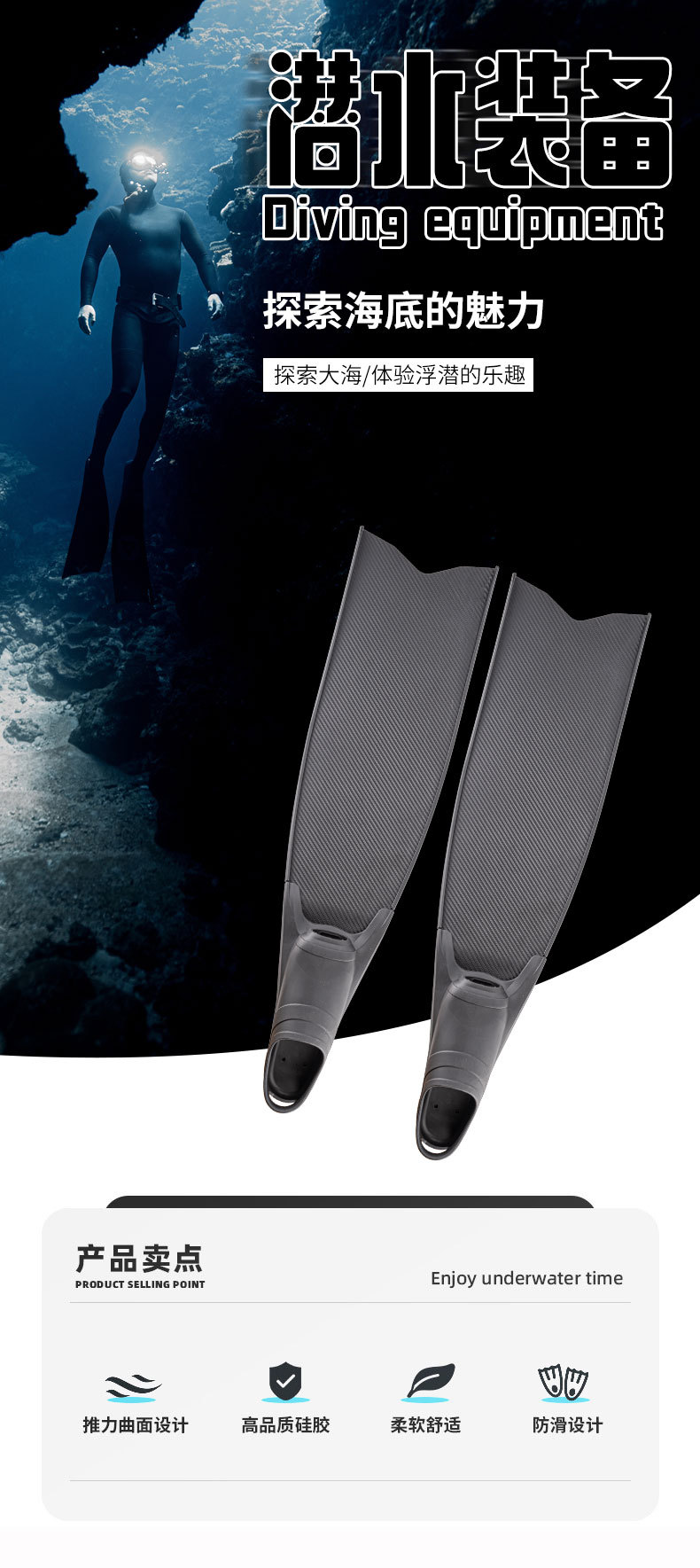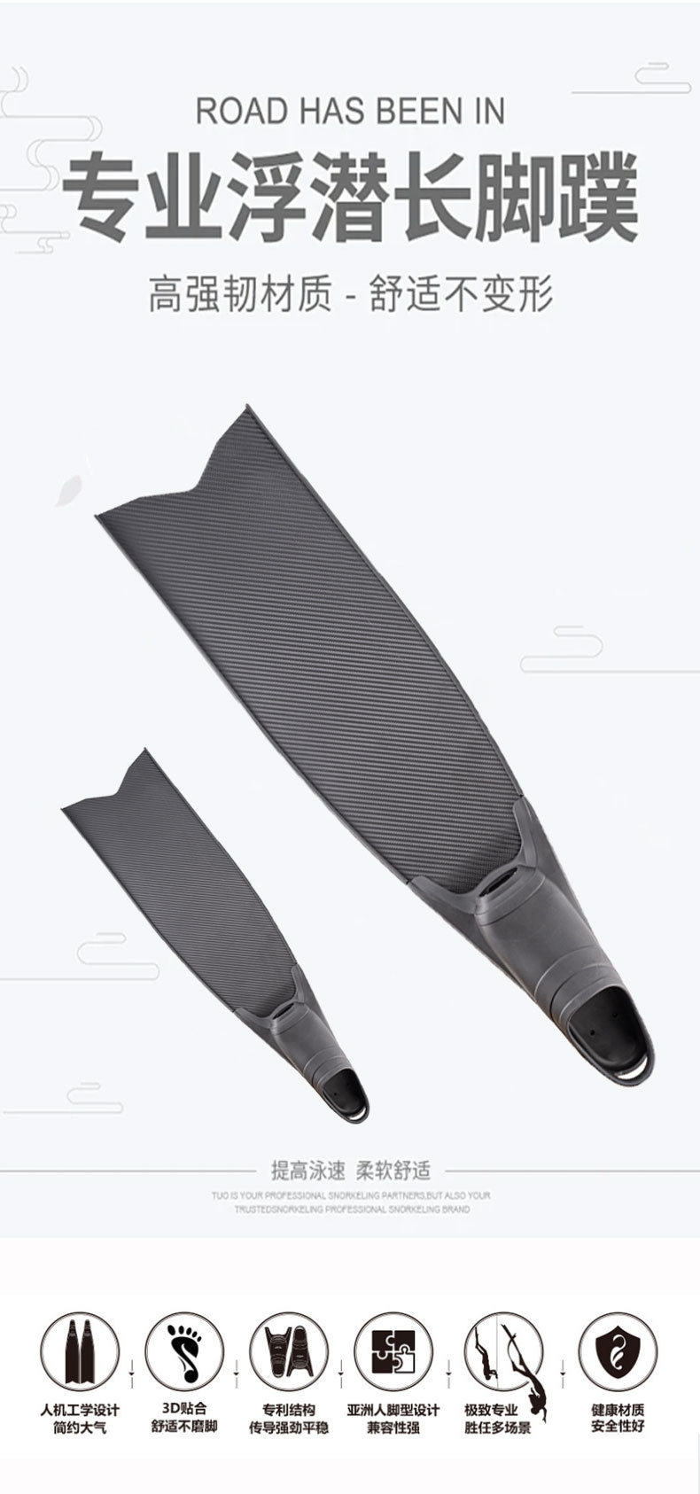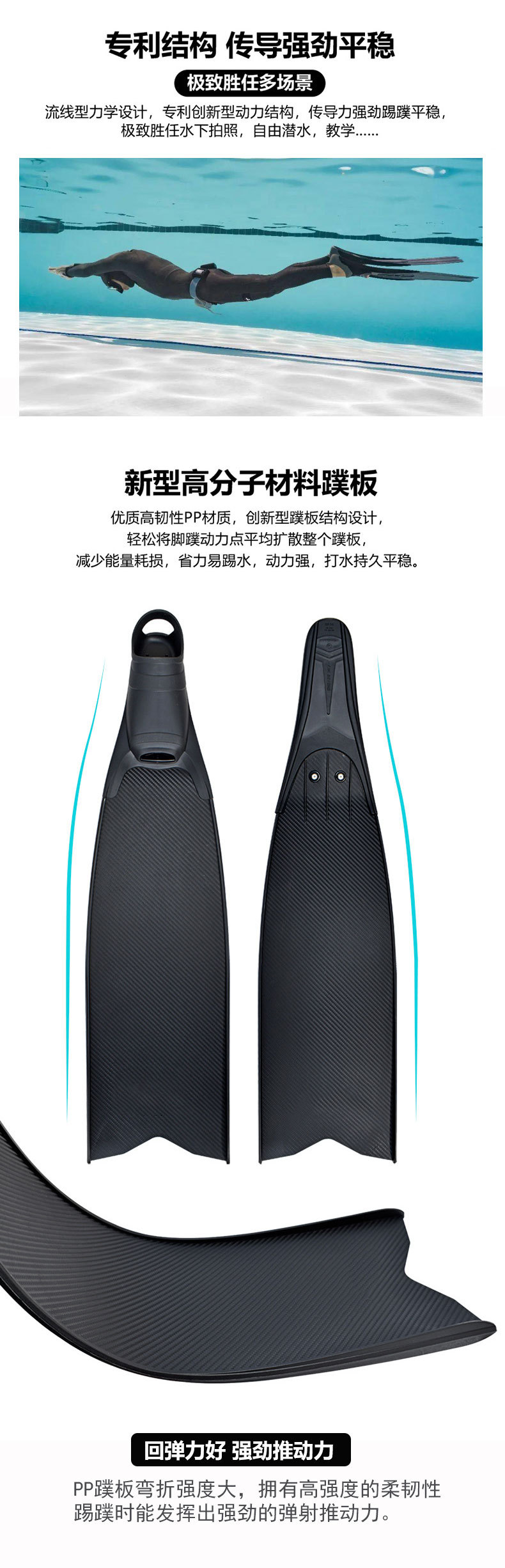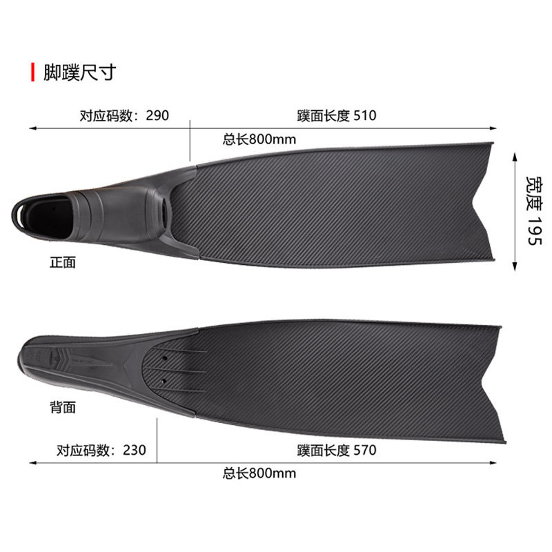 定制自由潜水PP脚蹼深潜专用长脚蹼纯碳纤潜水脚蹼厂家供应YBLKJ