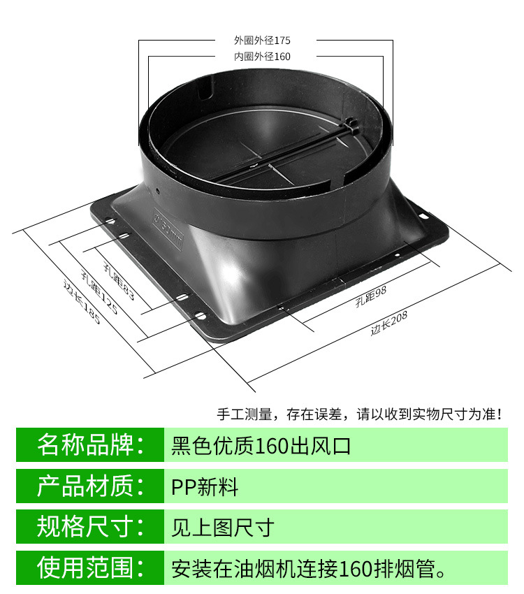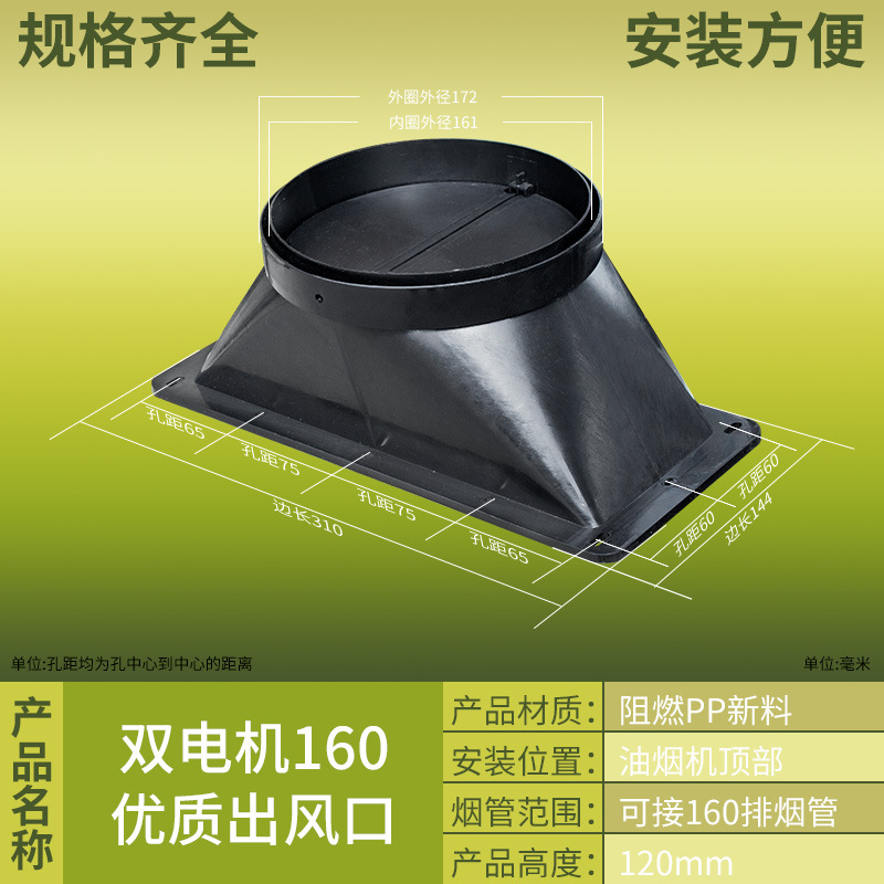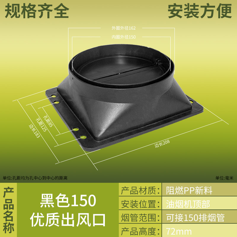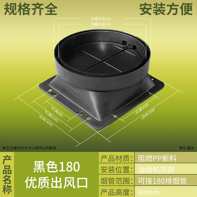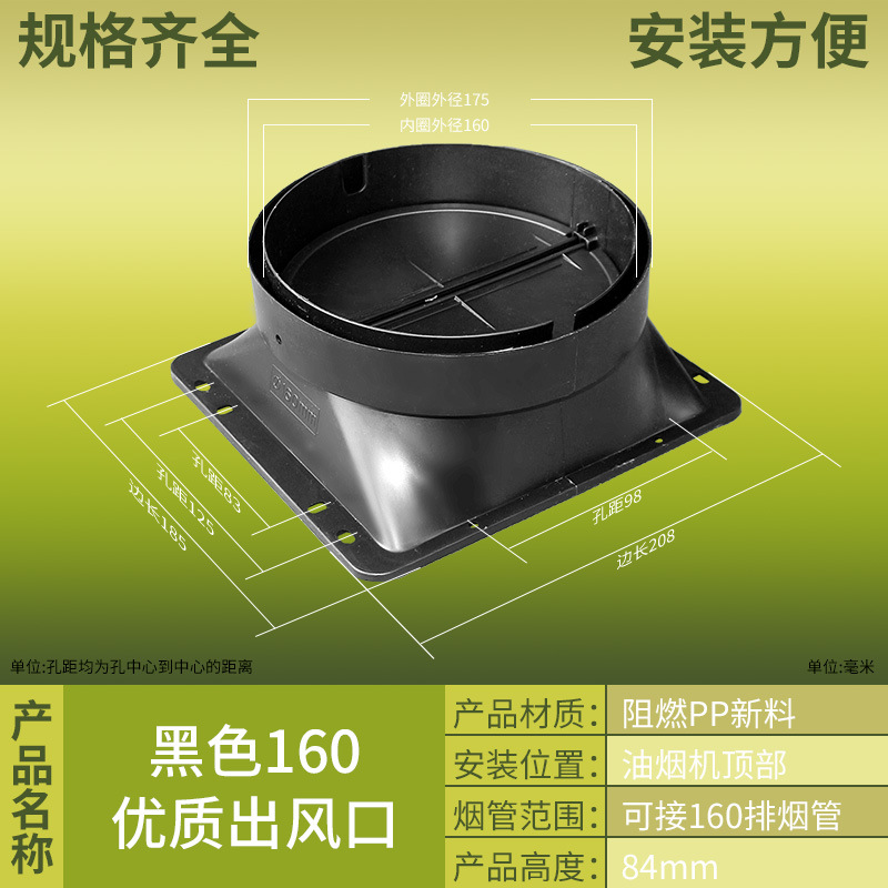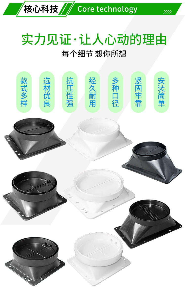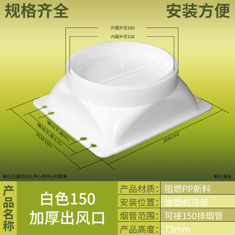 抽吸油烟机出风口塑料止回阀方形底座风罩烟管配件厂家批发止逆阀