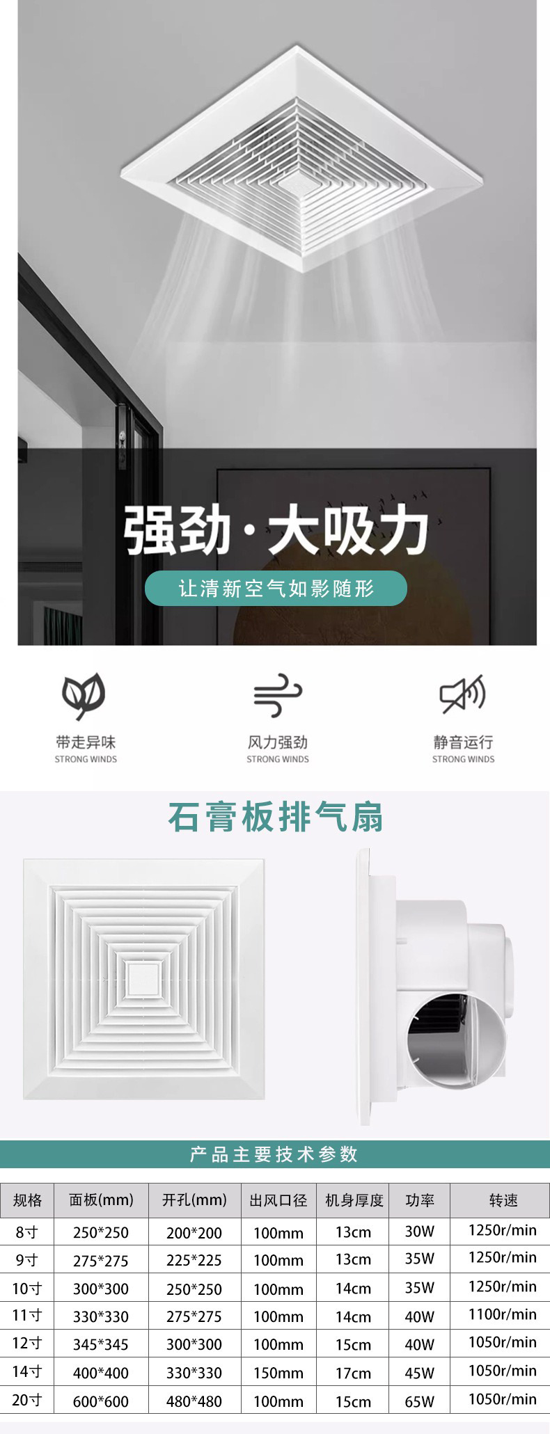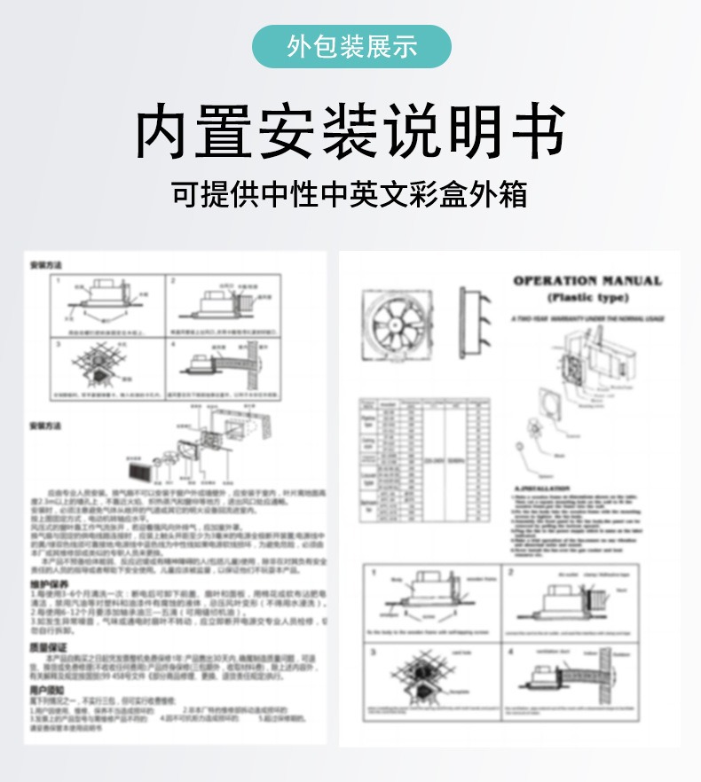 工厂批发管道排气扇石膏板排风扇家用集成吊顶排气扇卫生间换气扇