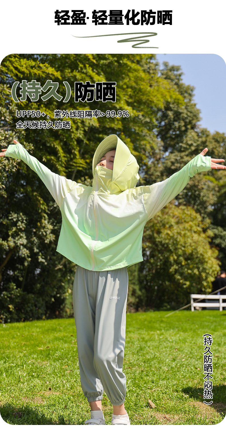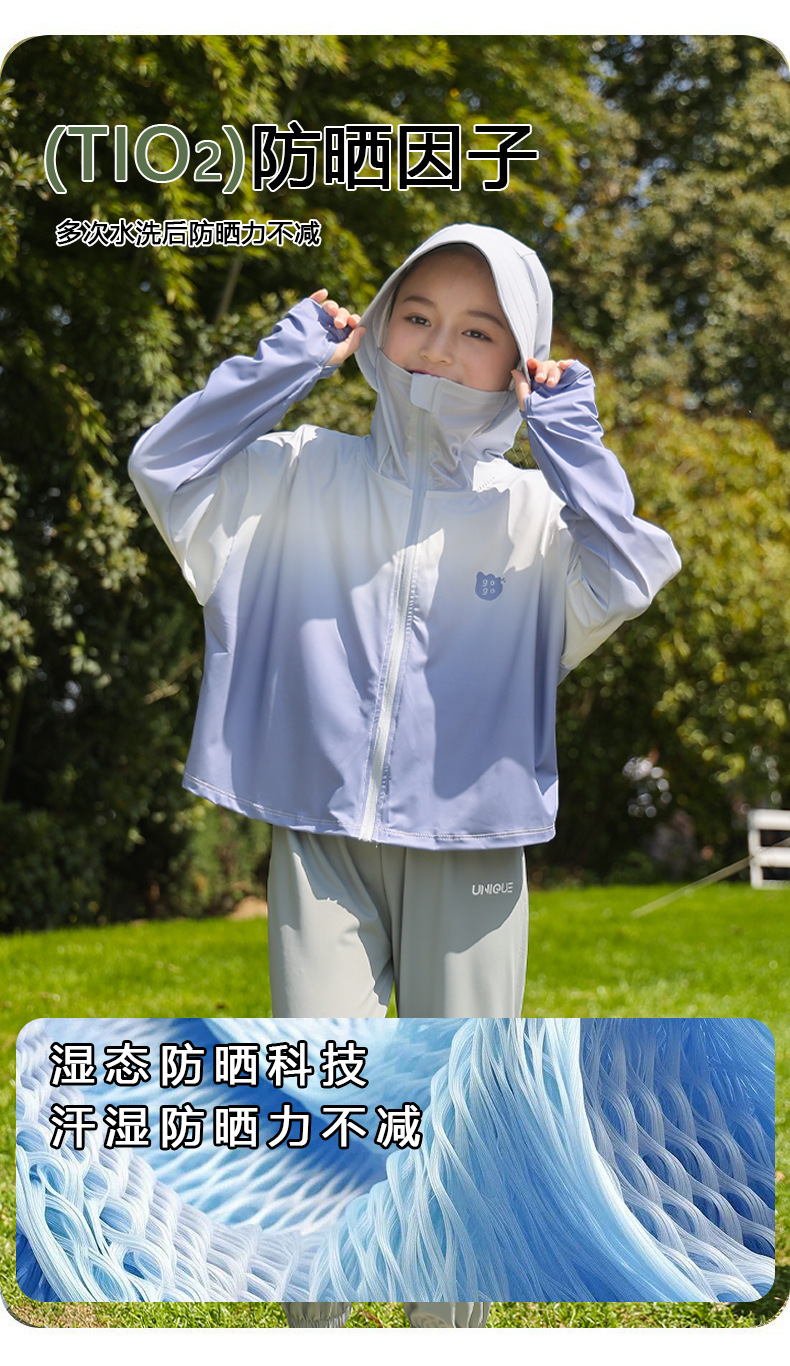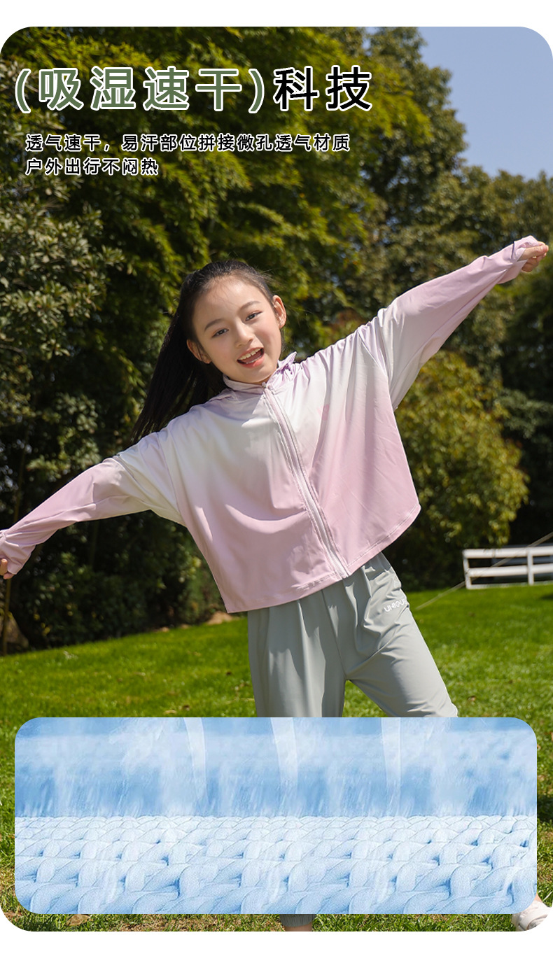 儿童冰丝渐变防晒衣女薄冰丝凉感透气男女童防紫外线upf50+防晒衣