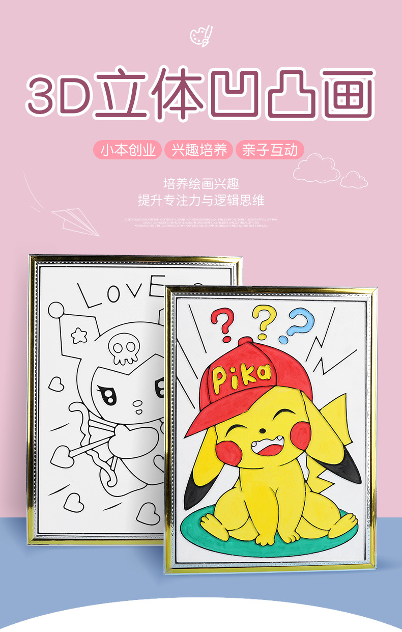 现货批发新款3D立体凹凸画板DIY儿童涂鸦画地摊广场夜市涂色画板