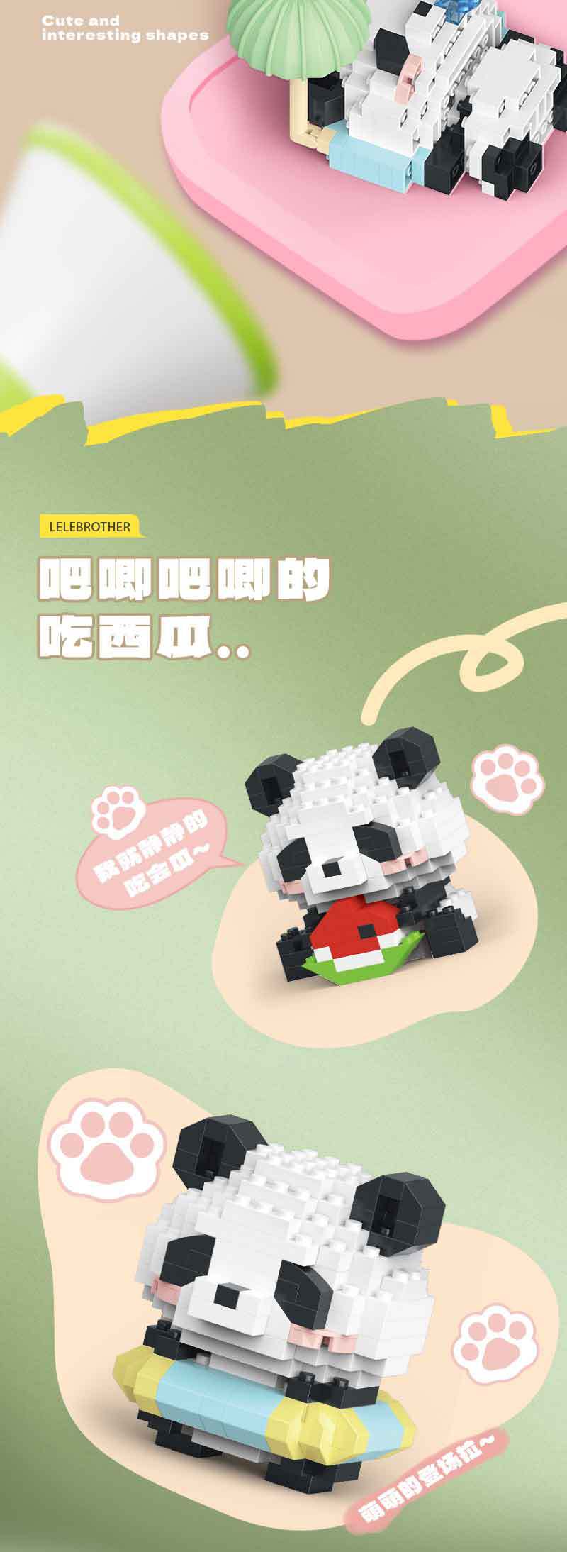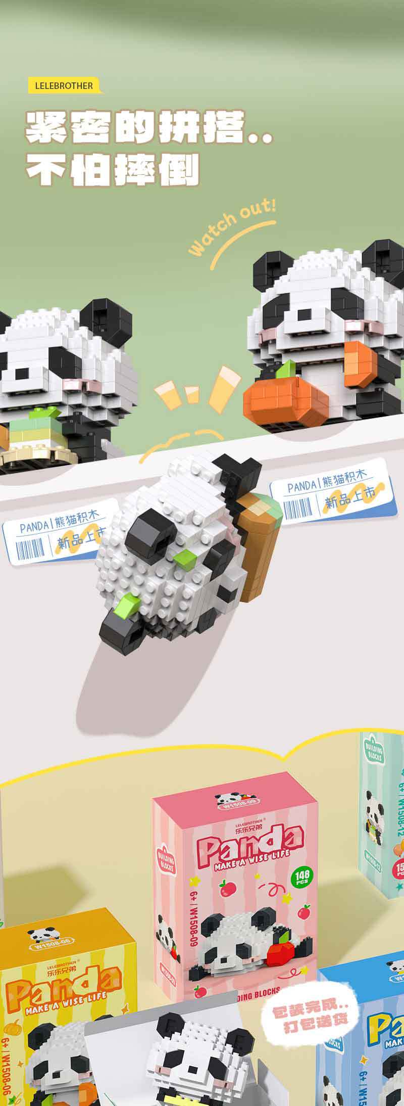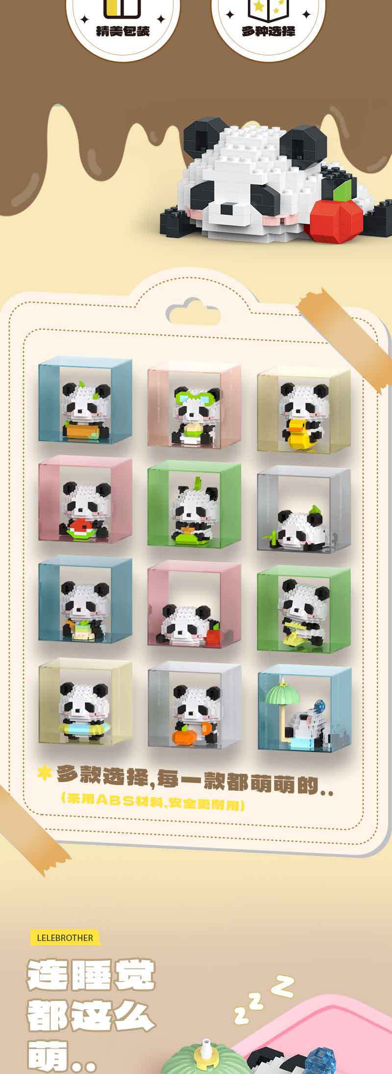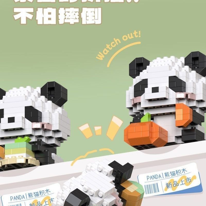 跨境熊猫积木拼装盒装微颗粒儿童积木益智玩具礼物摆摊摆件批发