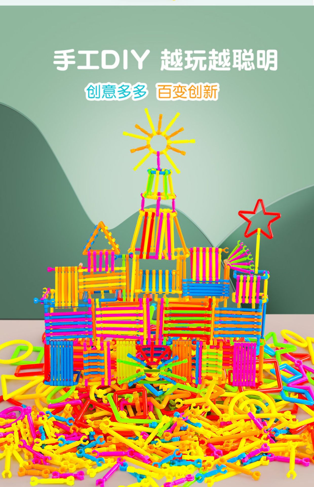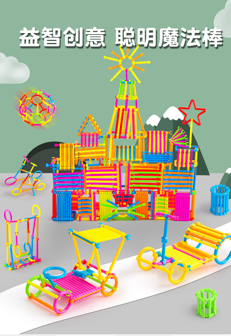 厂家批发聪明积木棒套装儿童益智拼装拼插diy玩具地摊聪明魔术棒