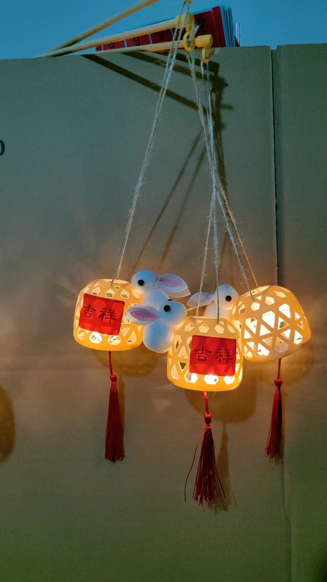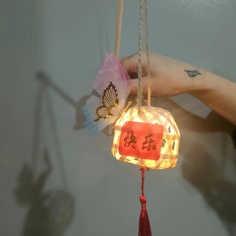 新年塑料仿竹编灯笼手提迷你兔子儿童手工DIY材料包元宵发光灯笼