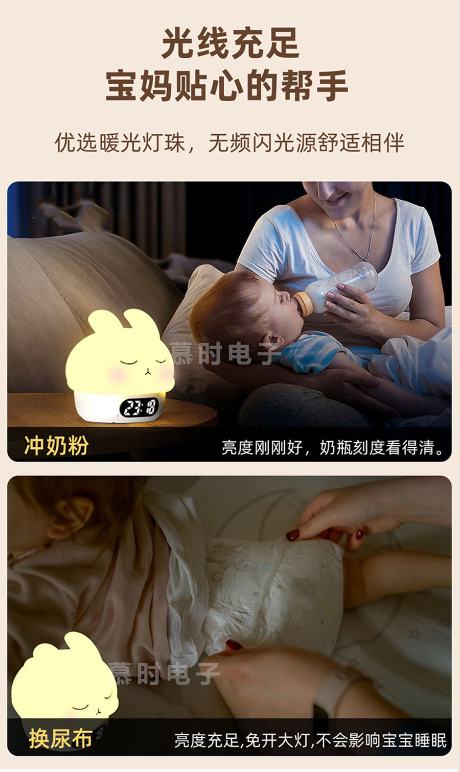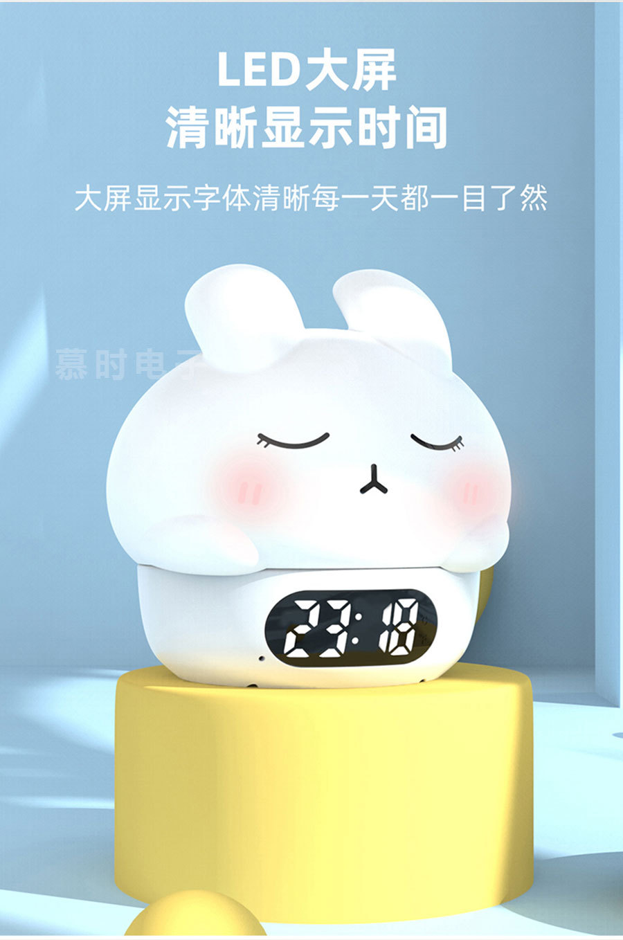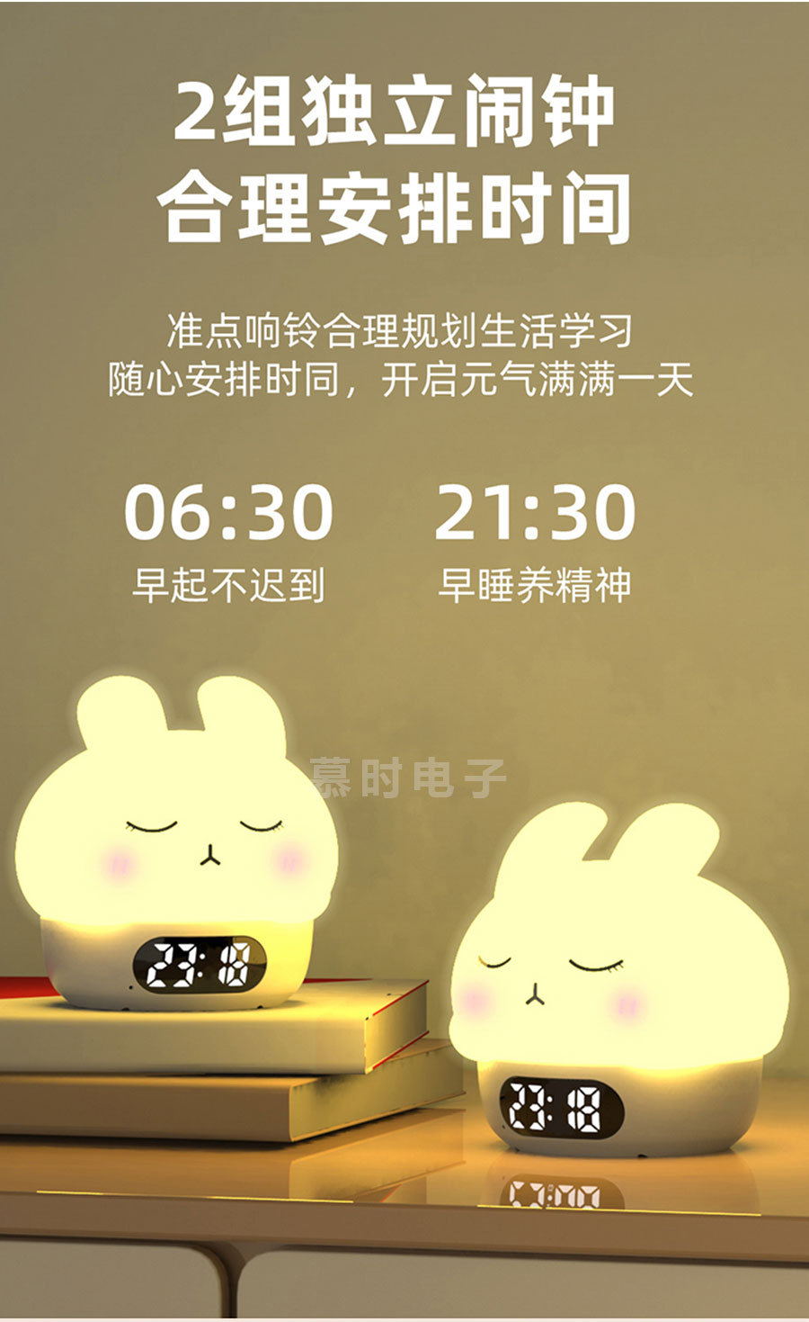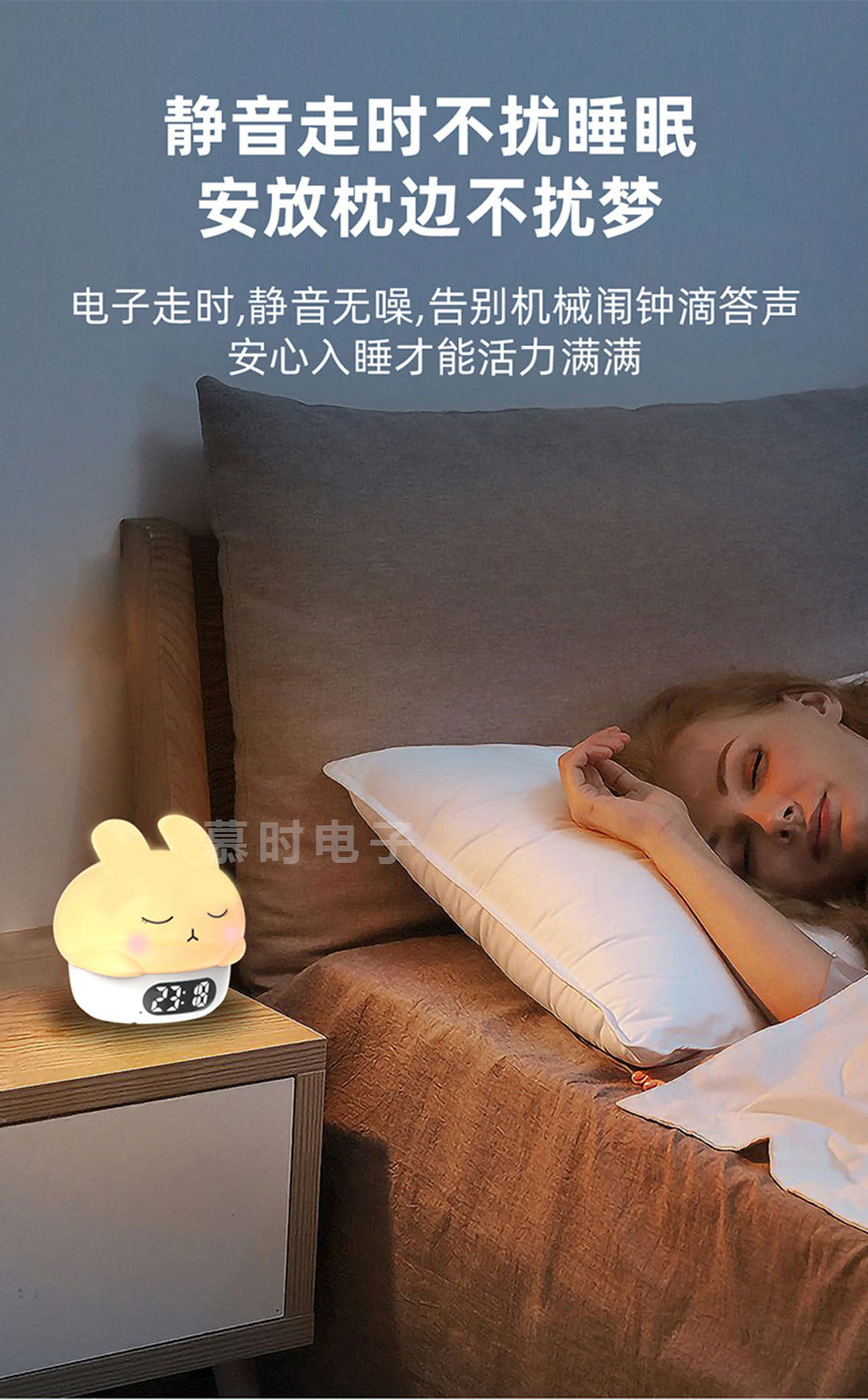 新款卡通硅胶兔子USB充电七彩创意护眼夜灯儿童卧室闹钟拍拍灯