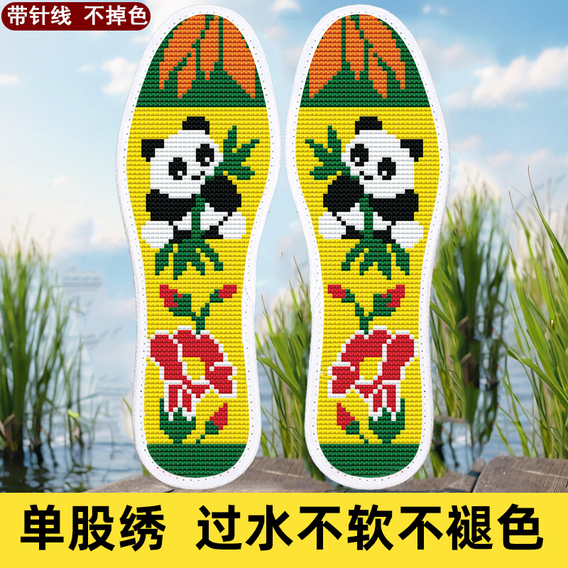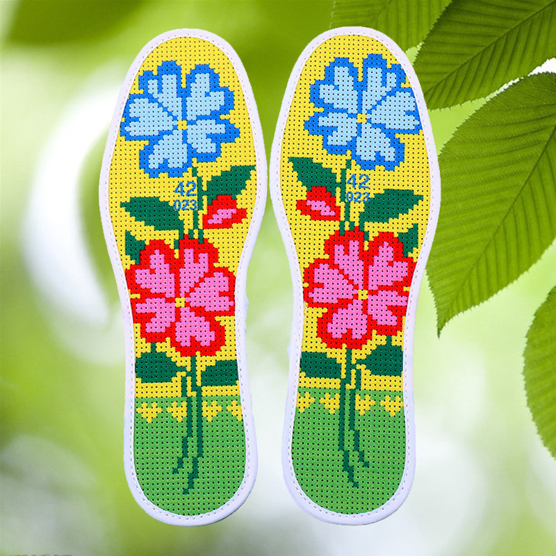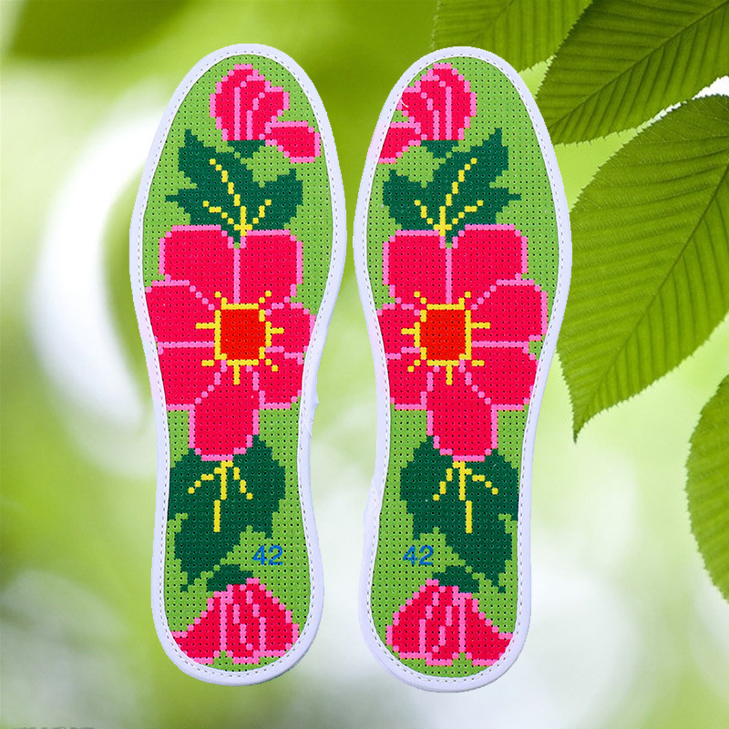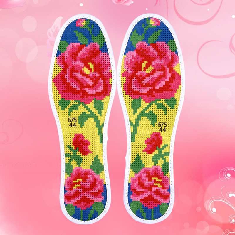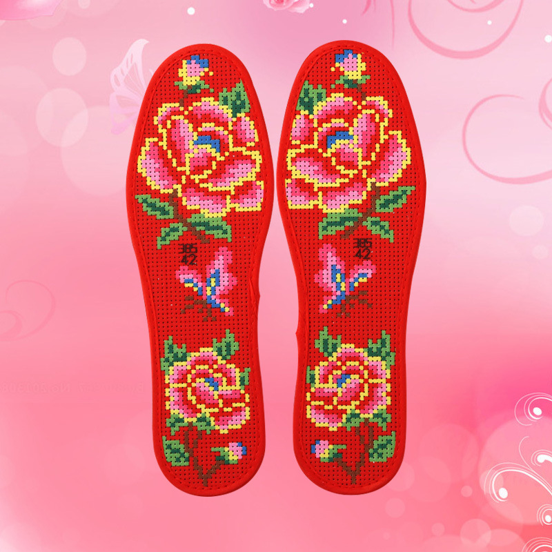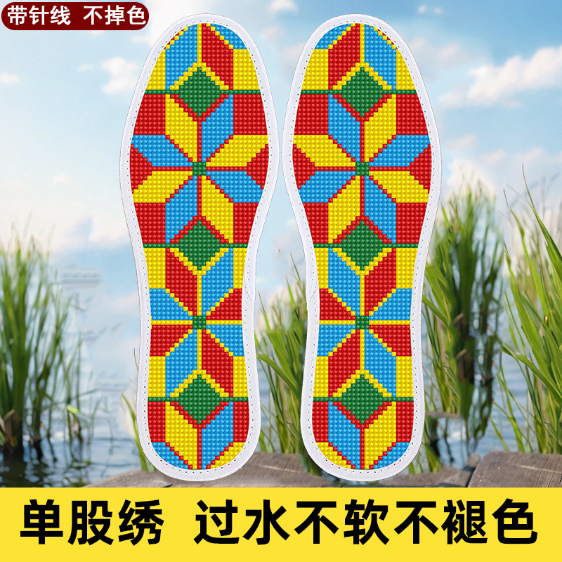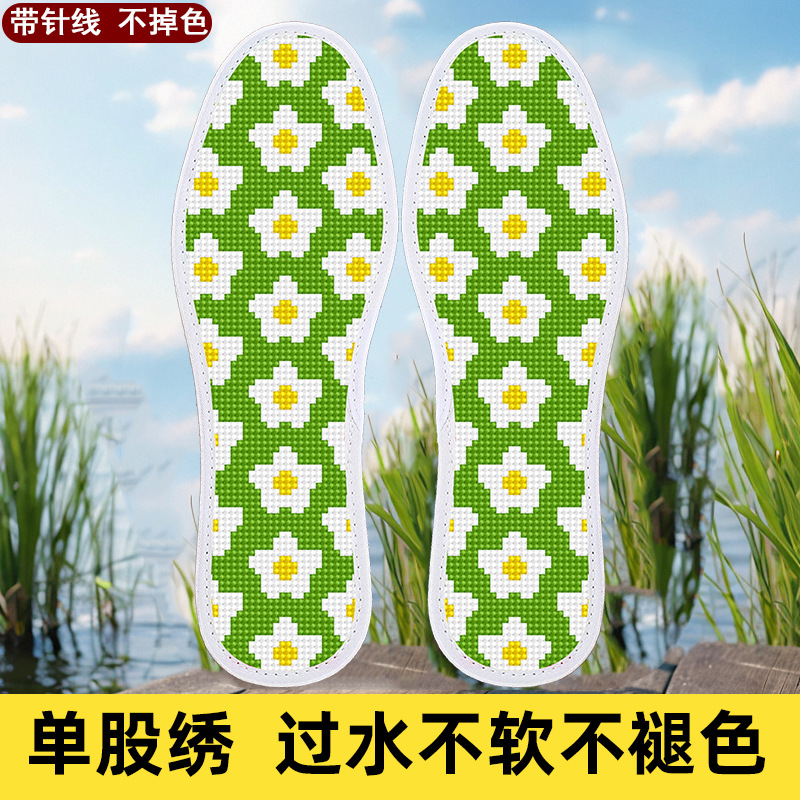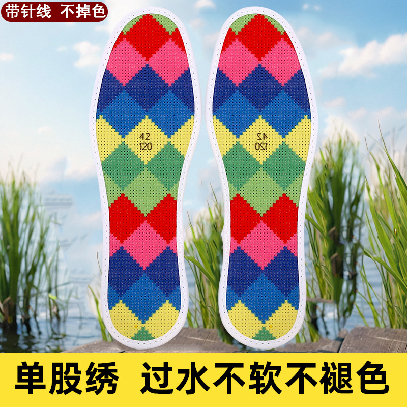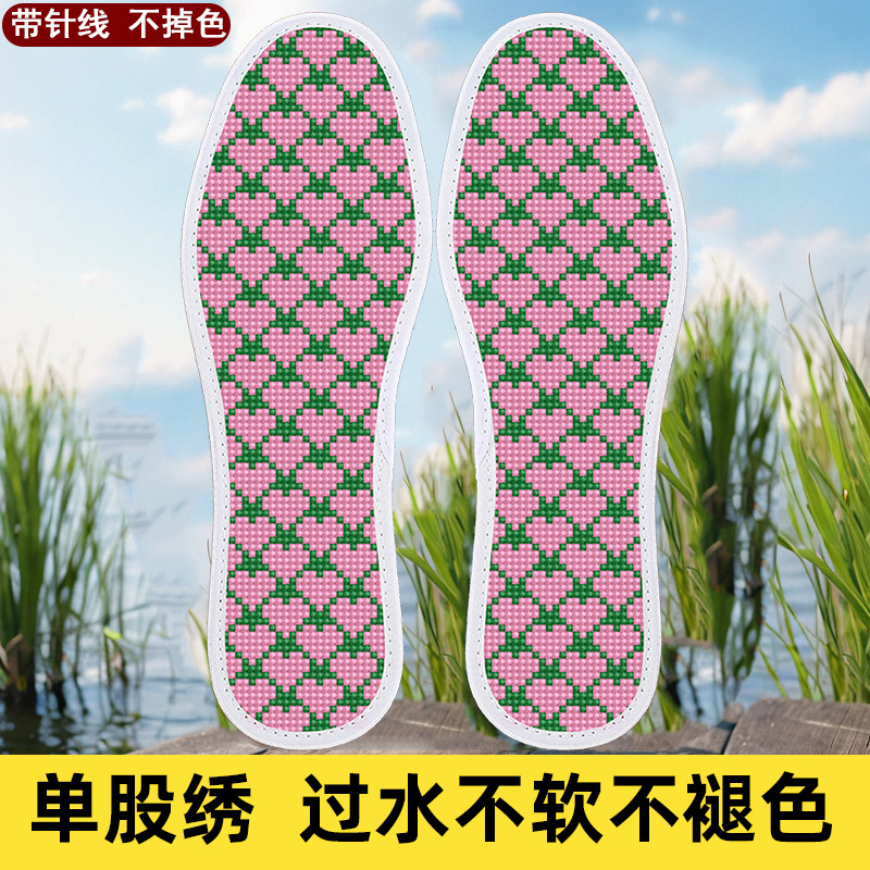 厂家直销纯棉手工半成品带针绣线印花不掉色十字绣鞋垫新款7D鞋垫