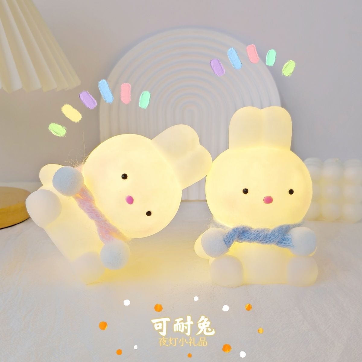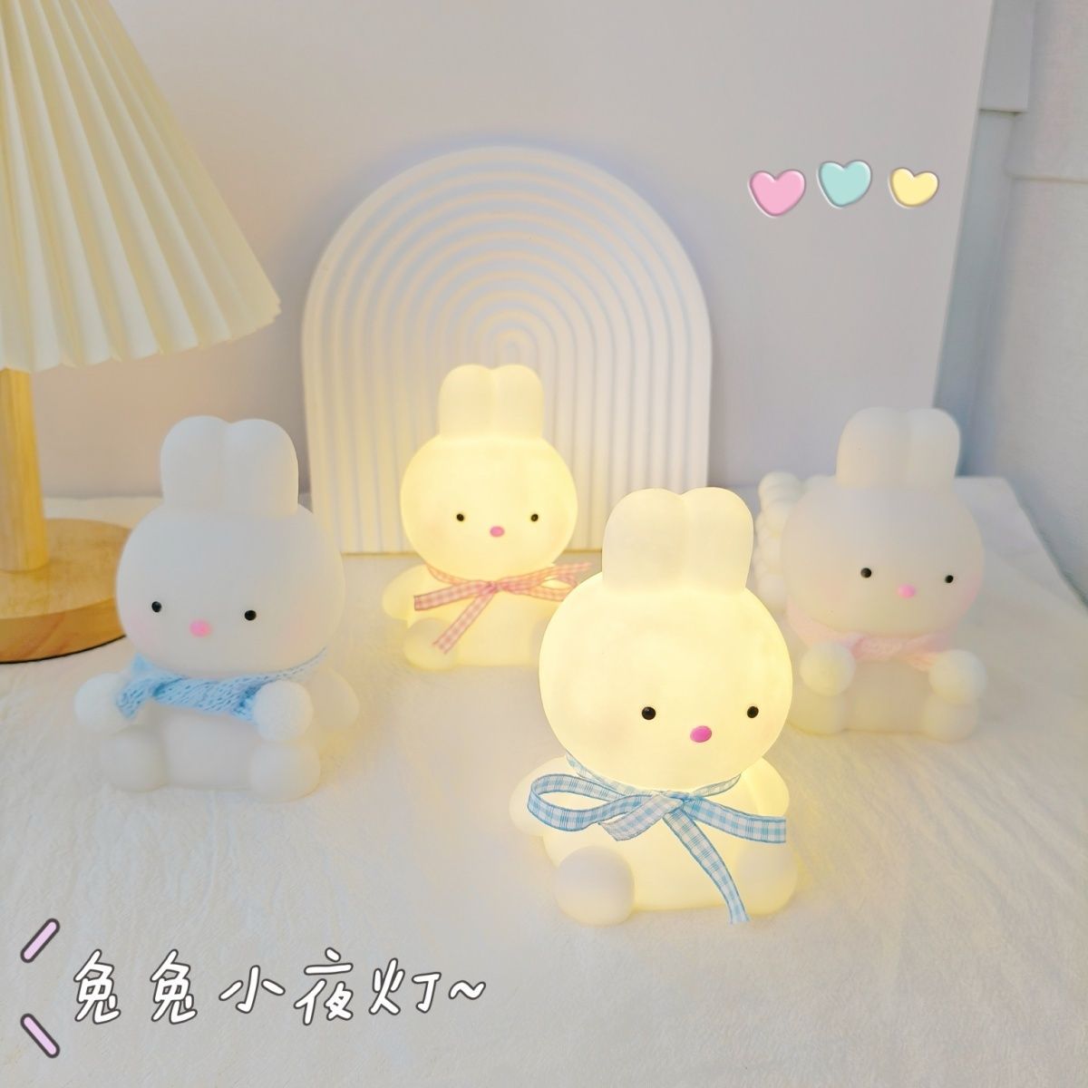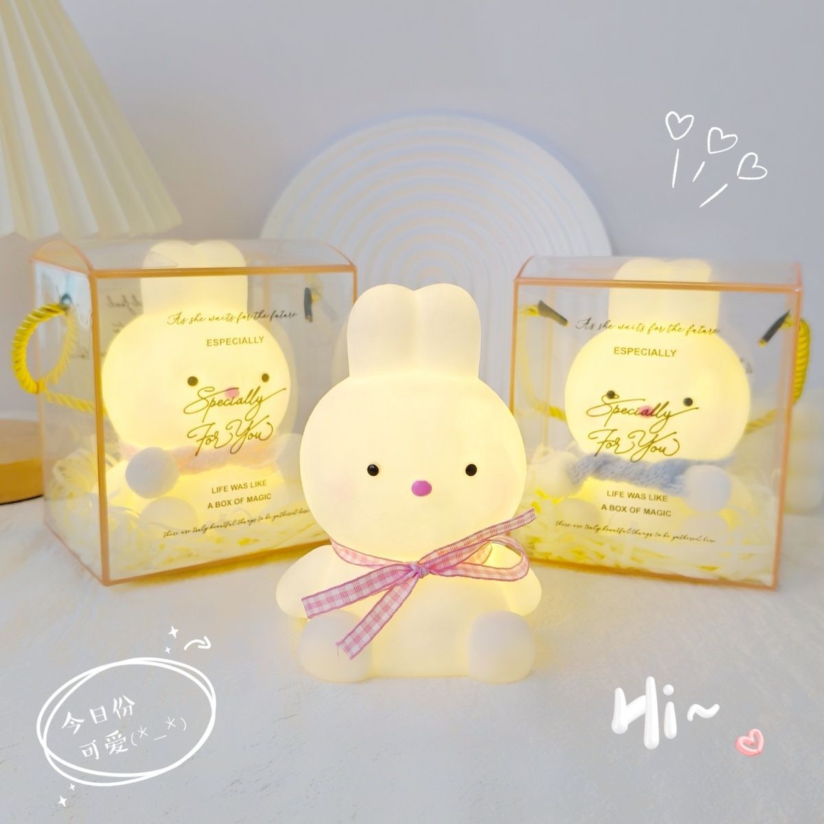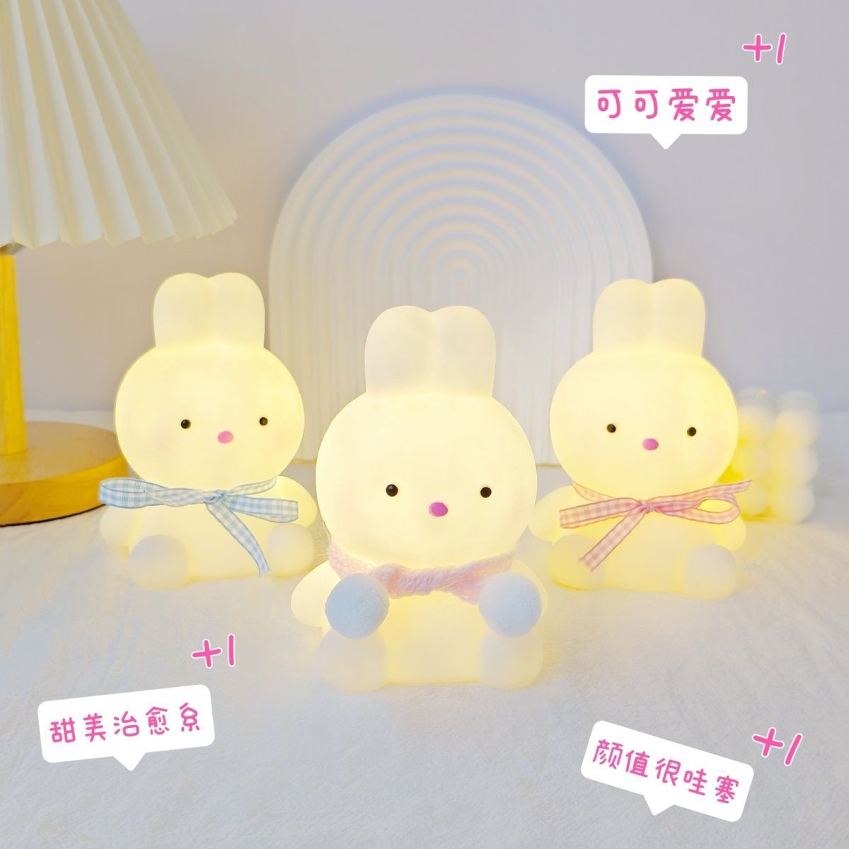 可爱led小夜灯不插电寝室少女心创意卡通兔子摆件卧室床头灯夜市