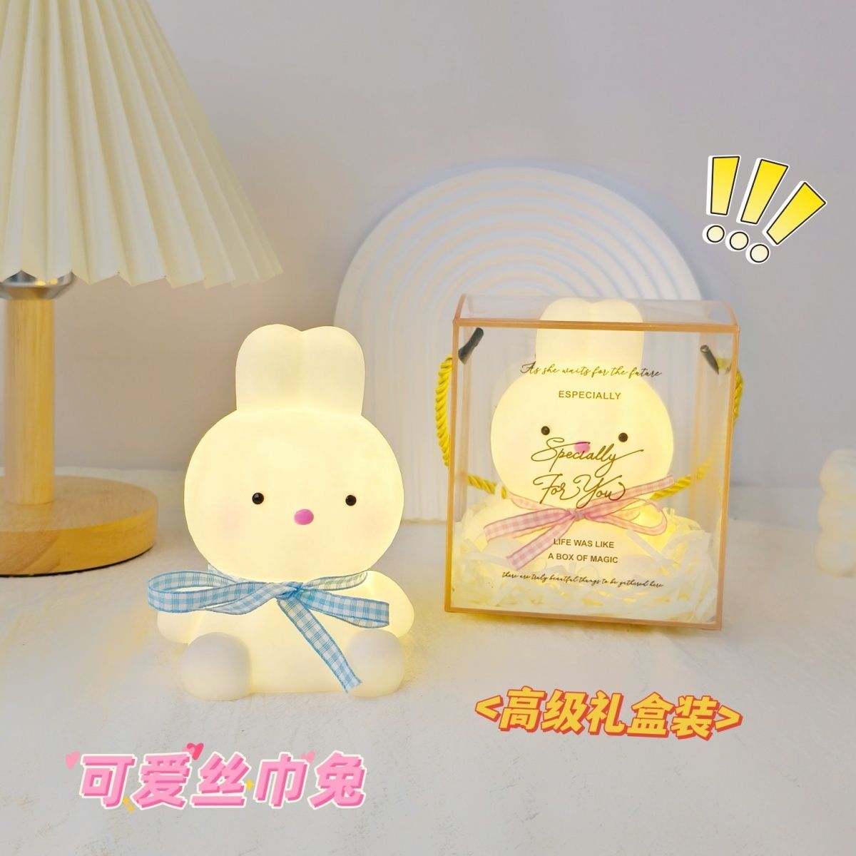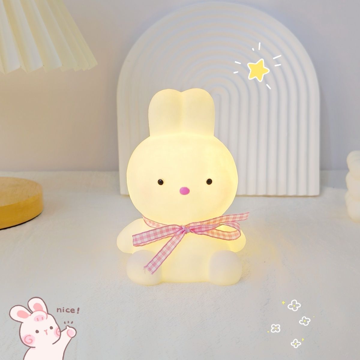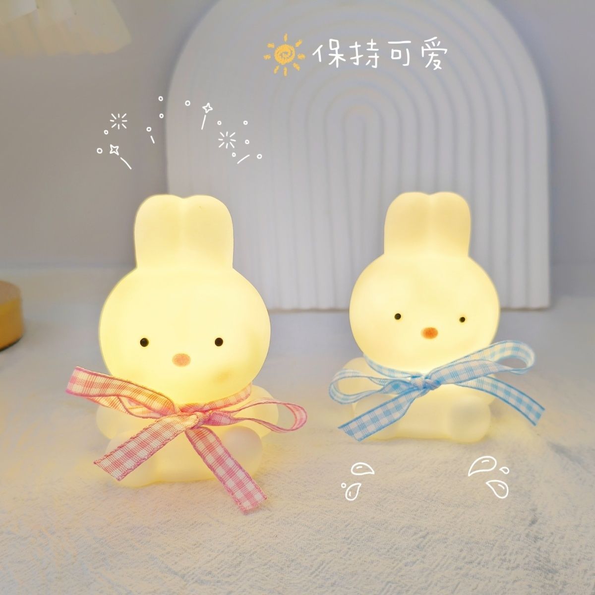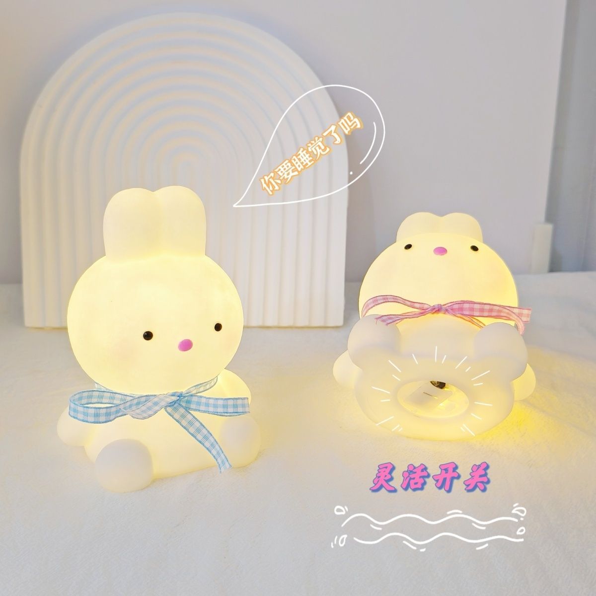 可爱led小夜灯不插电寝室少女心创意卡通兔子摆件卧室床头灯夜市