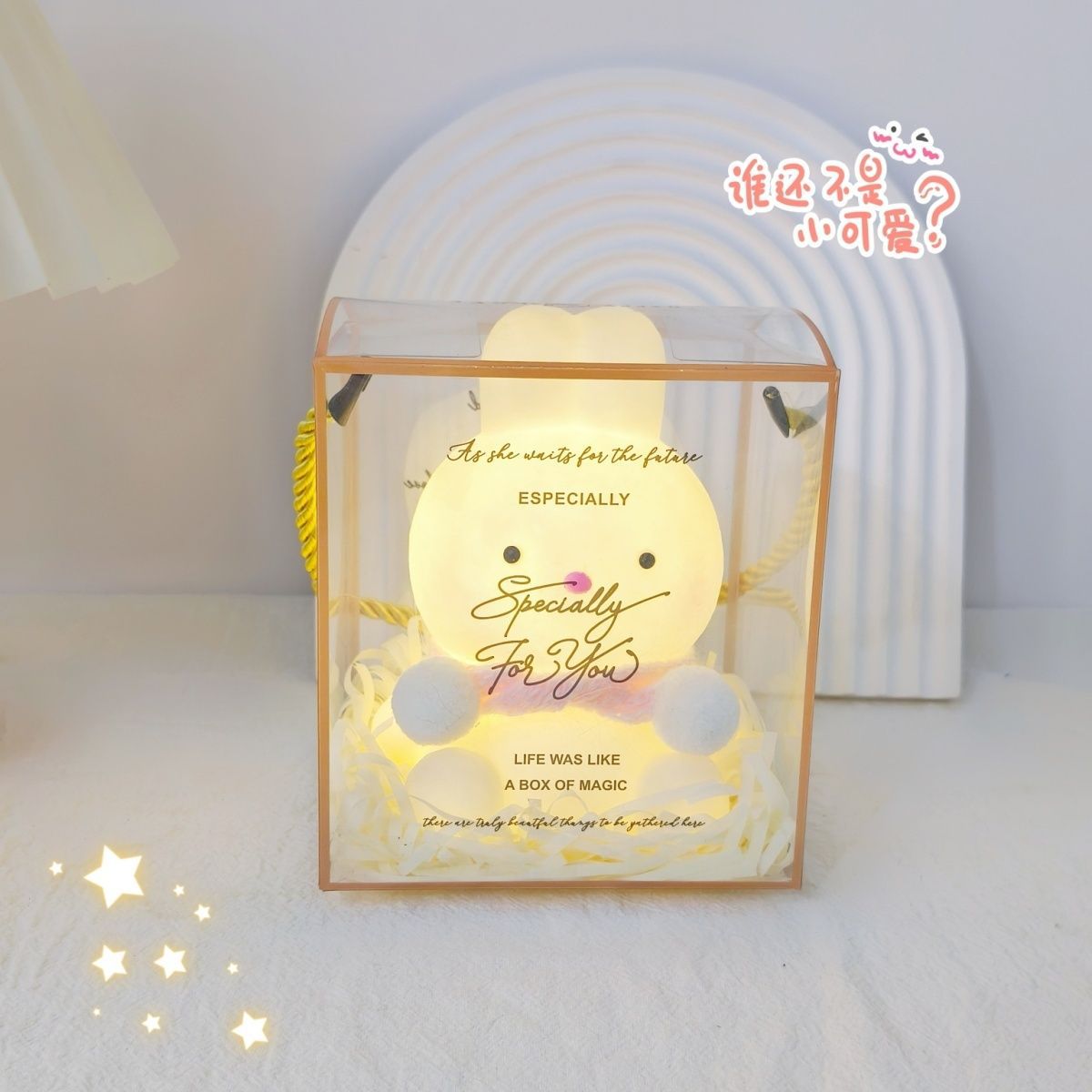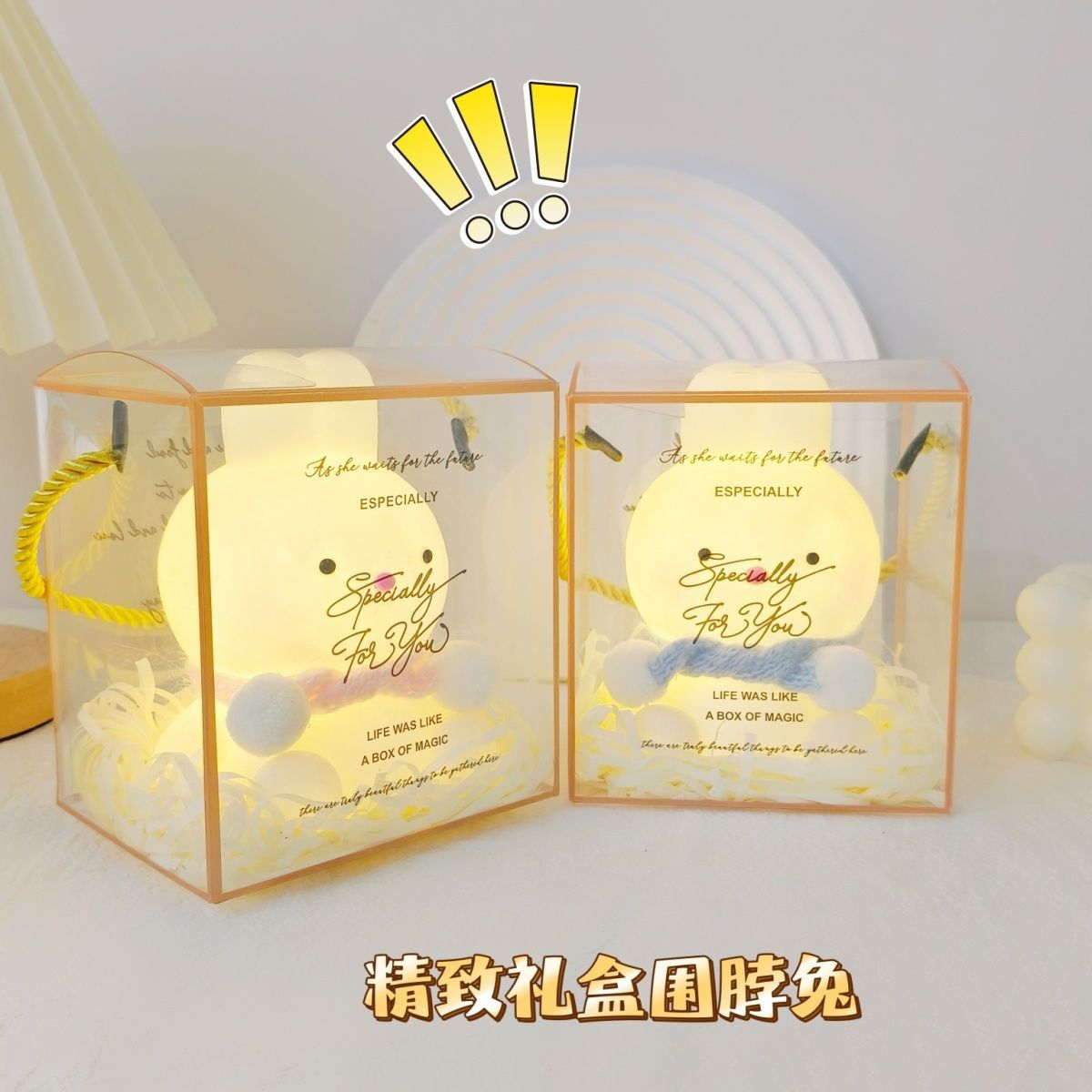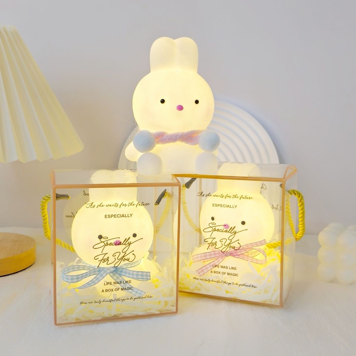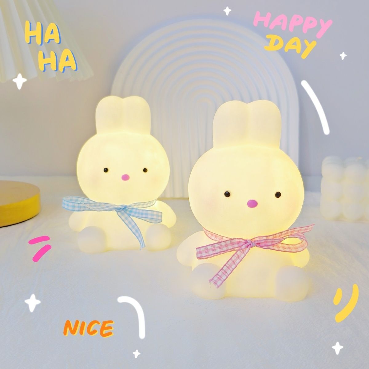 可爱led小夜灯不插电寝室少女心创意卡通兔子摆件卧室床头灯夜市