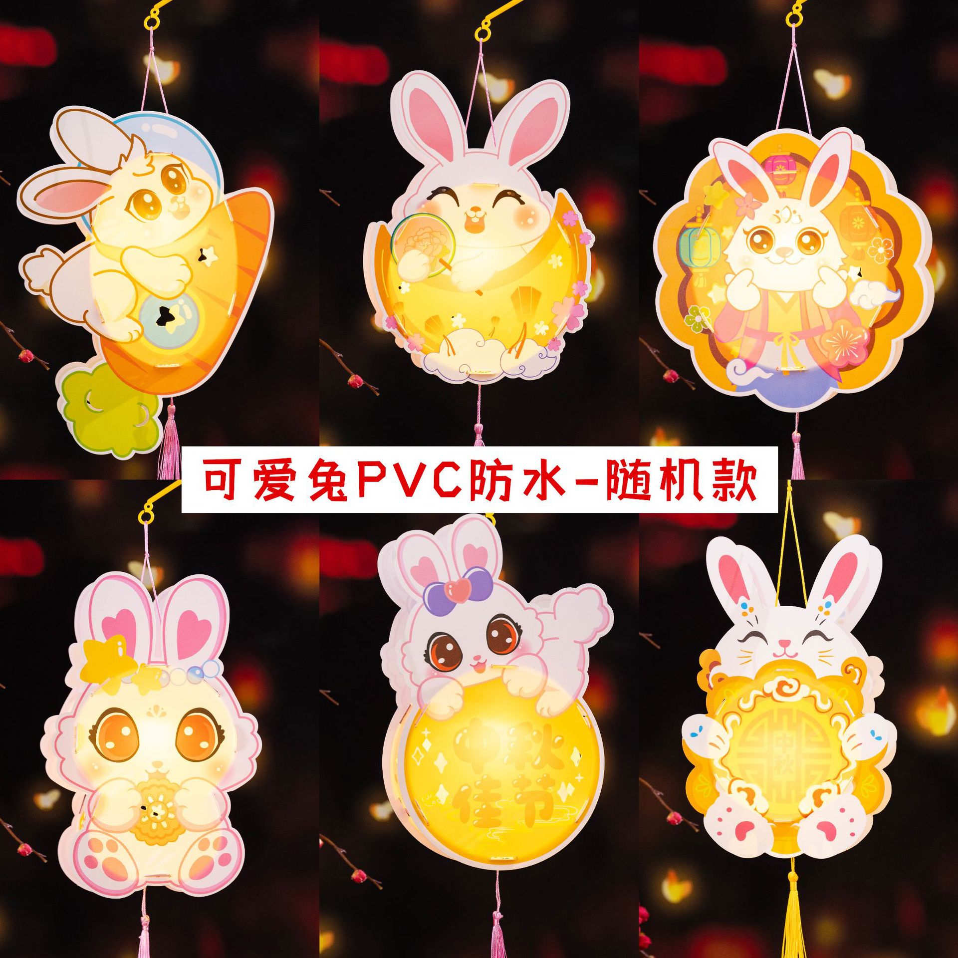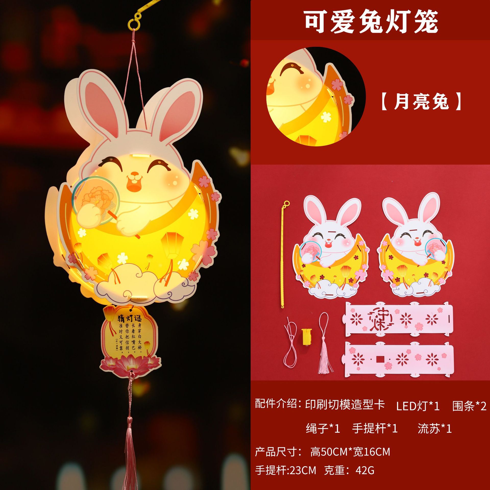 中秋节灯笼儿童手提花灯diy材料包手工制作宫灯中秋兔子花灯批发