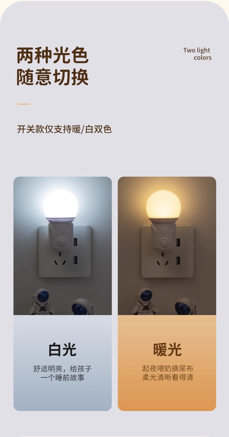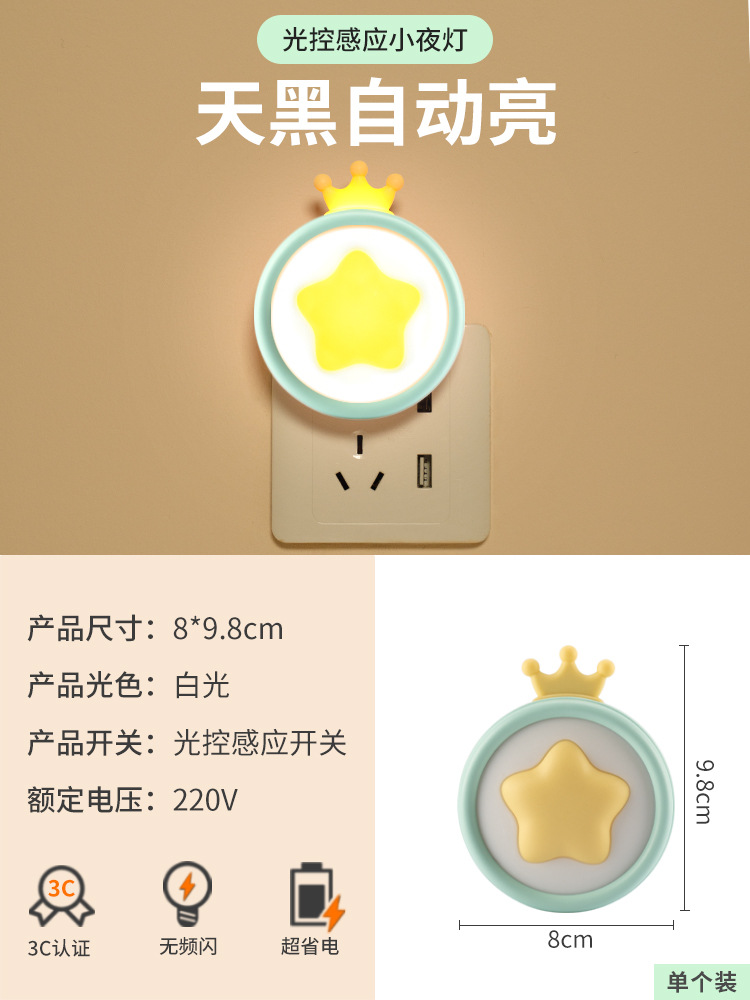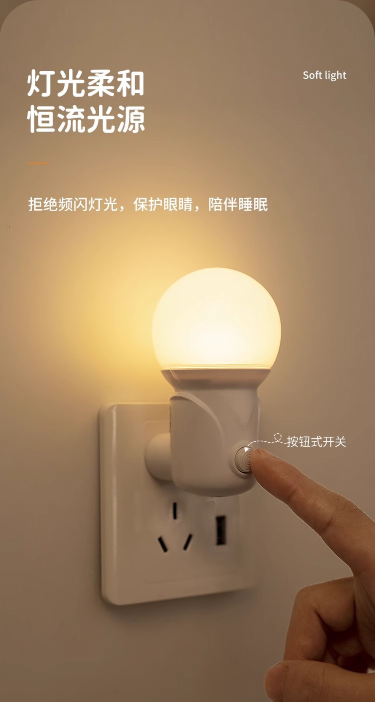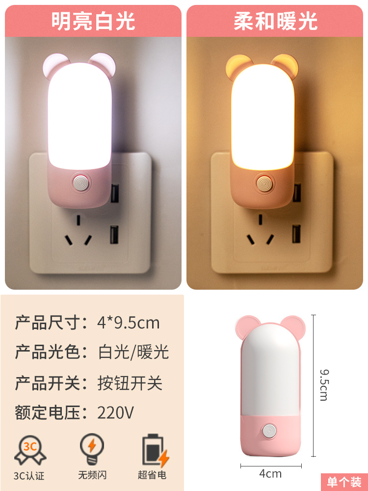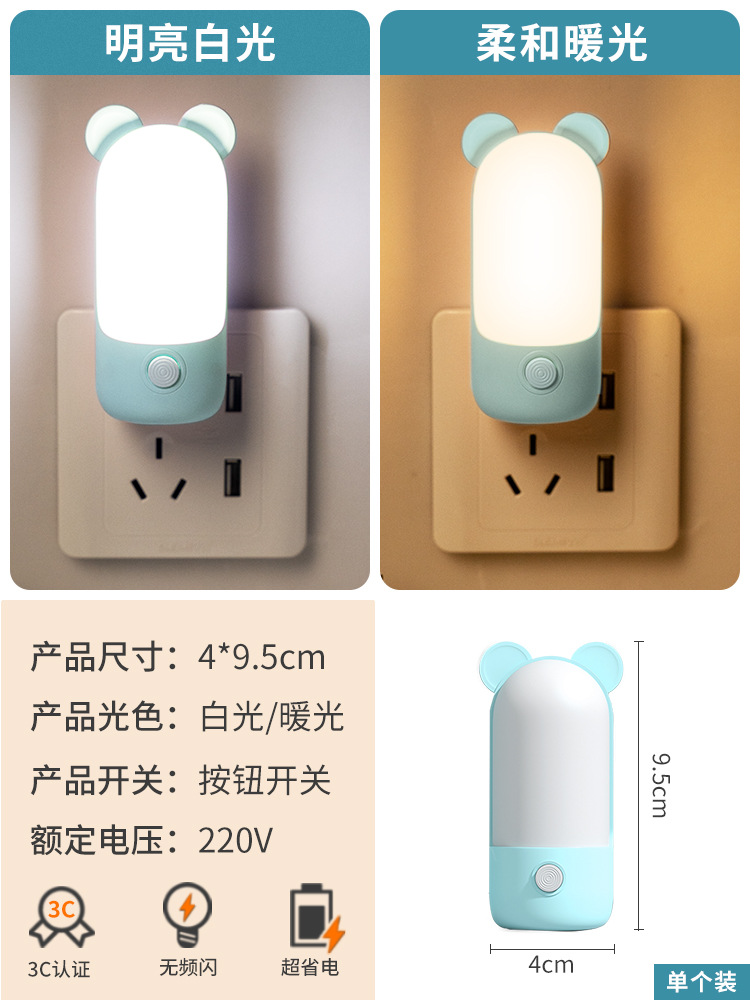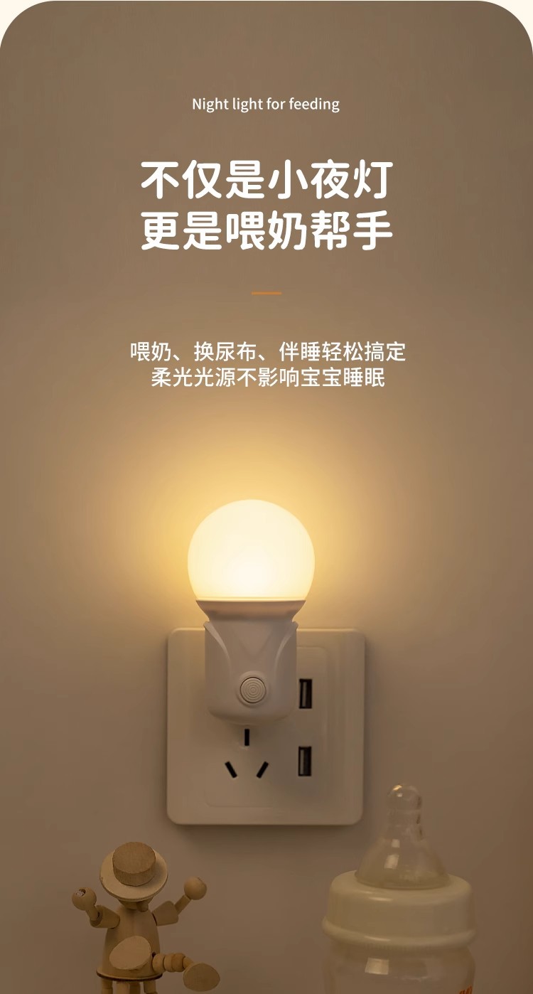 LED小夜灯卧室睡眠灯儿童柔光护眼灯插电节能灯婴儿喂奶床头灯