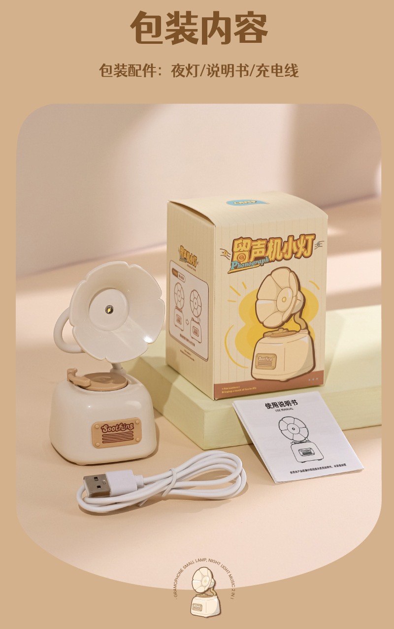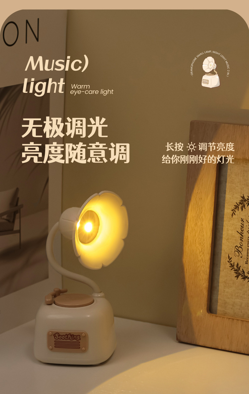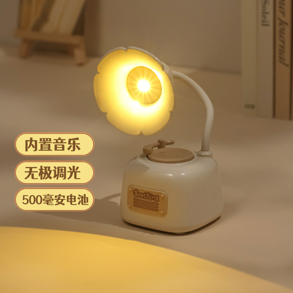 可爱留声机迷你小夜灯usb充电音乐床头护眼台灯女生礼物生日批发