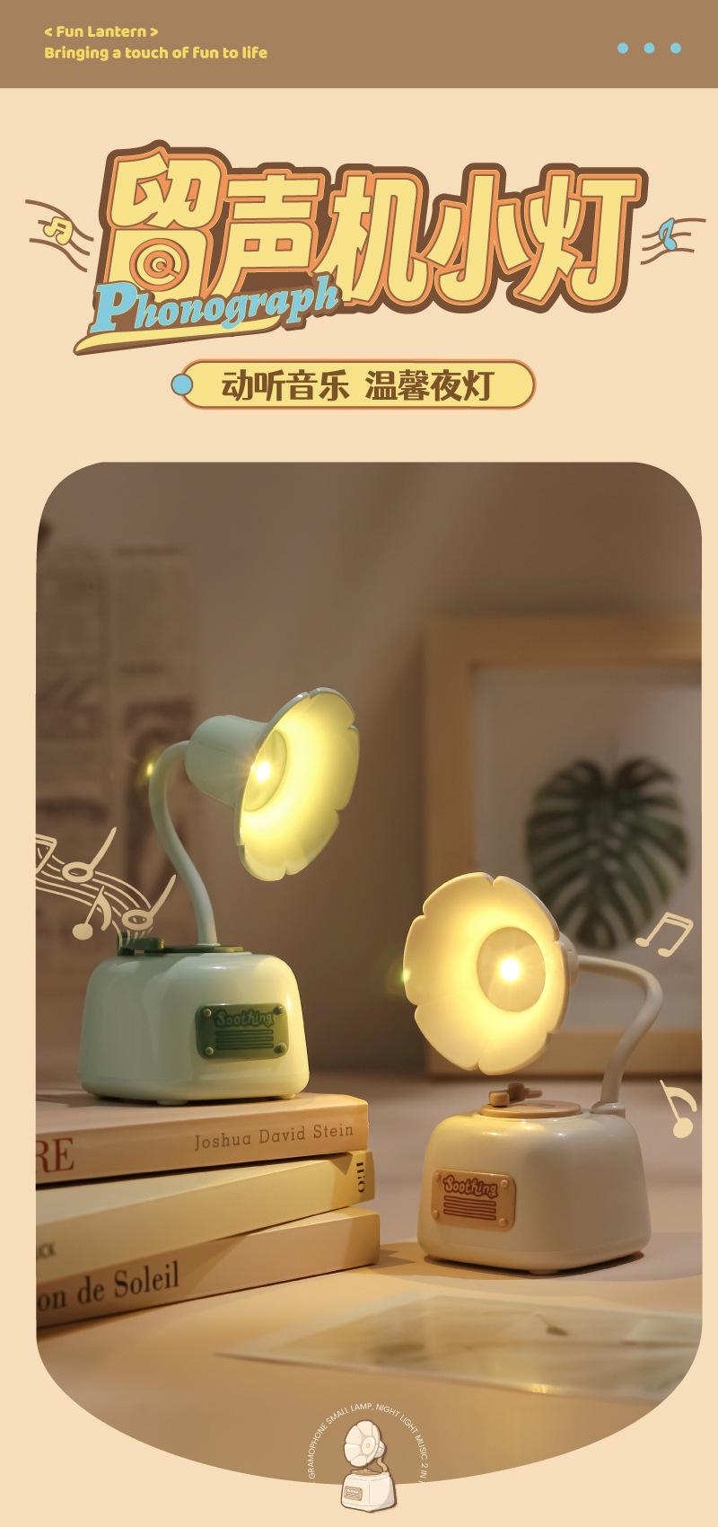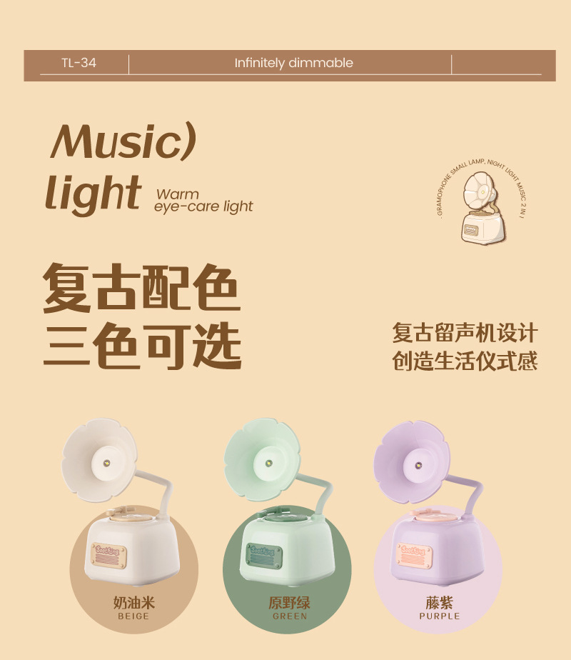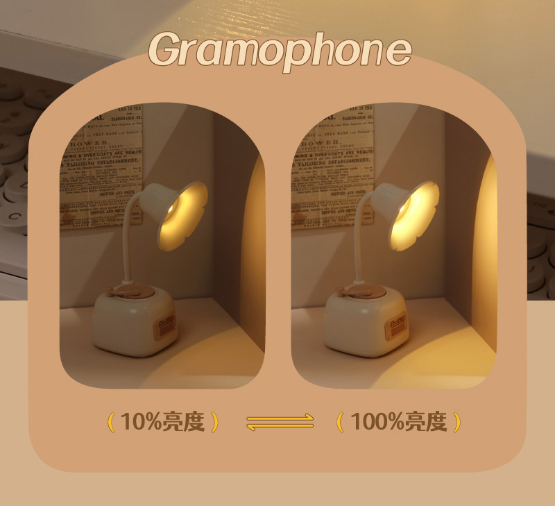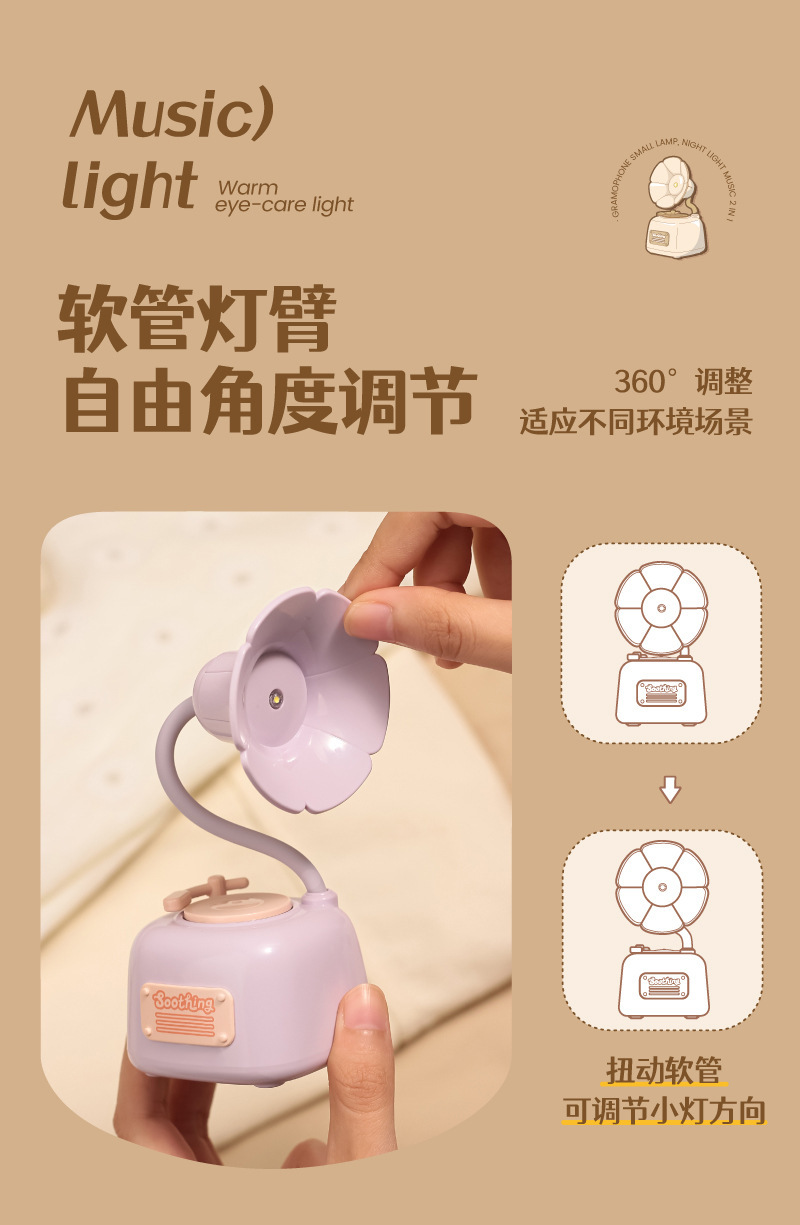 可爱留声机迷你小夜灯usb充电音乐床头护眼台灯女生礼物生日批发