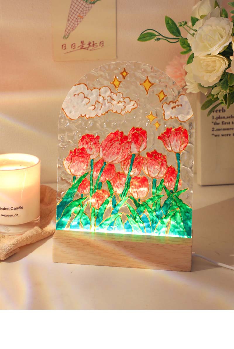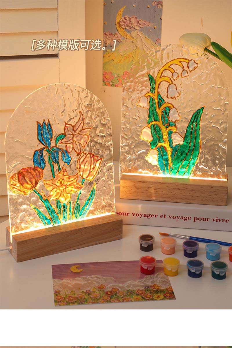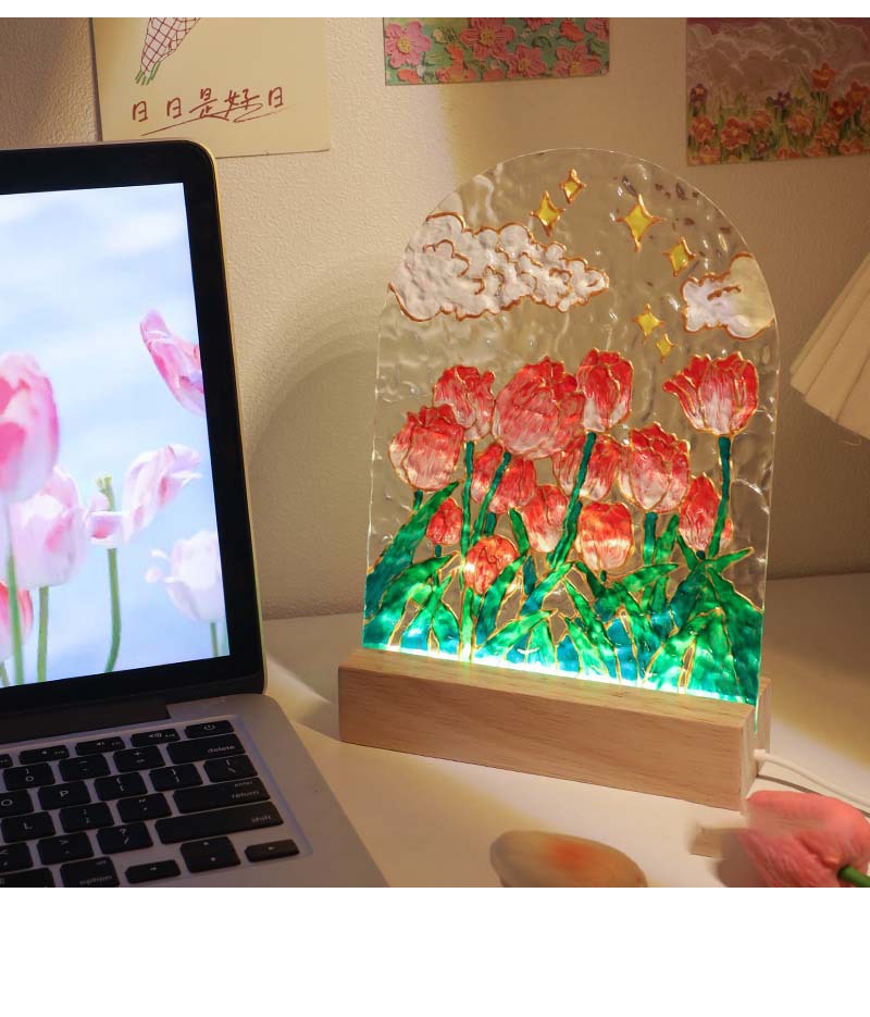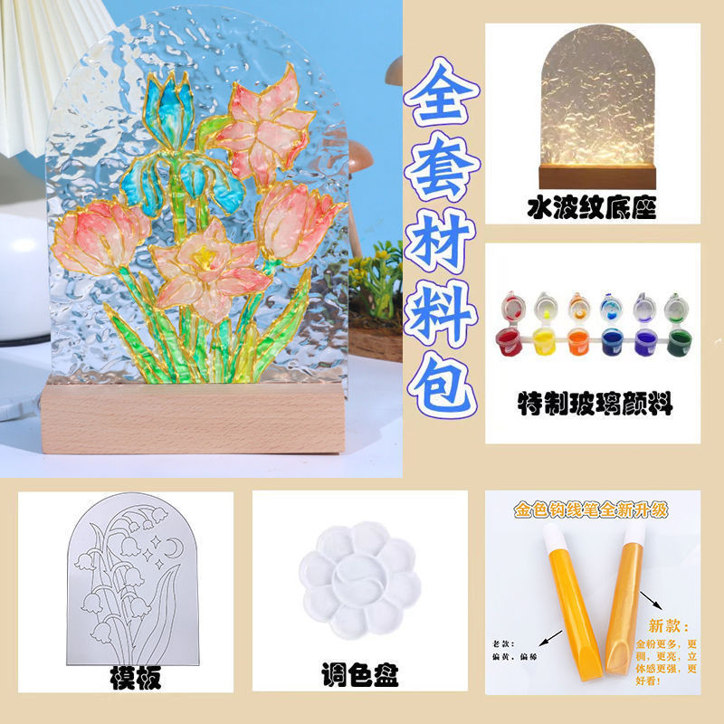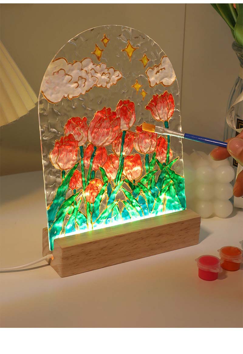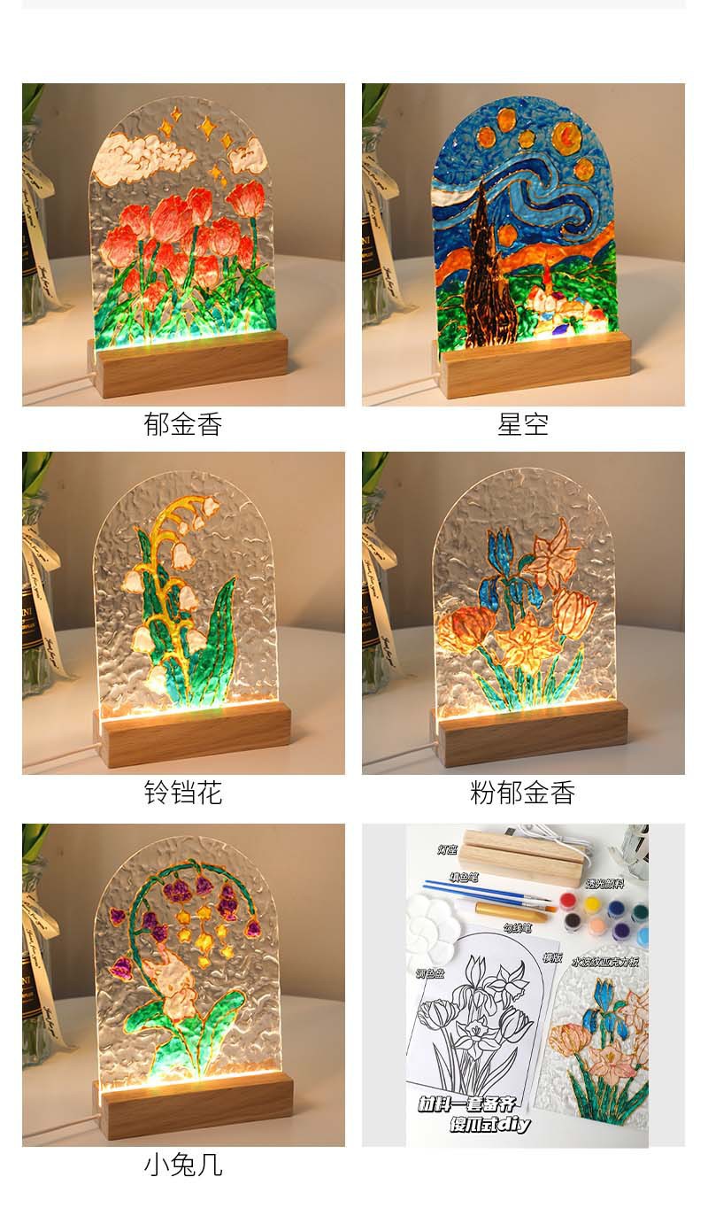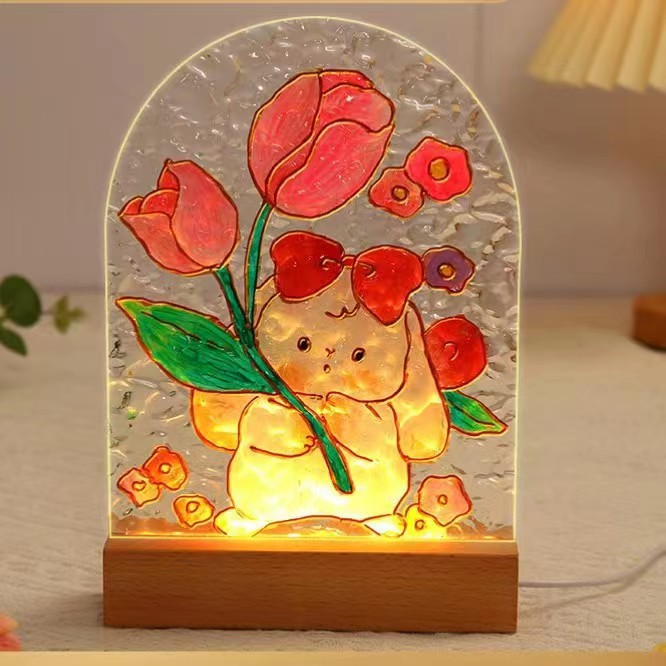 圣诞节儿童节手工diy亚克力郁金香手绘画材料小夜灯暖场活动批发