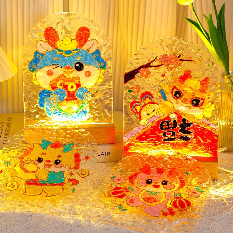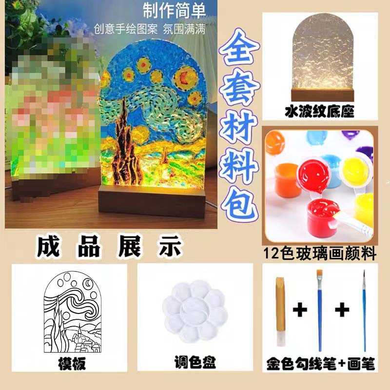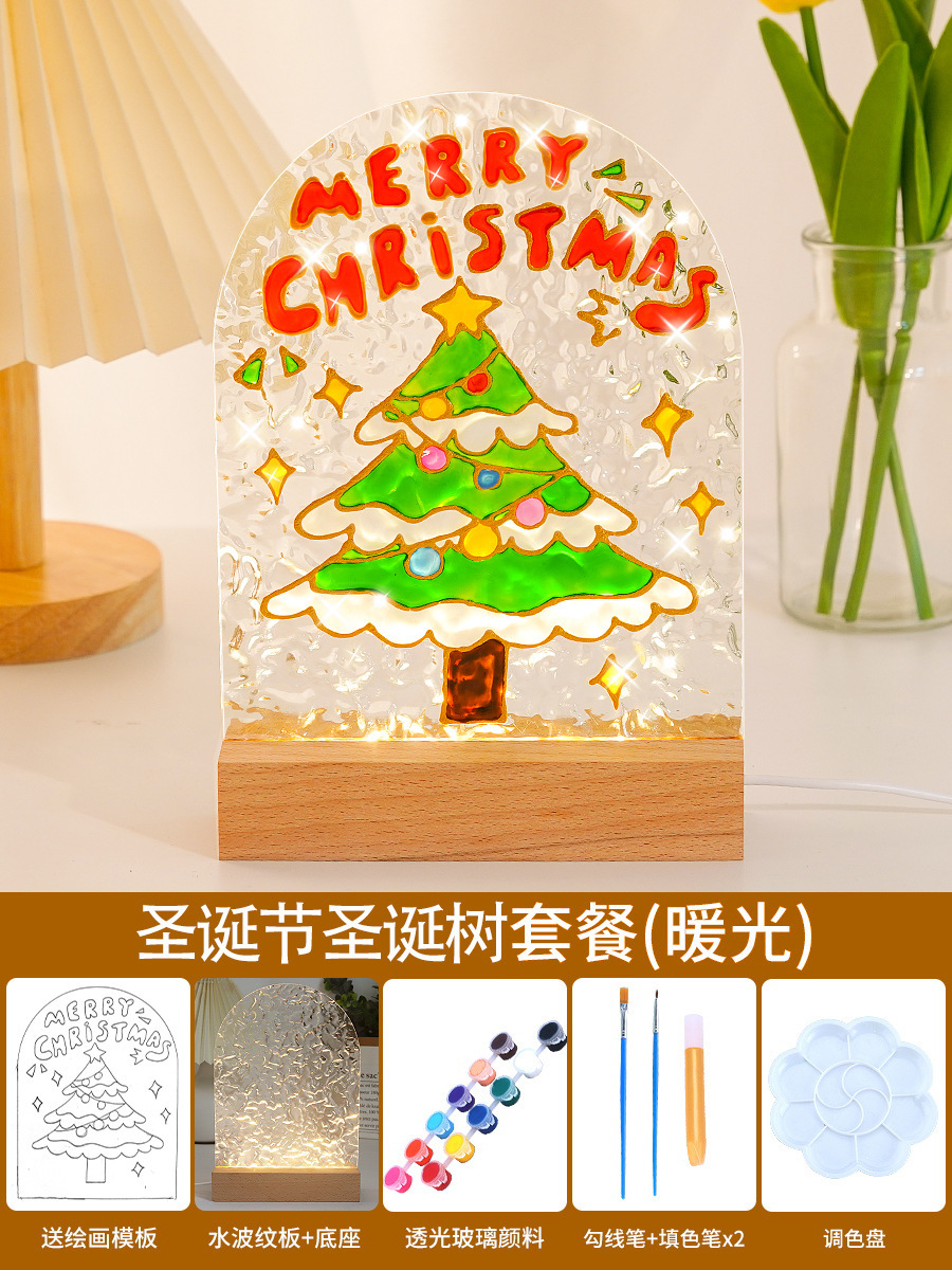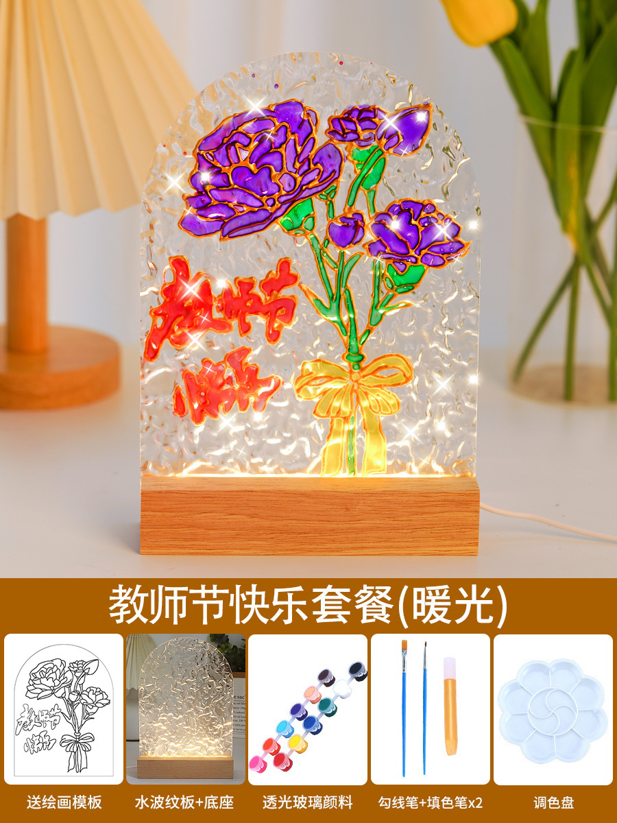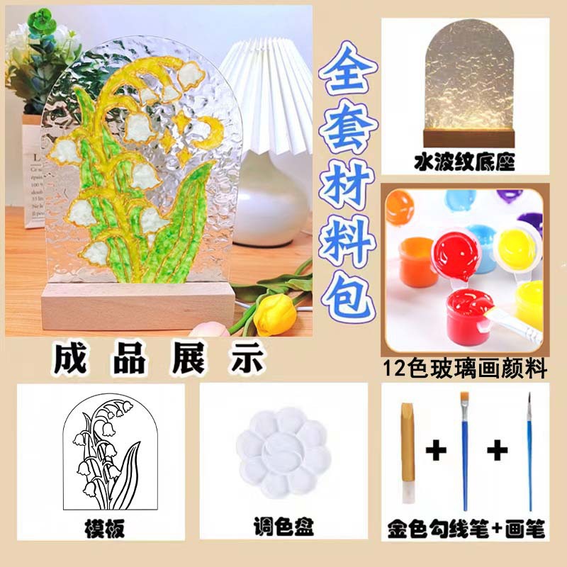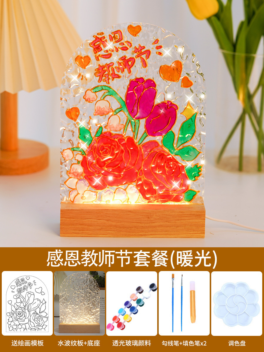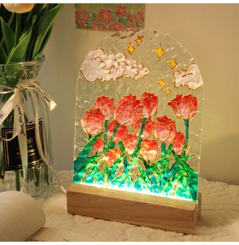 圣诞节儿童节手工diy亚克力郁金香手绘画材料小夜灯暖场活动批发