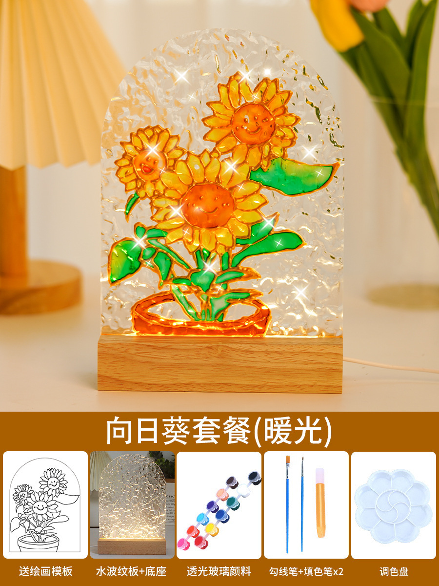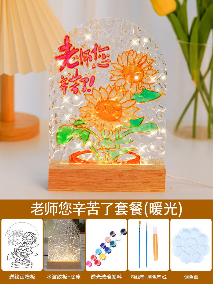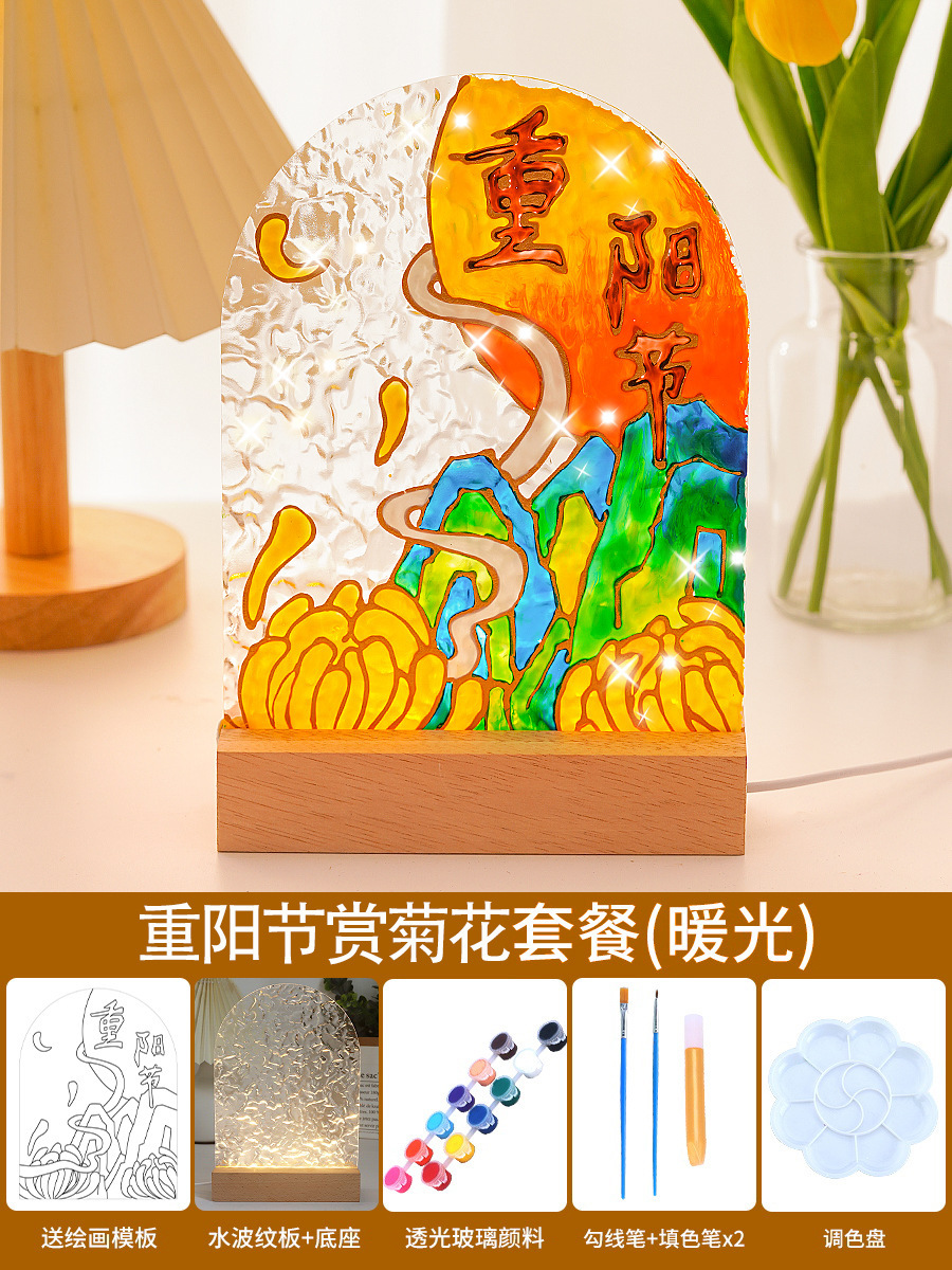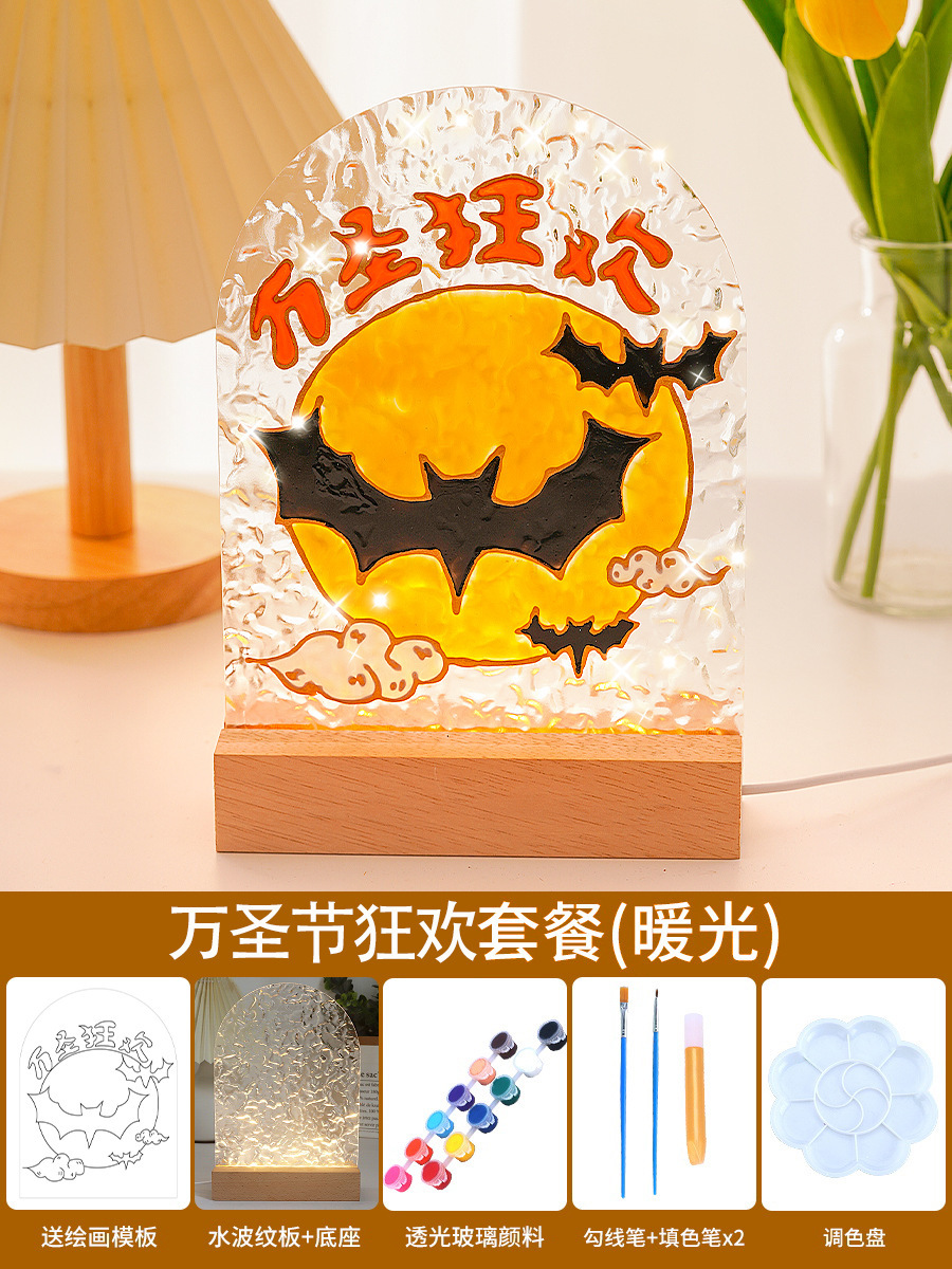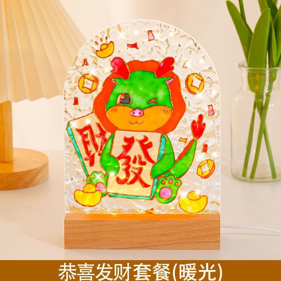 圣诞节儿童节手工diy亚克力郁金香手绘画材料小夜灯暖场活动批发