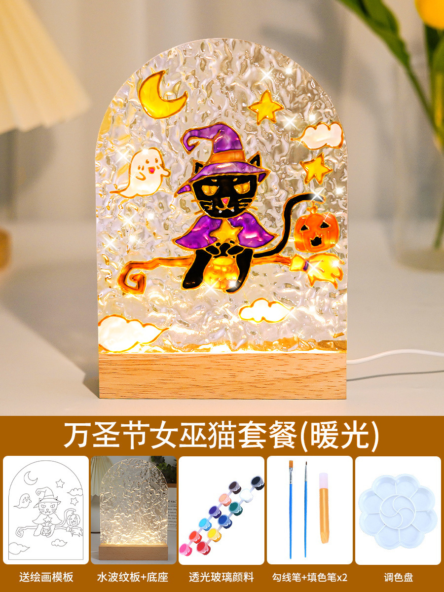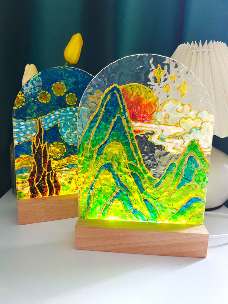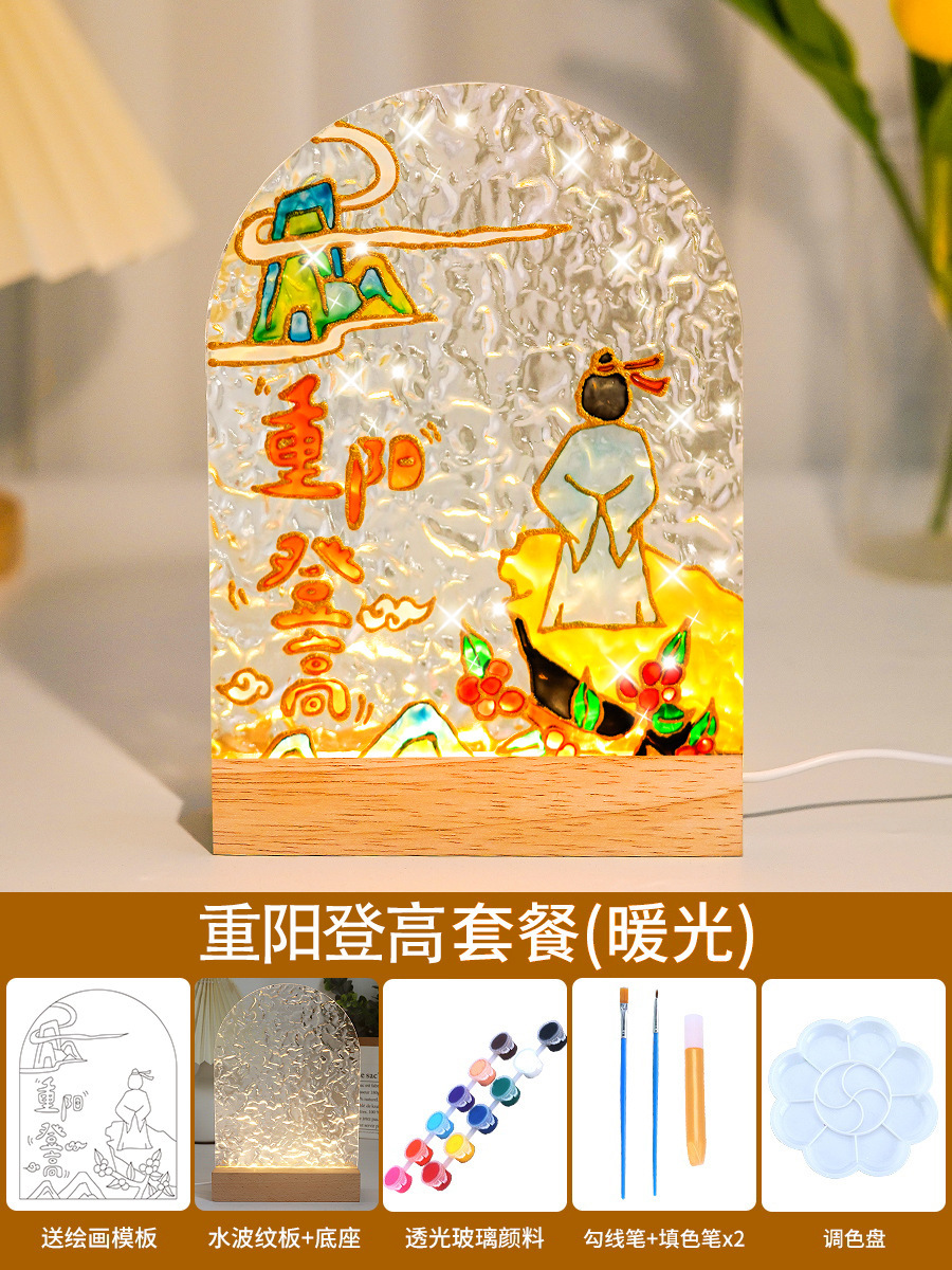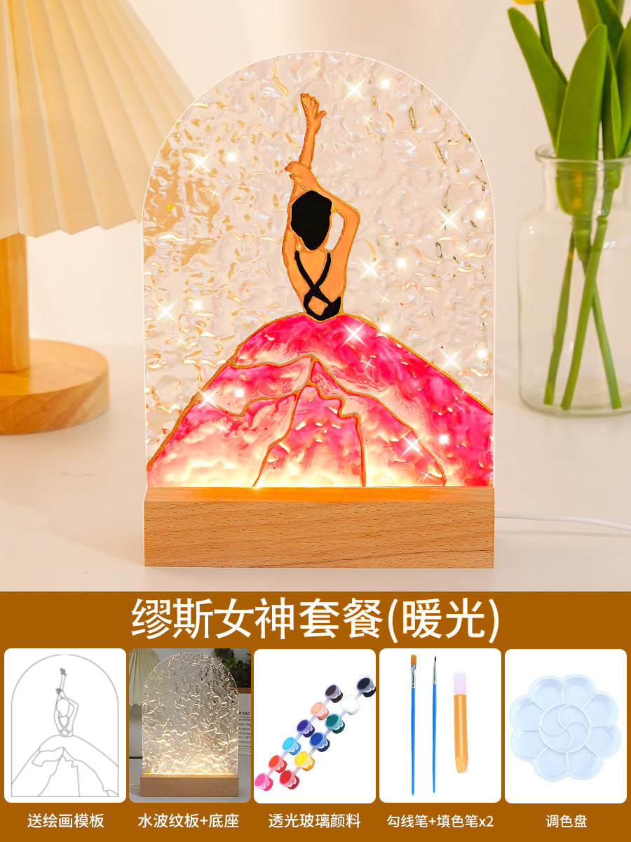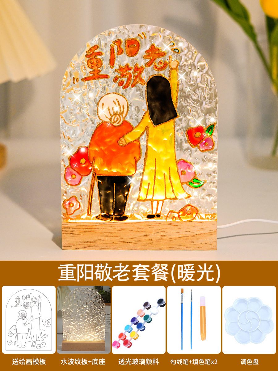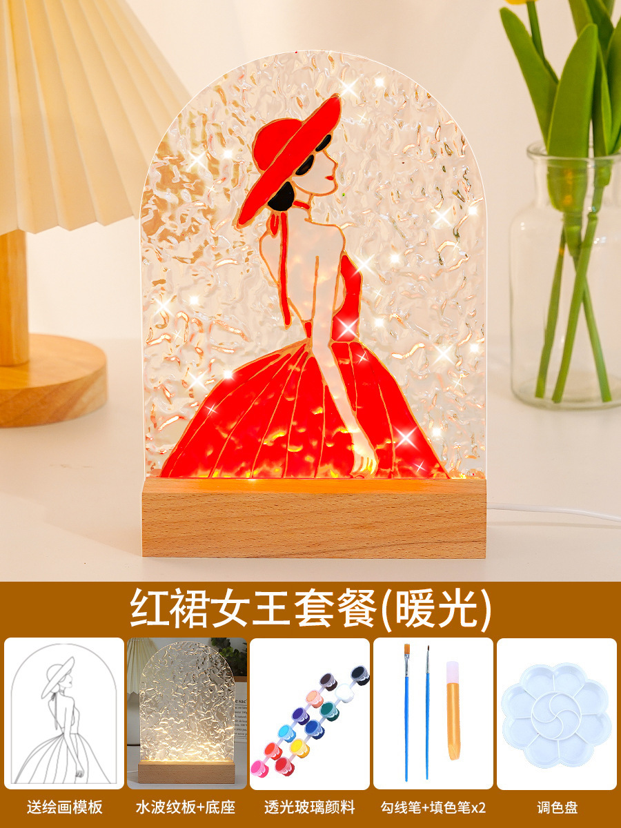 圣诞节儿童节手工diy亚克力郁金香手绘画材料小夜灯暖场活动批发