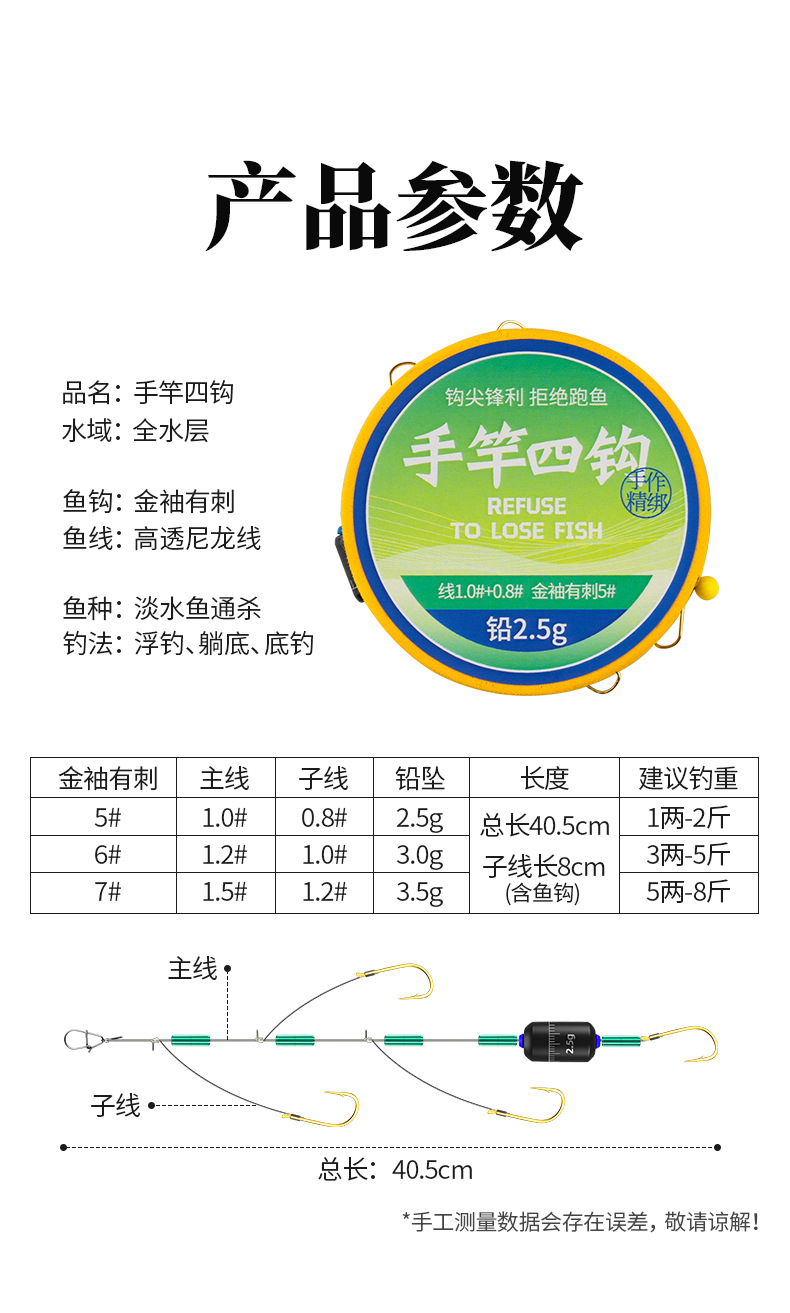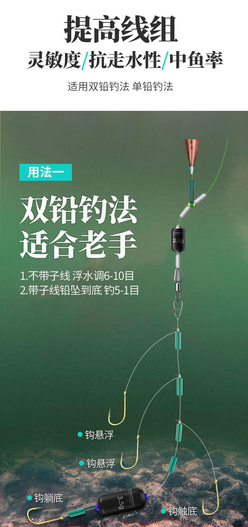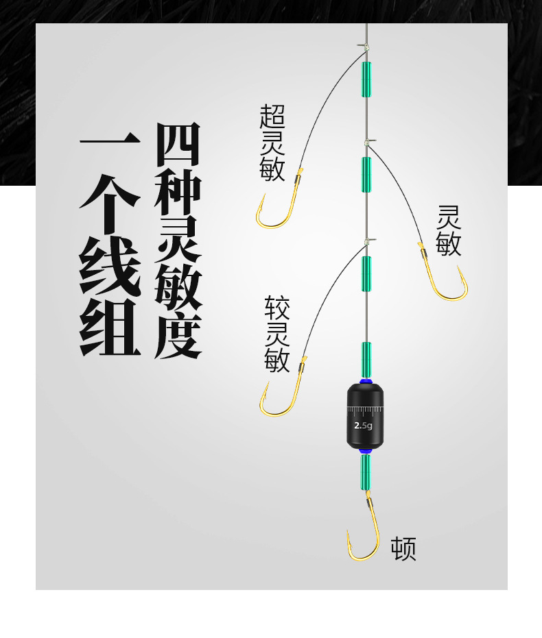 梦钓行手竿串钩四钩钓鱼主线套装金袖鱼钩绑好成品子线袖钩鲫鱼钩