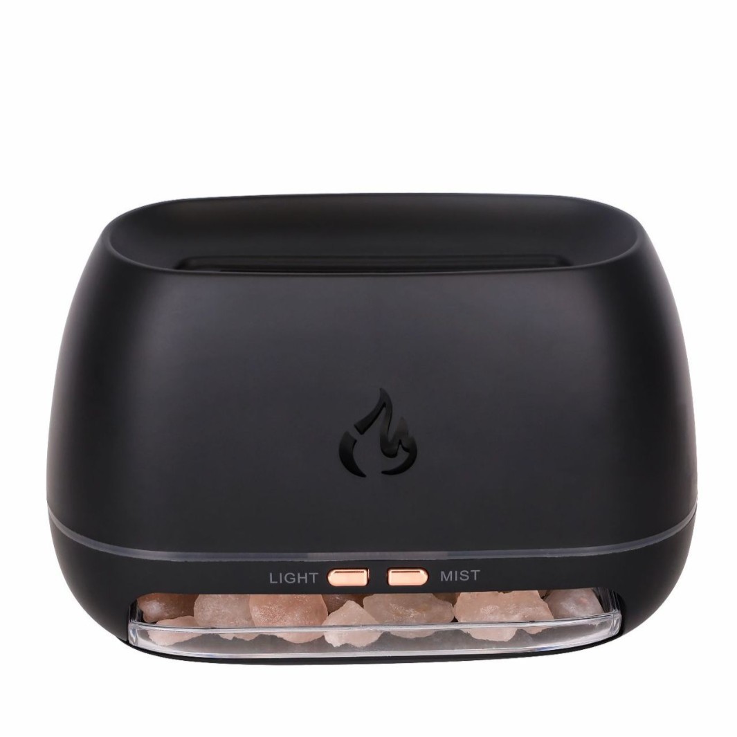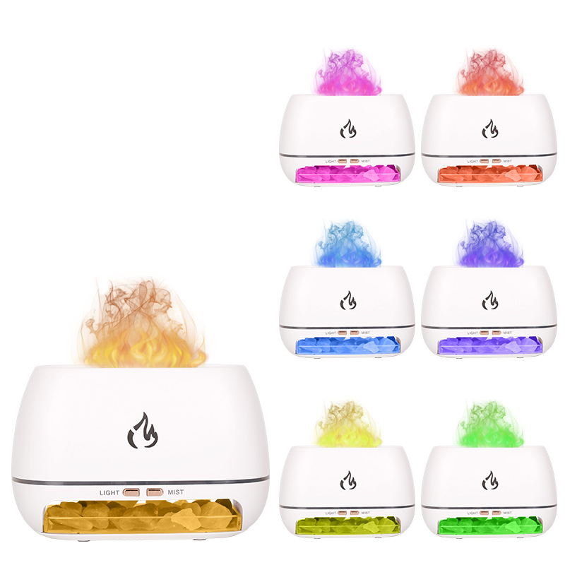 七彩灯光火焰加湿器香薰机 木纹盐石家用精油扩香机