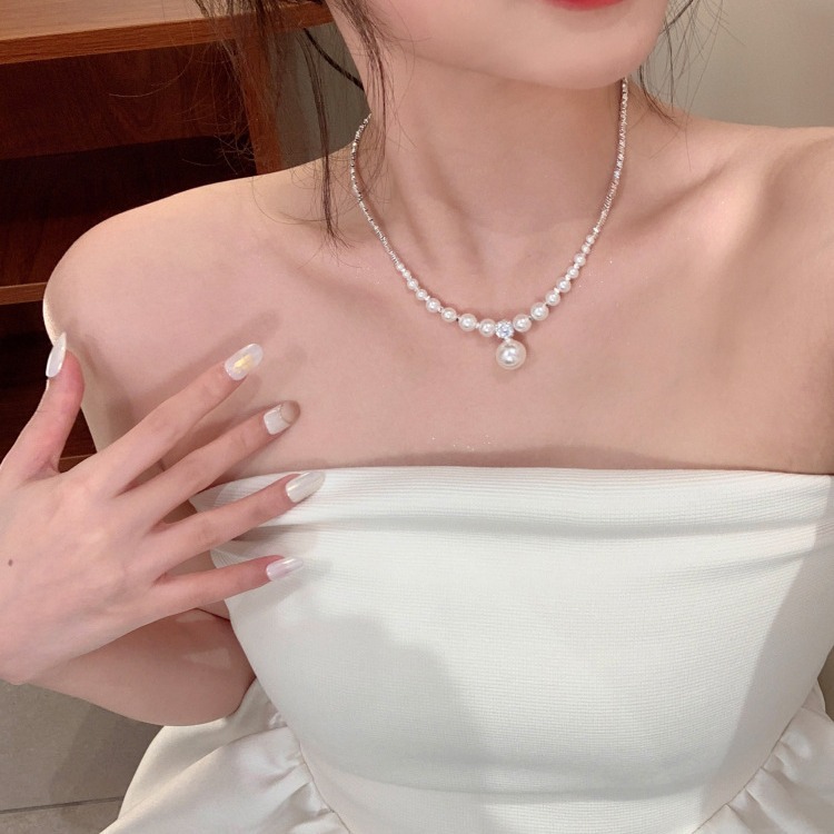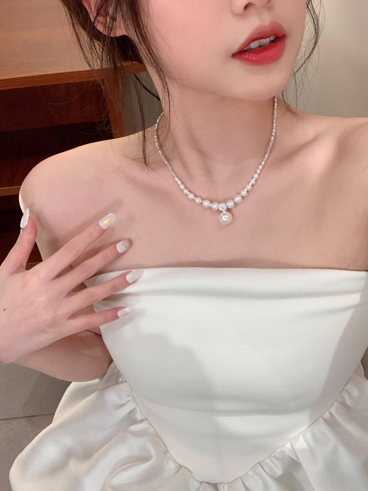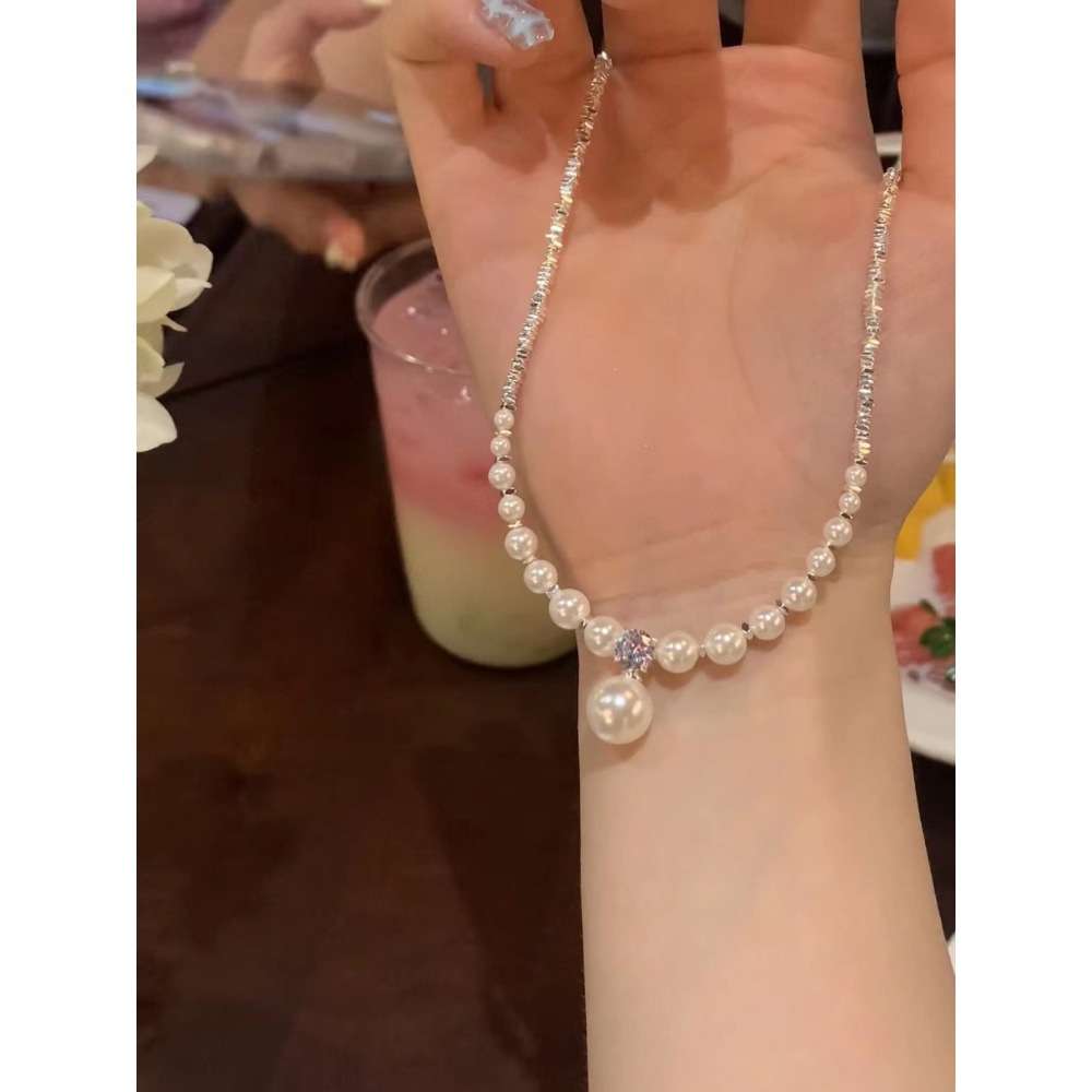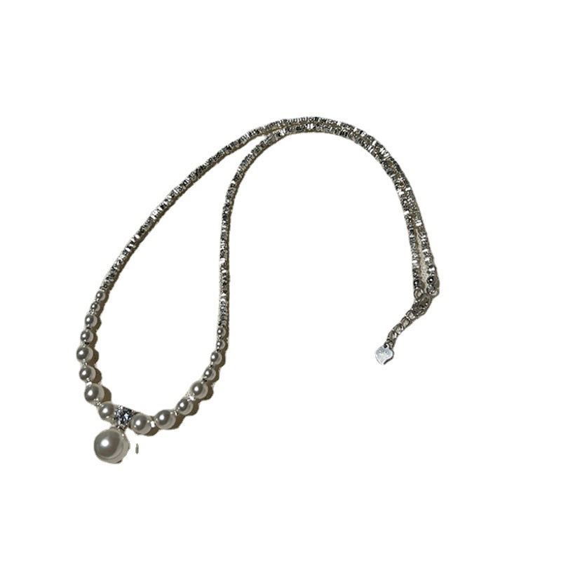 夏季碎银子珍珠吊坠项链女轻奢小众高级感颈链设计感锁骨链配饰品