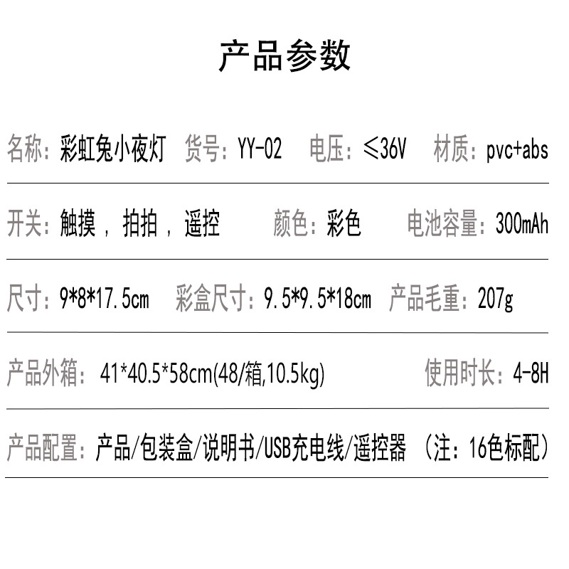 创意礼品兔子灯遥控LED小夜灯小兔几伴睡触控USB充电氛围灯拍拍灯