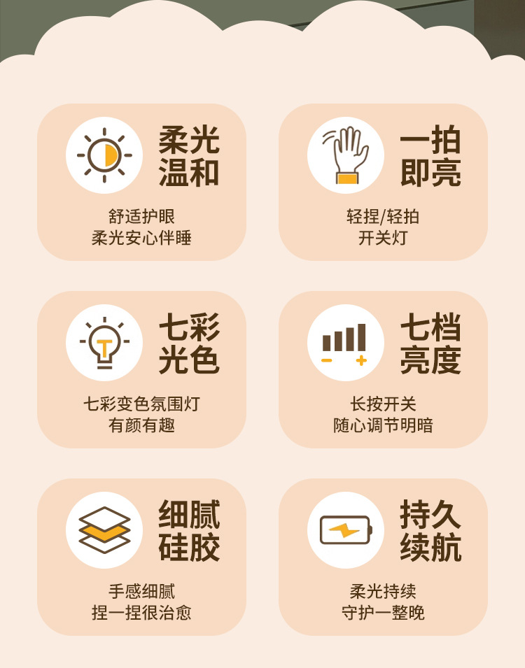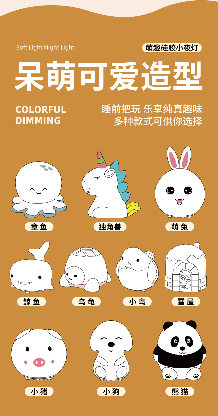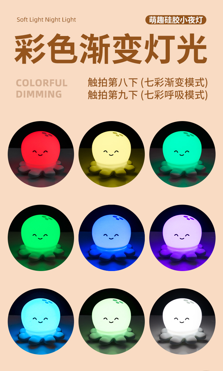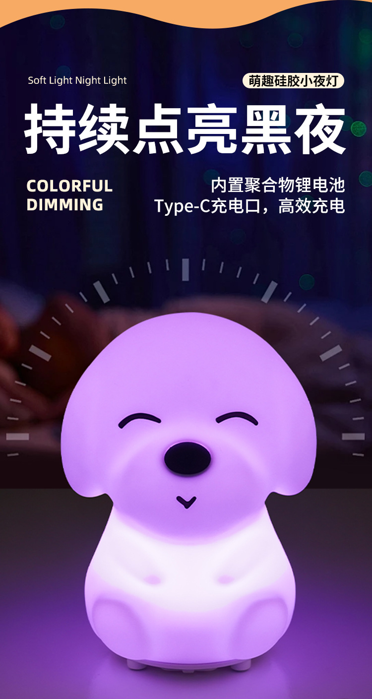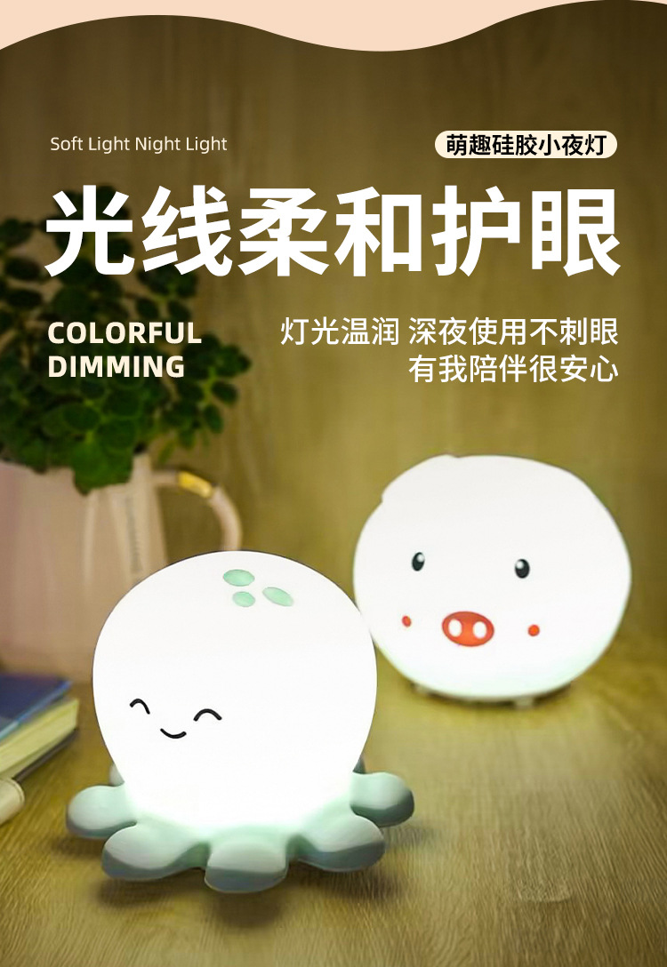 七彩萌兔硅胶灯 USB可爱七彩变色硅胶灯 创意卧室床头氛围小夜灯