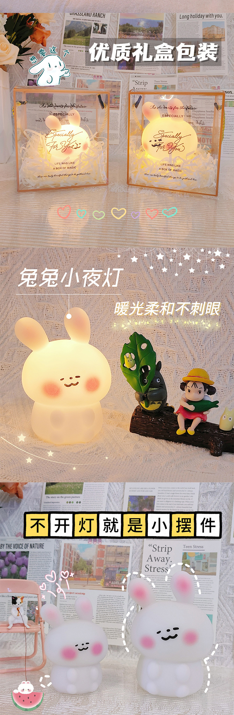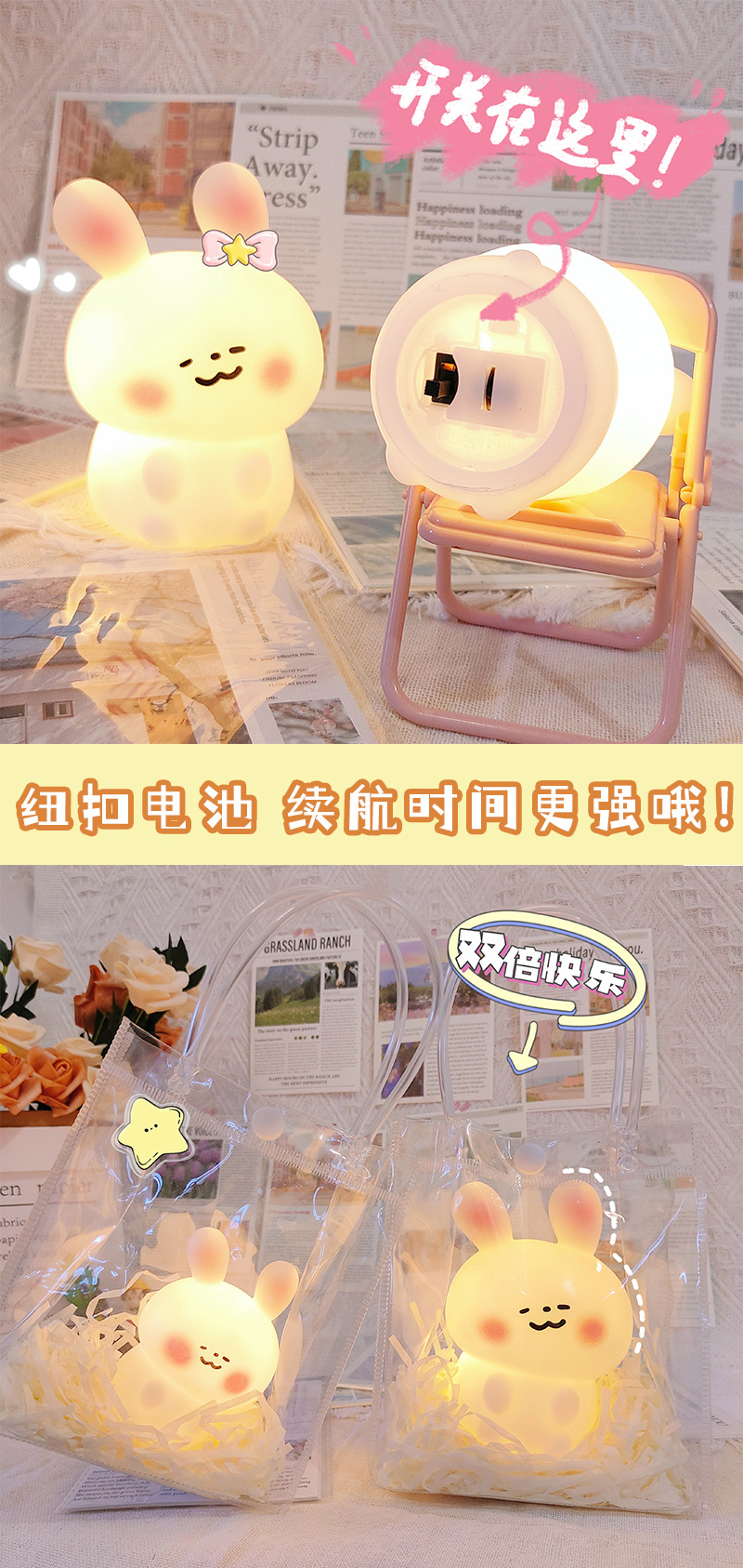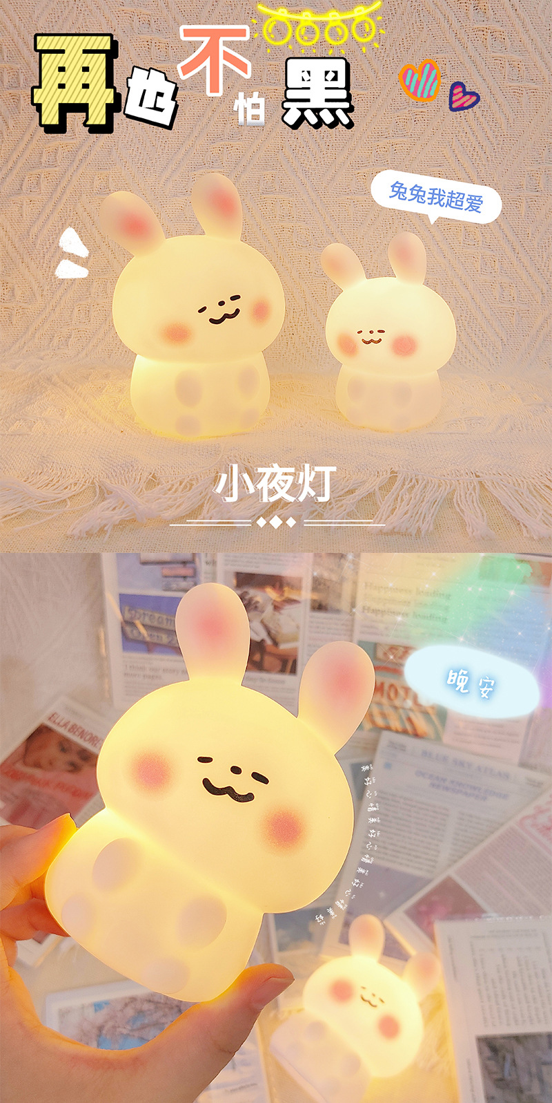 卡通创意兔子小夜灯卧室ins风少女心床头灯氛围灯摆件生日礼物女