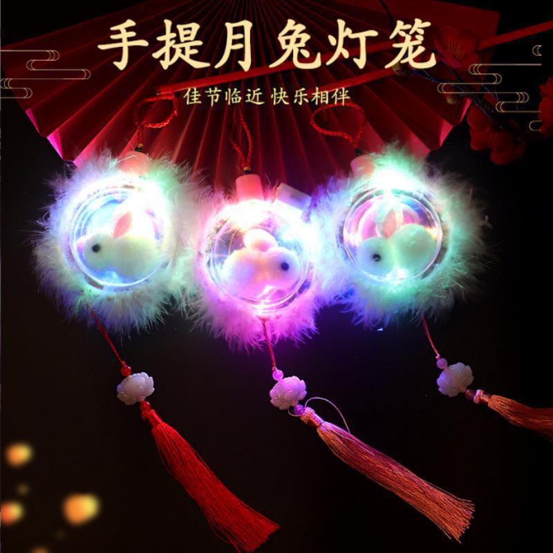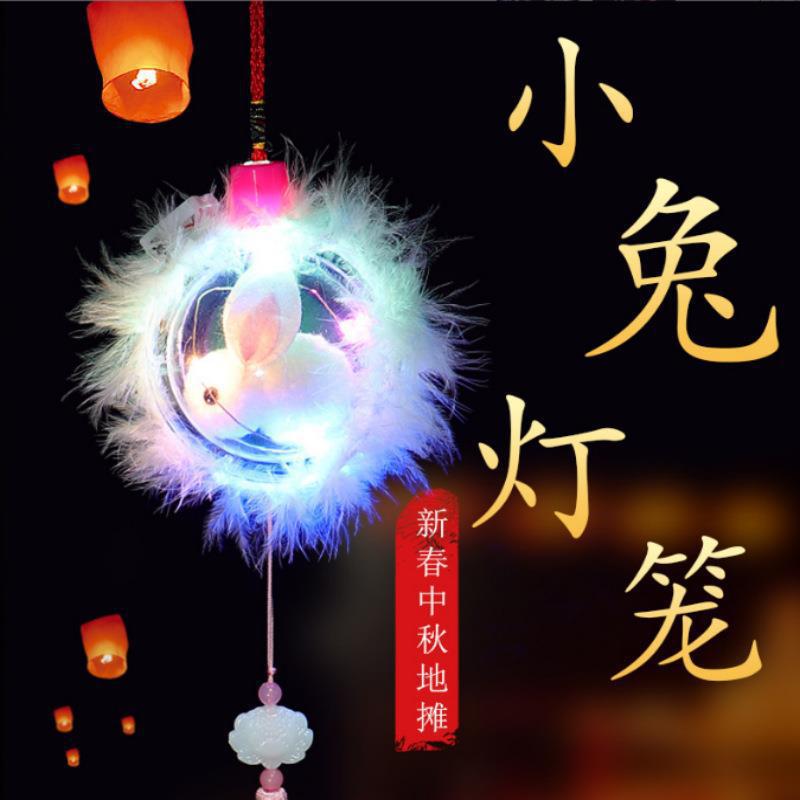 新款发光手提玉兔灯笼元宵节兔子花灯地摊夜市批发儿童小玩具礼品