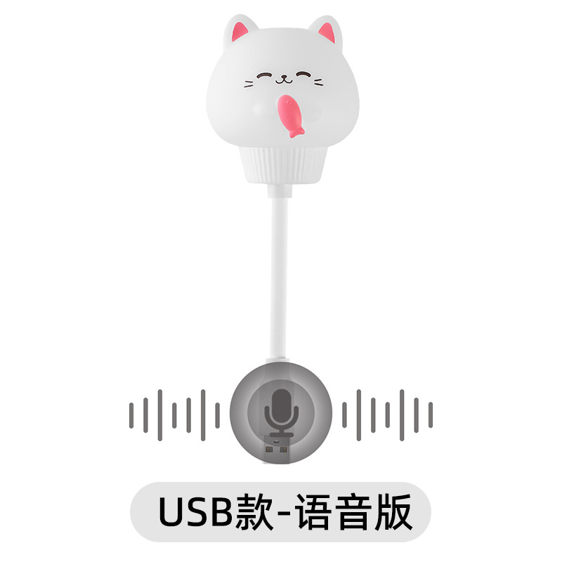 语音灯usb声控灯插电遥控儿童房宿舍床头台灯猫咪兔子小夜灯礼物