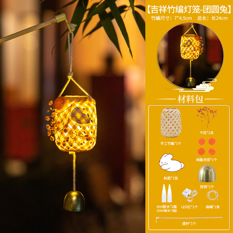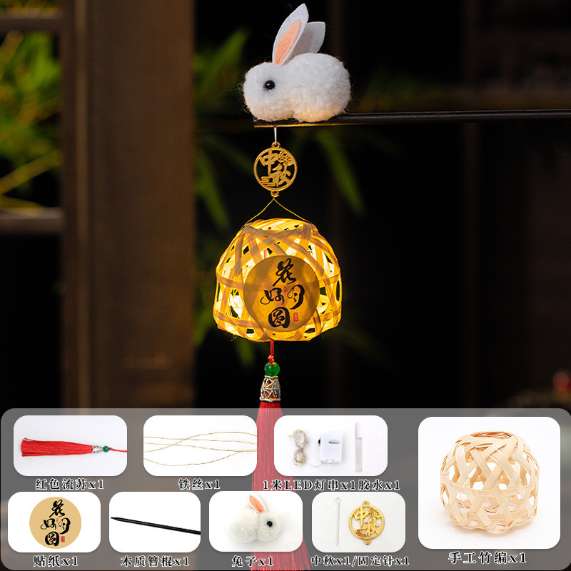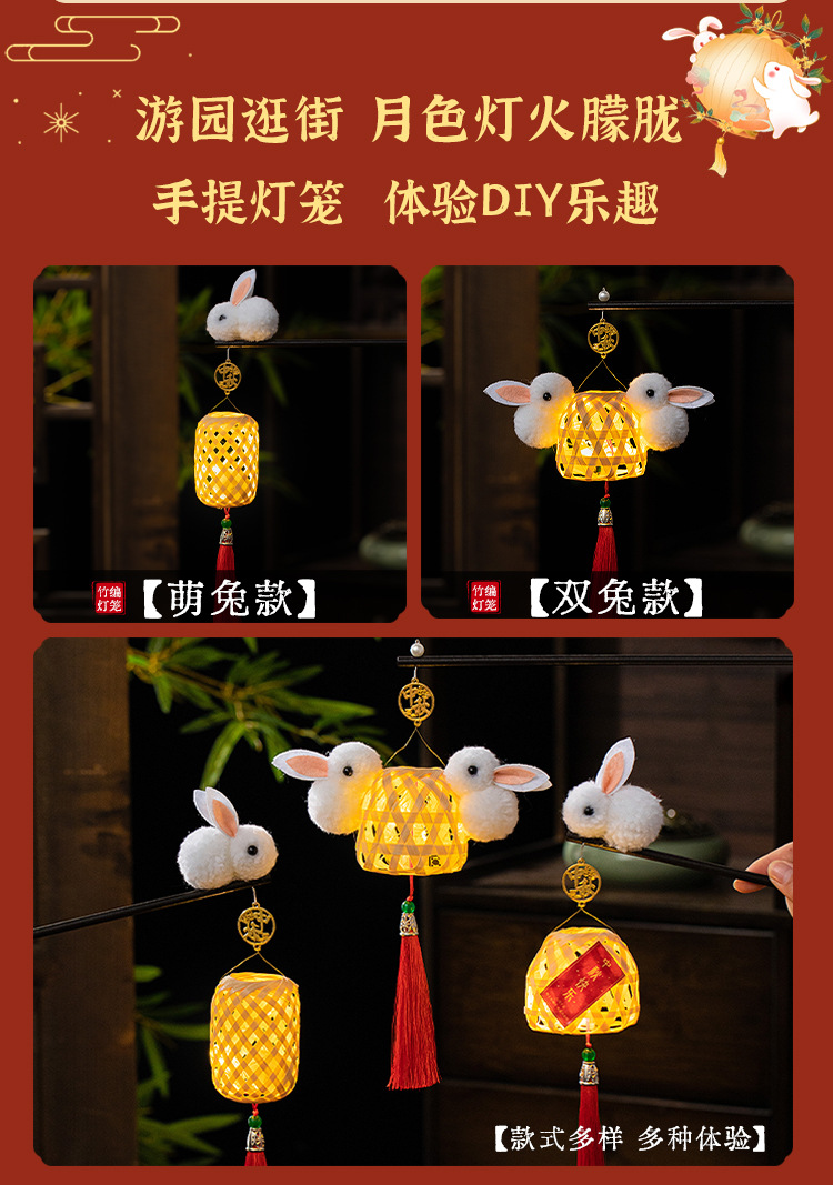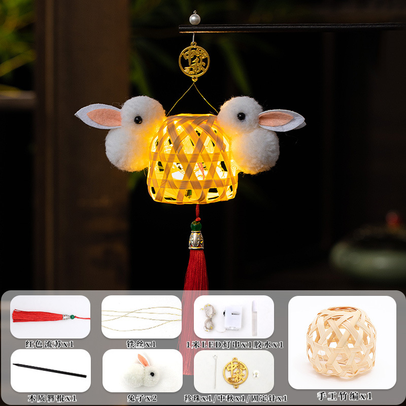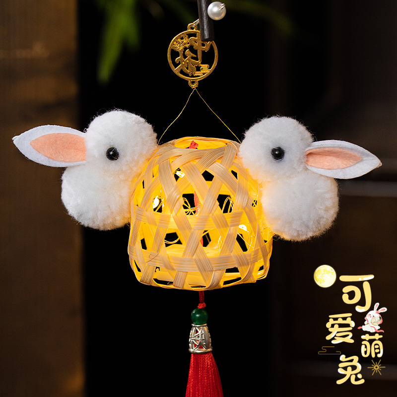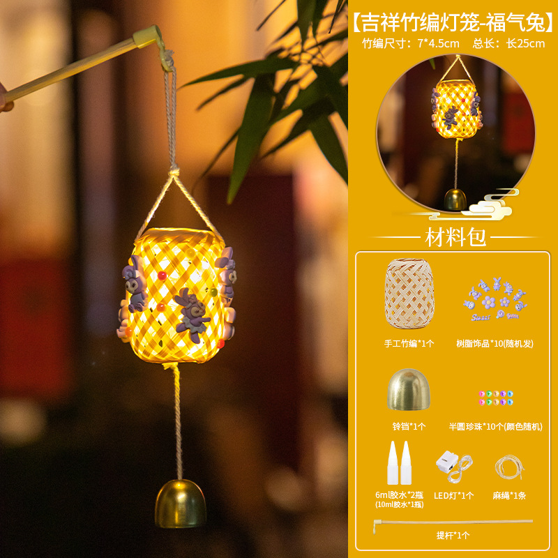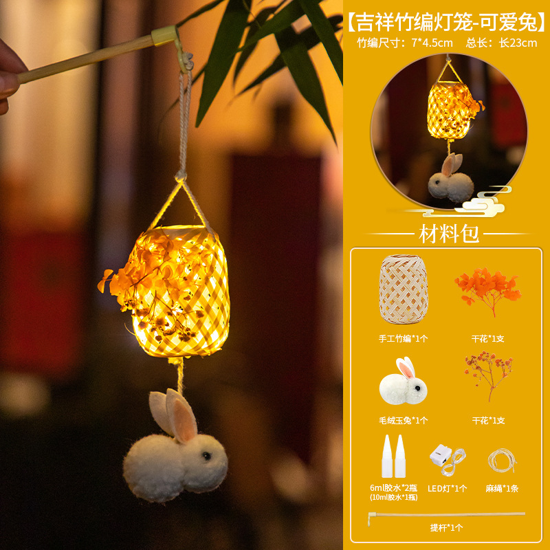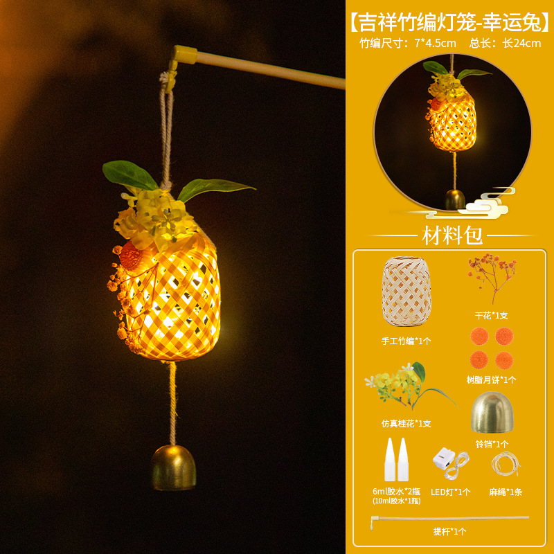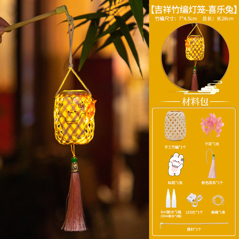 2025蛇年元宵节兔子灯笼可爱竹编花灯diy材料包儿童手提发光灯笼