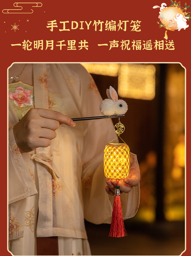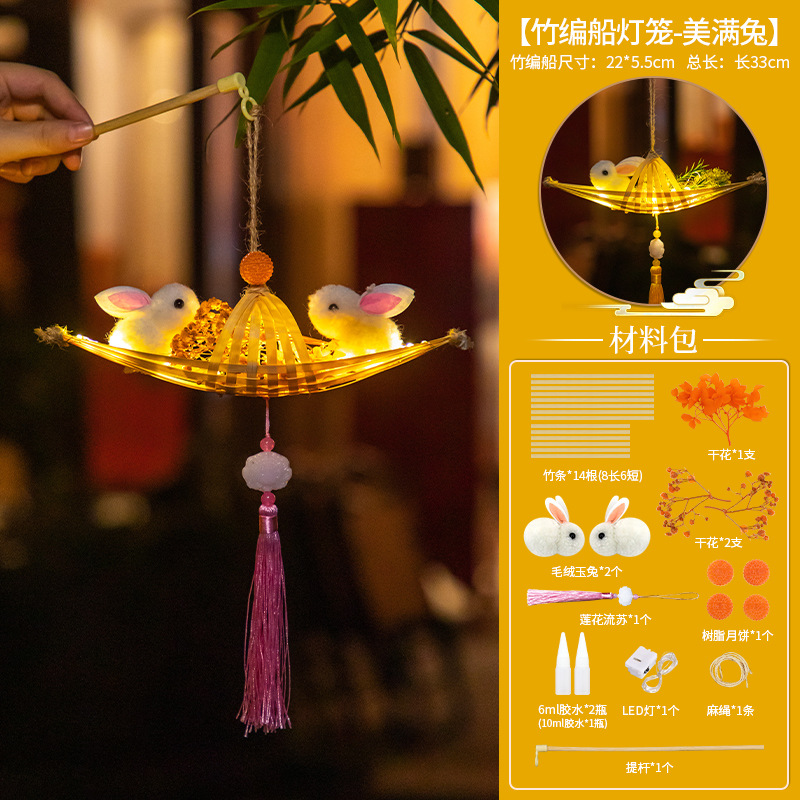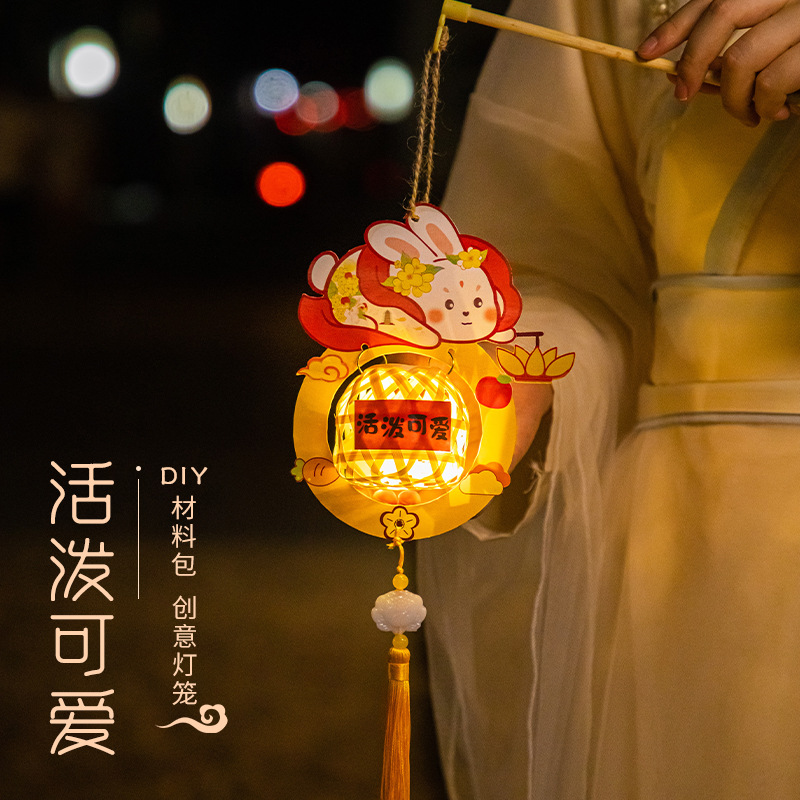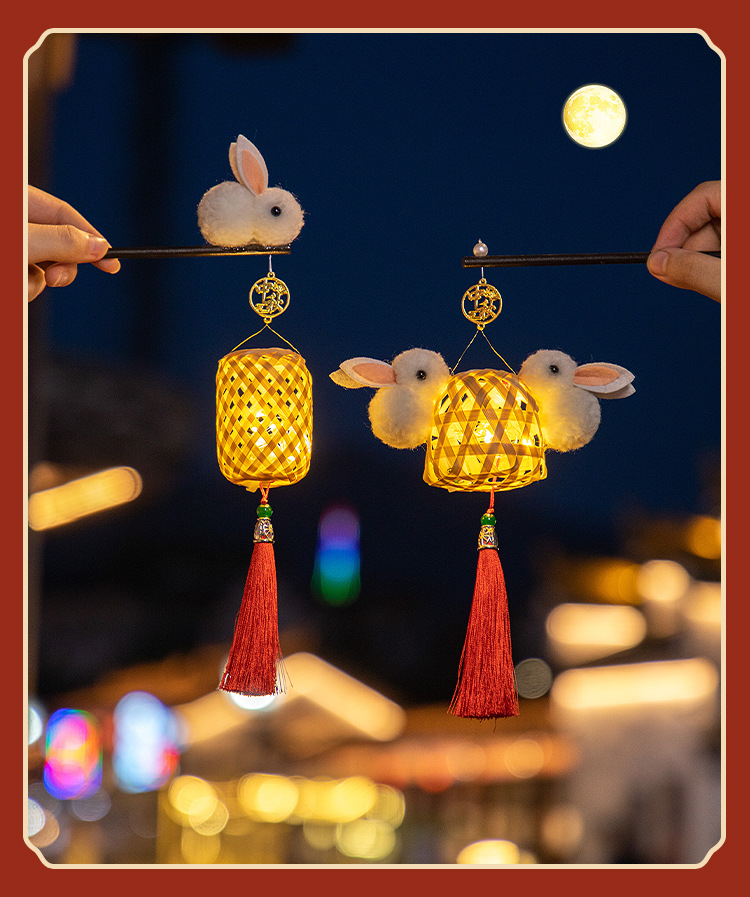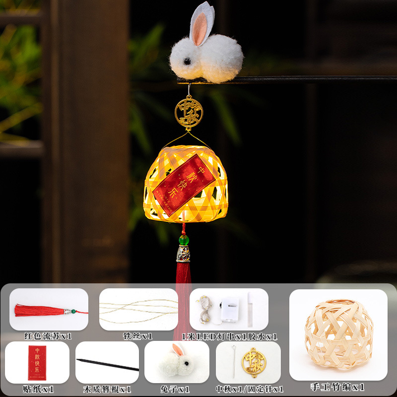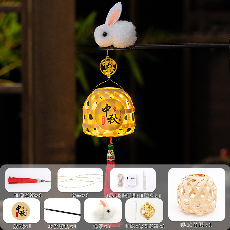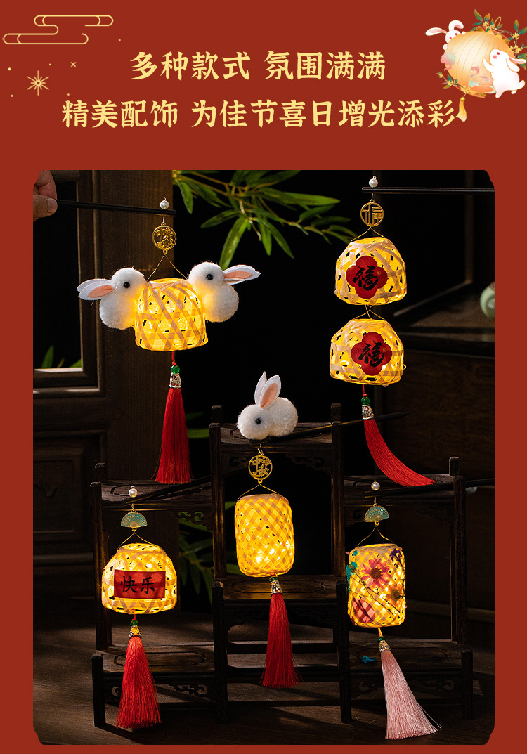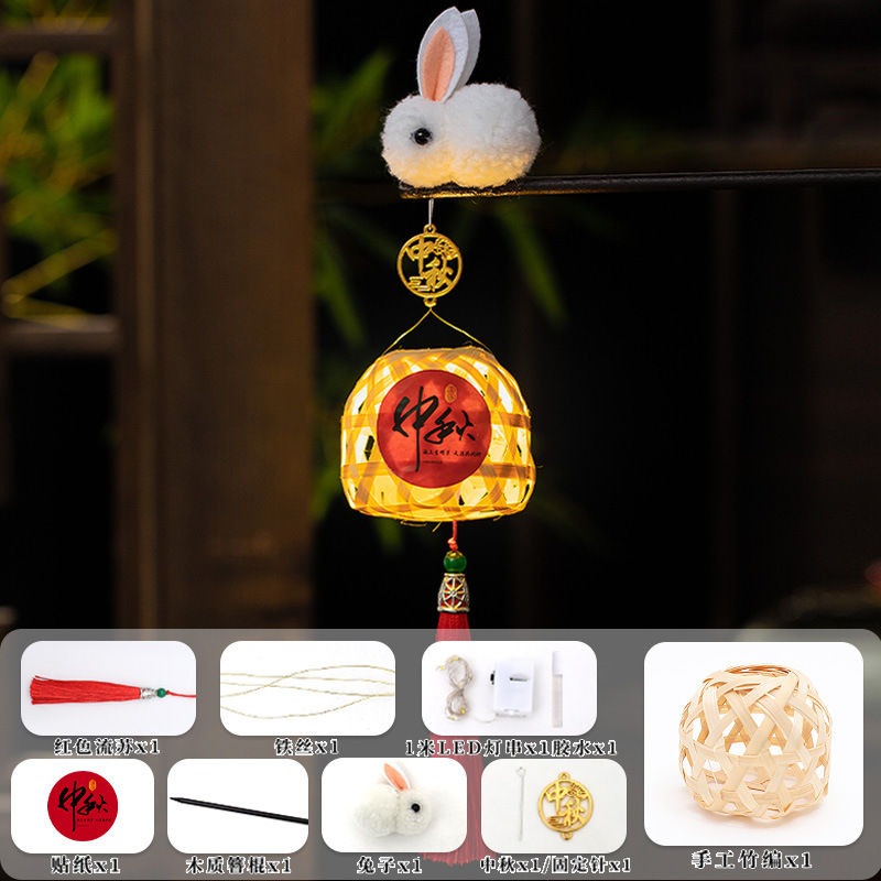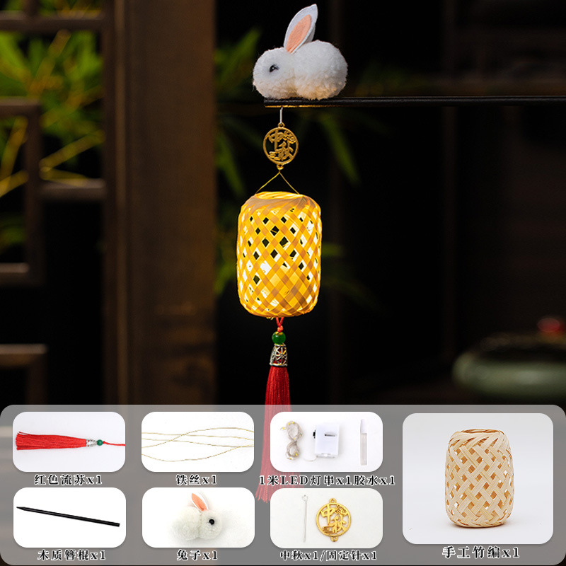 2025蛇年元宵节兔子灯笼可爱竹编花灯diy材料包儿童手提发光灯笼