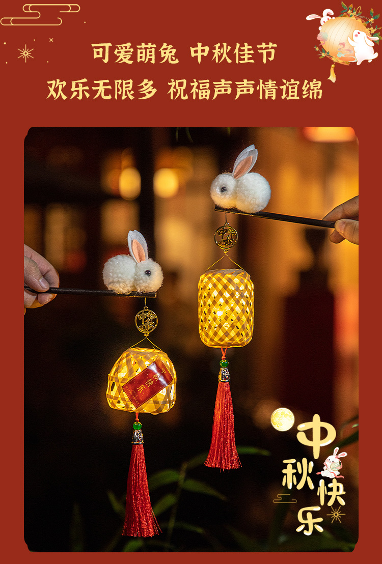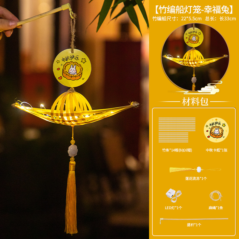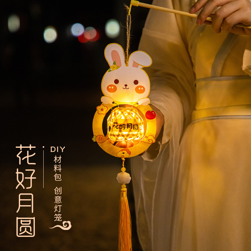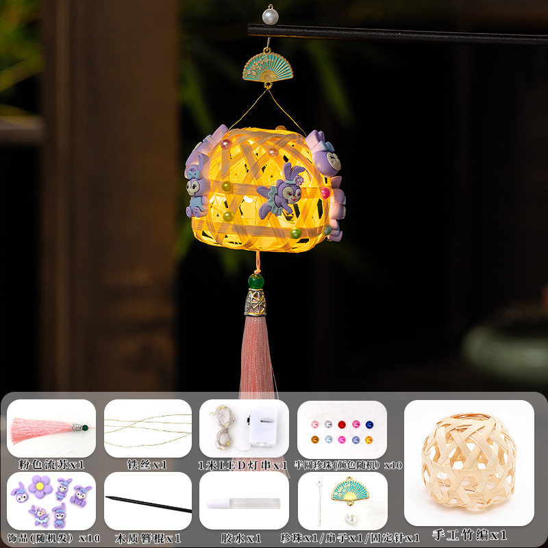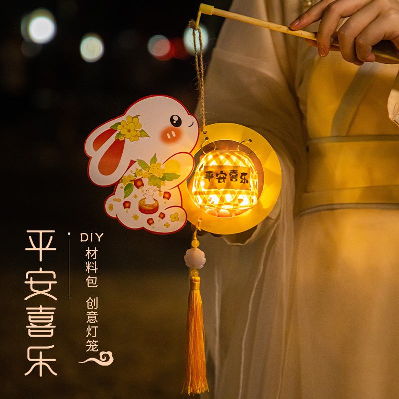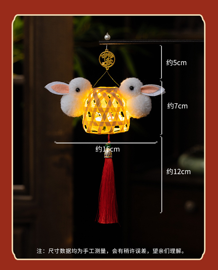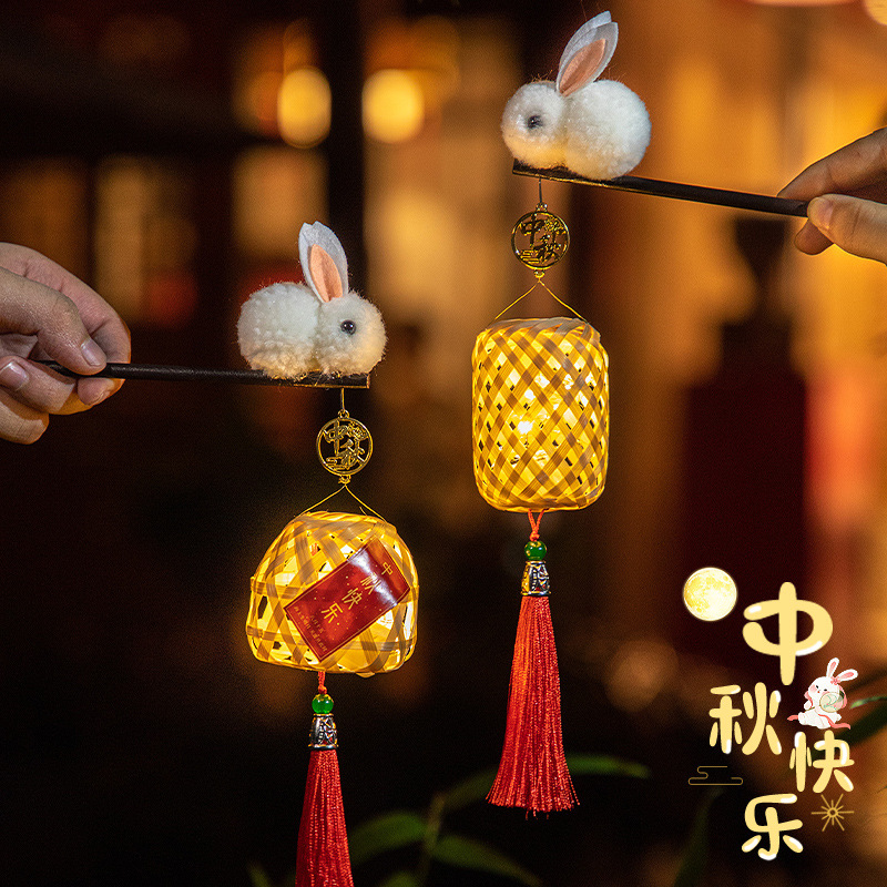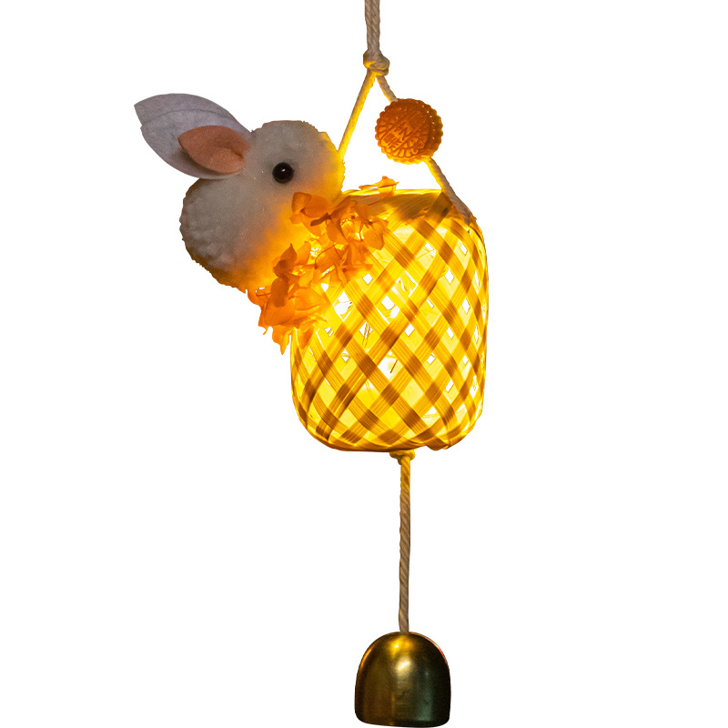 2025蛇年元宵节兔子灯笼可爱竹编花灯diy材料包儿童手提发光灯笼