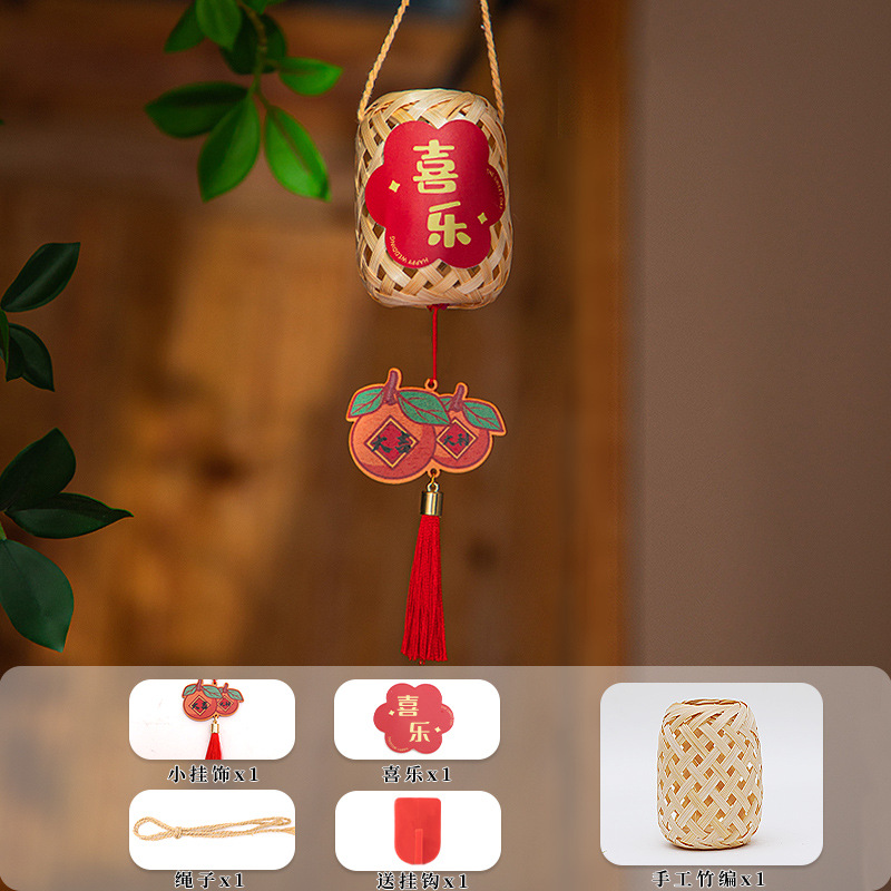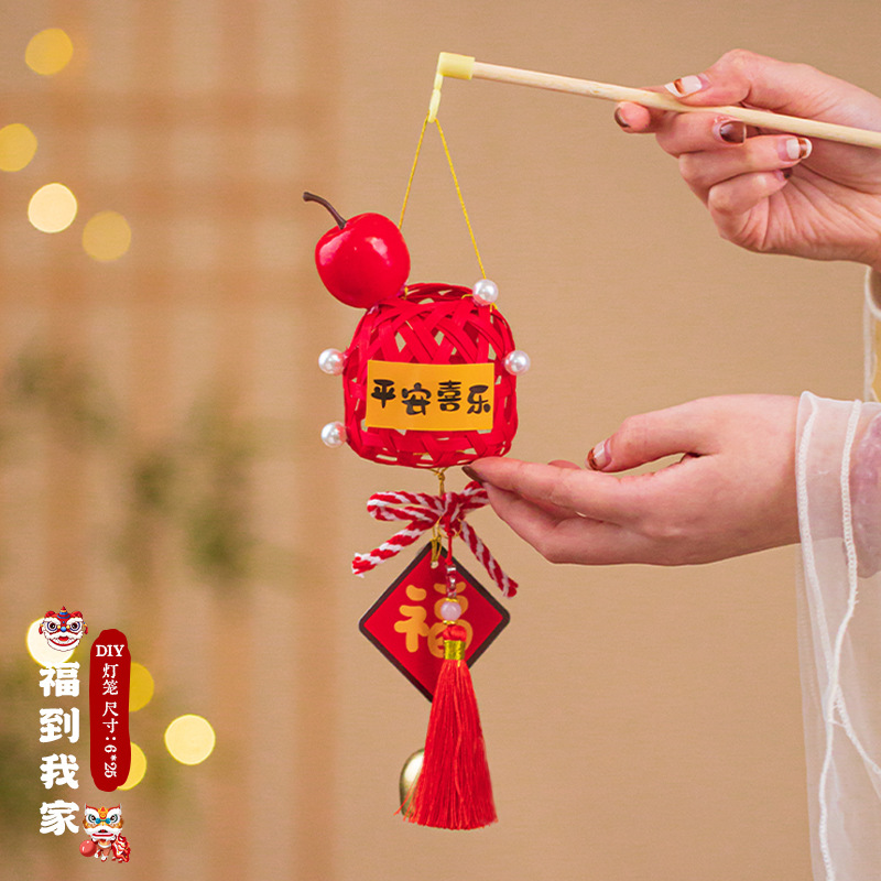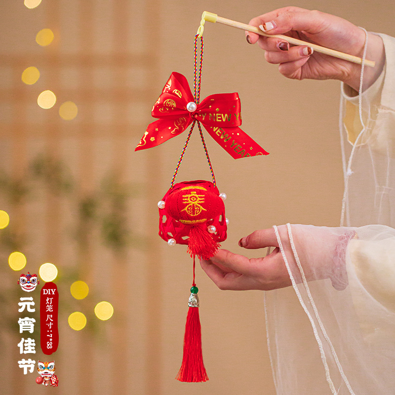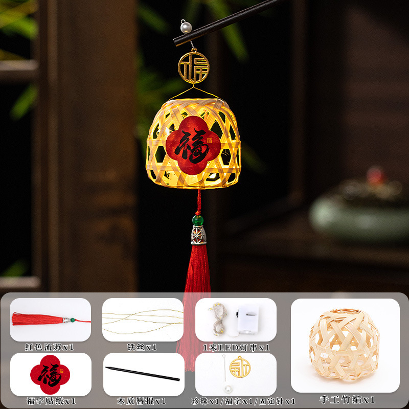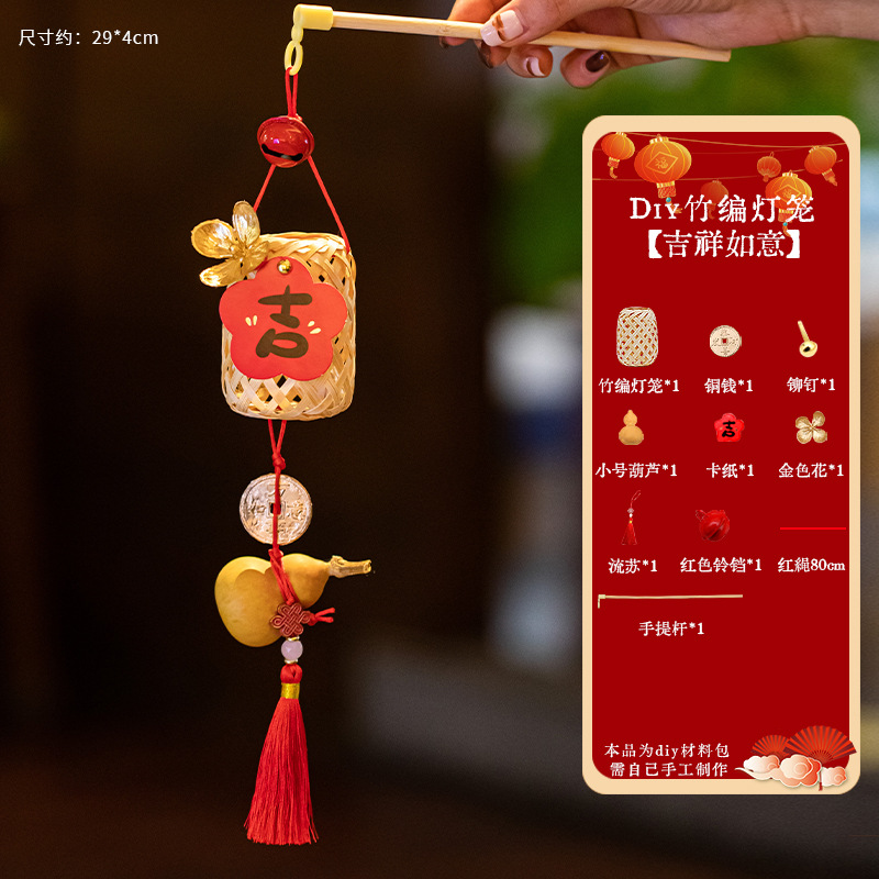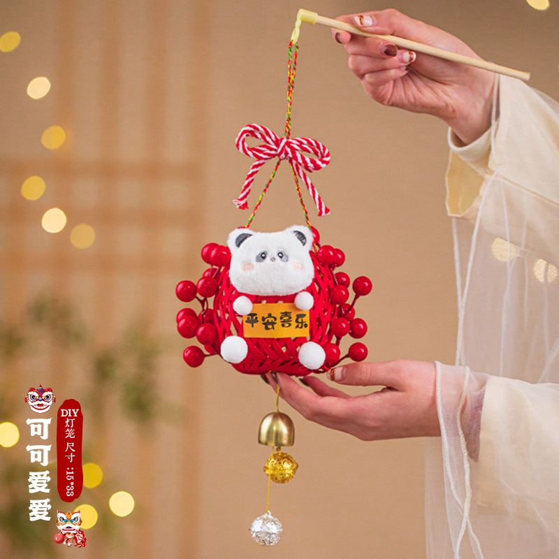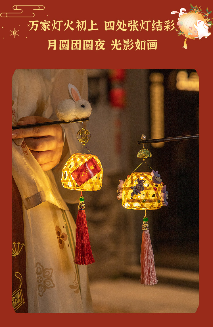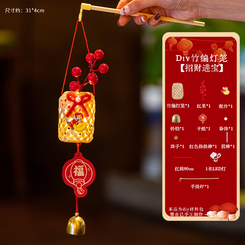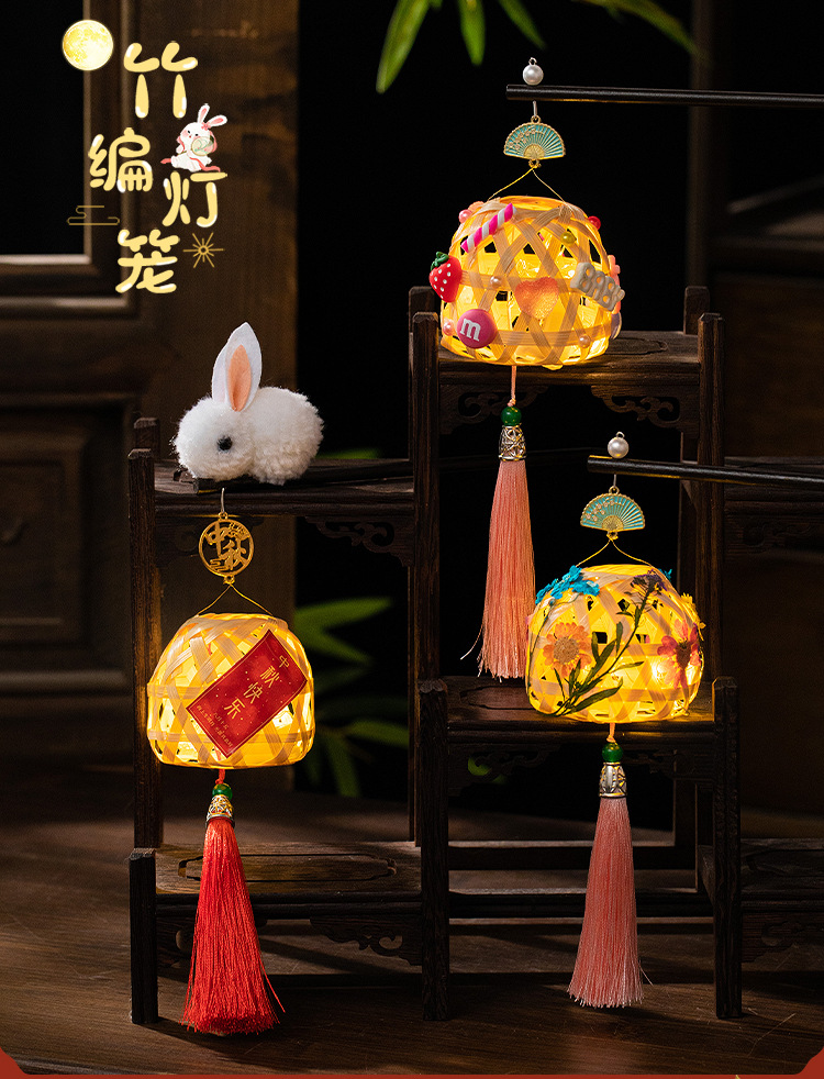 2025蛇年元宵节兔子灯笼可爱竹编花灯diy材料包儿童手提发光灯笼