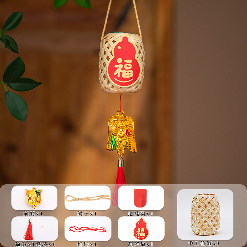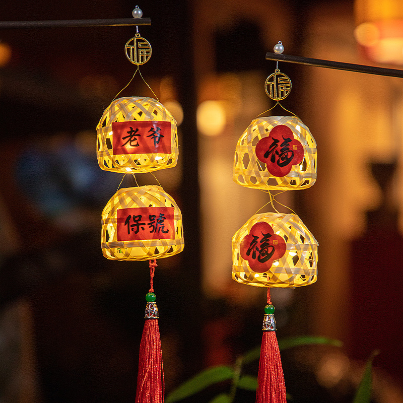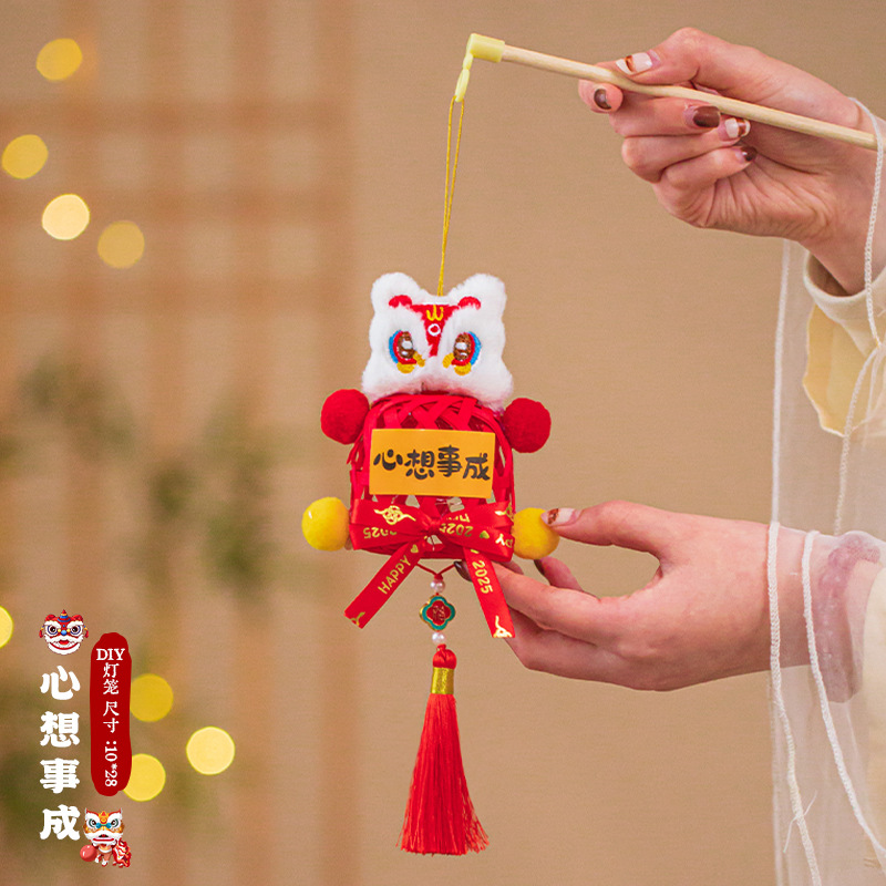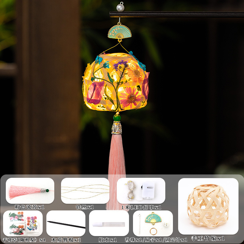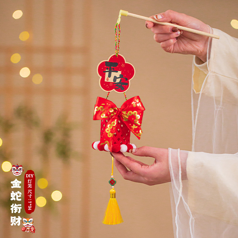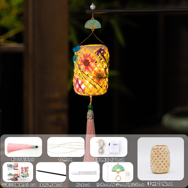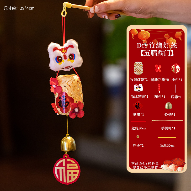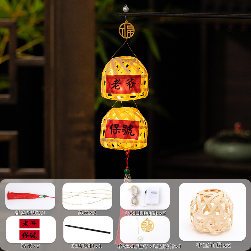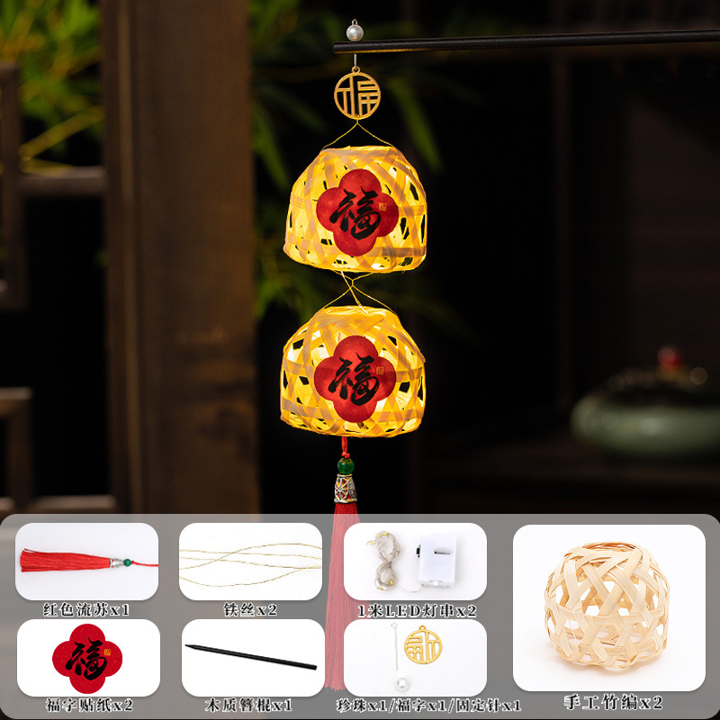 2025蛇年元宵节兔子灯笼可爱竹编花灯diy材料包儿童手提发光灯笼