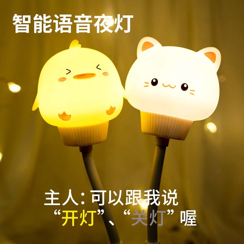 智能语音小夜灯usb声控遥控儿童宿舍床头台灯猫咪兔子卡通小夜灯
