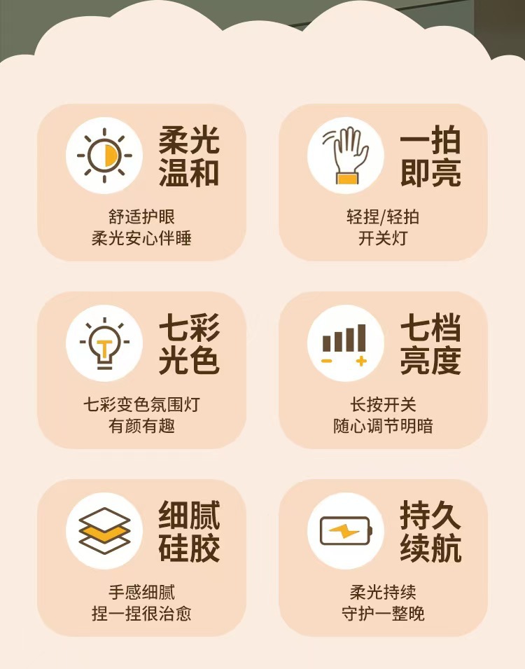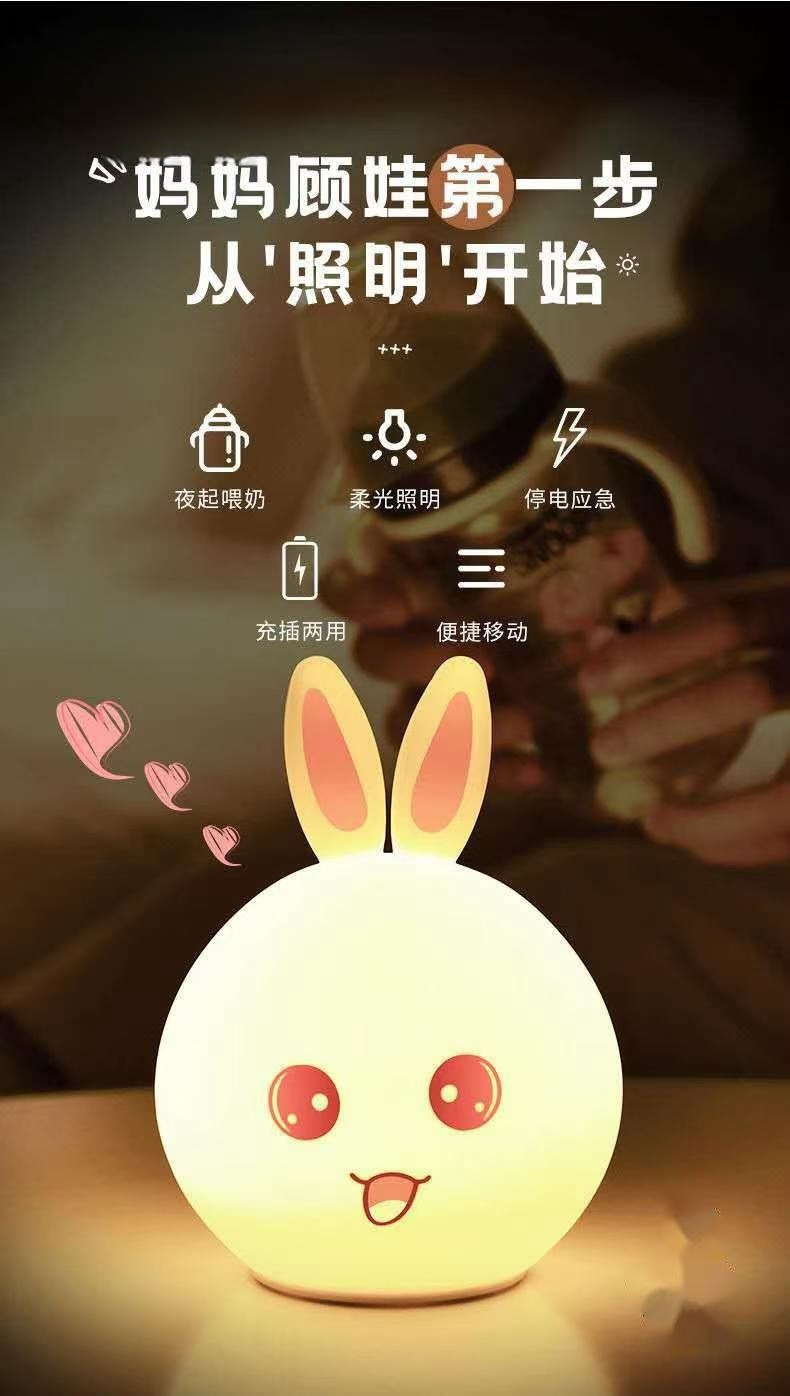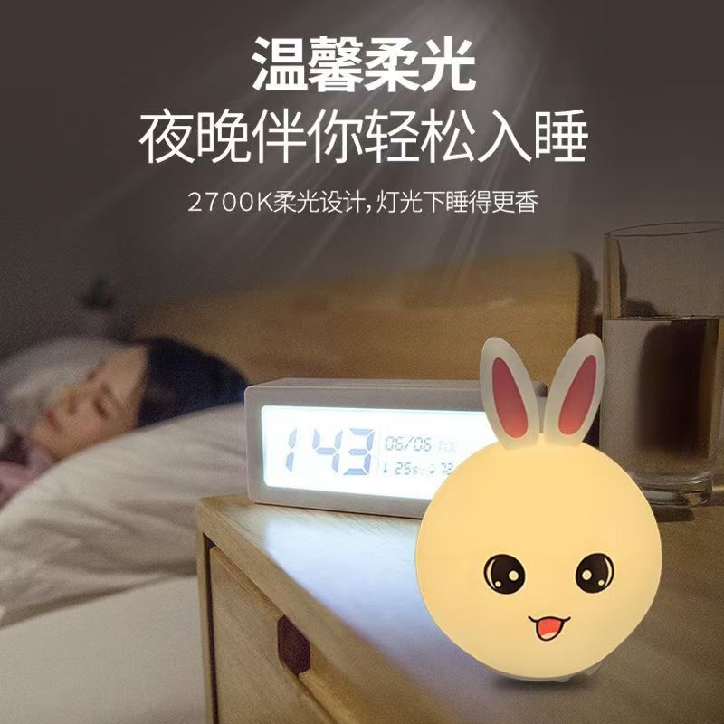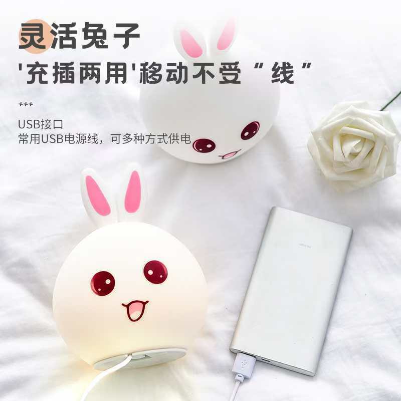 硅胶小兔子拍拍灯卧室床头儿童伴睡婴儿喂奶护眼小夜灯解压礼物