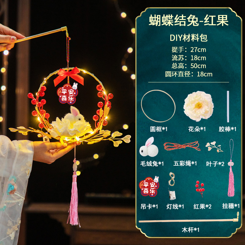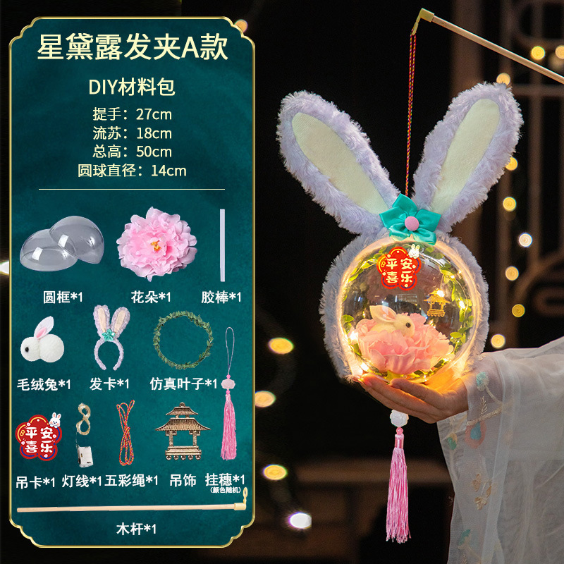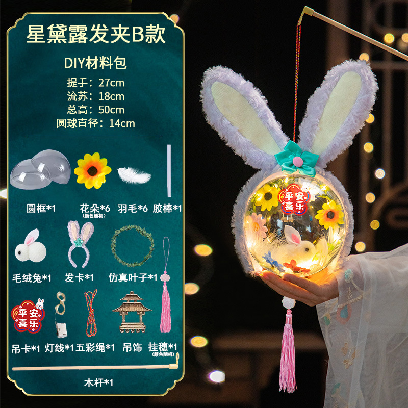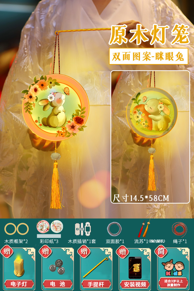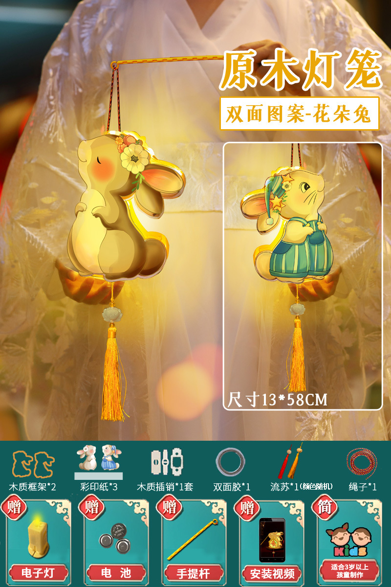 中秋节兔子灯笼手工diy儿童制作材料包古风玉兔花灯批发玩具非遗