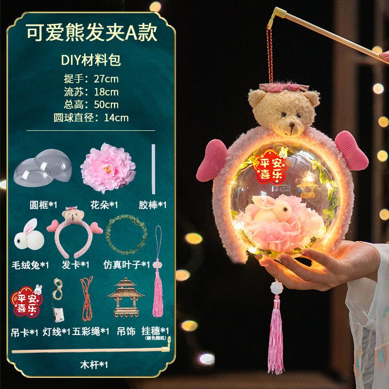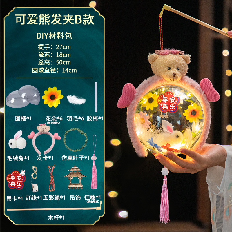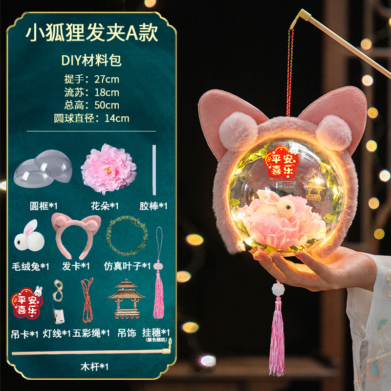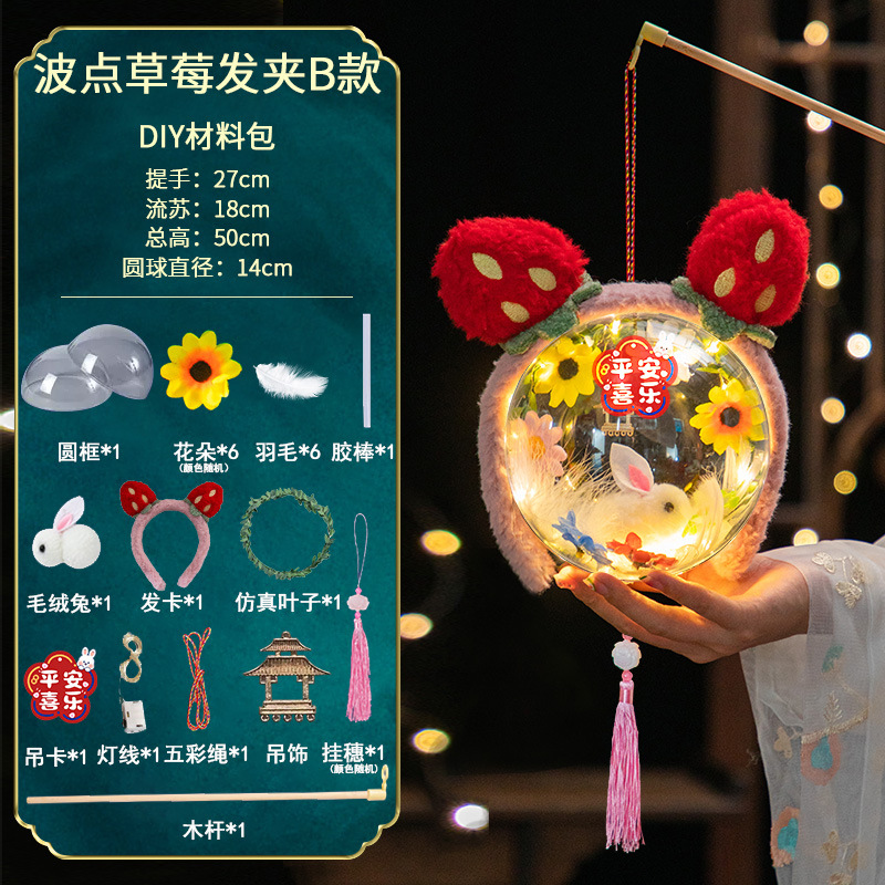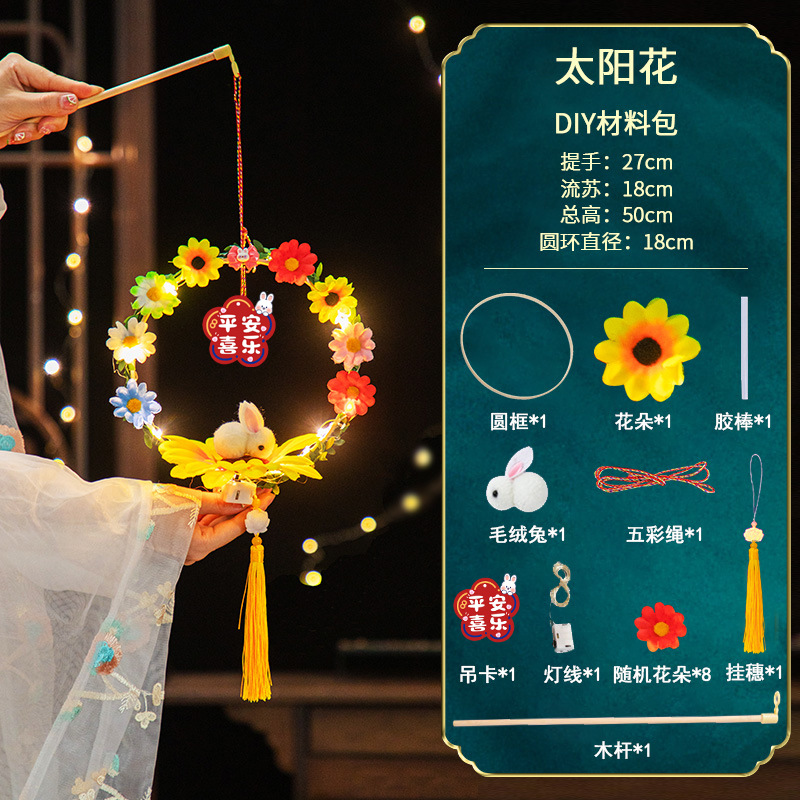 中秋节兔子灯笼手工diy儿童制作材料包古风玉兔花灯批发玩具非遗