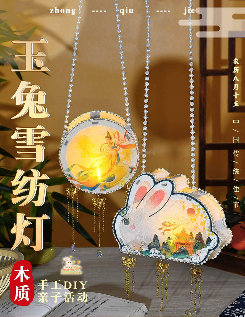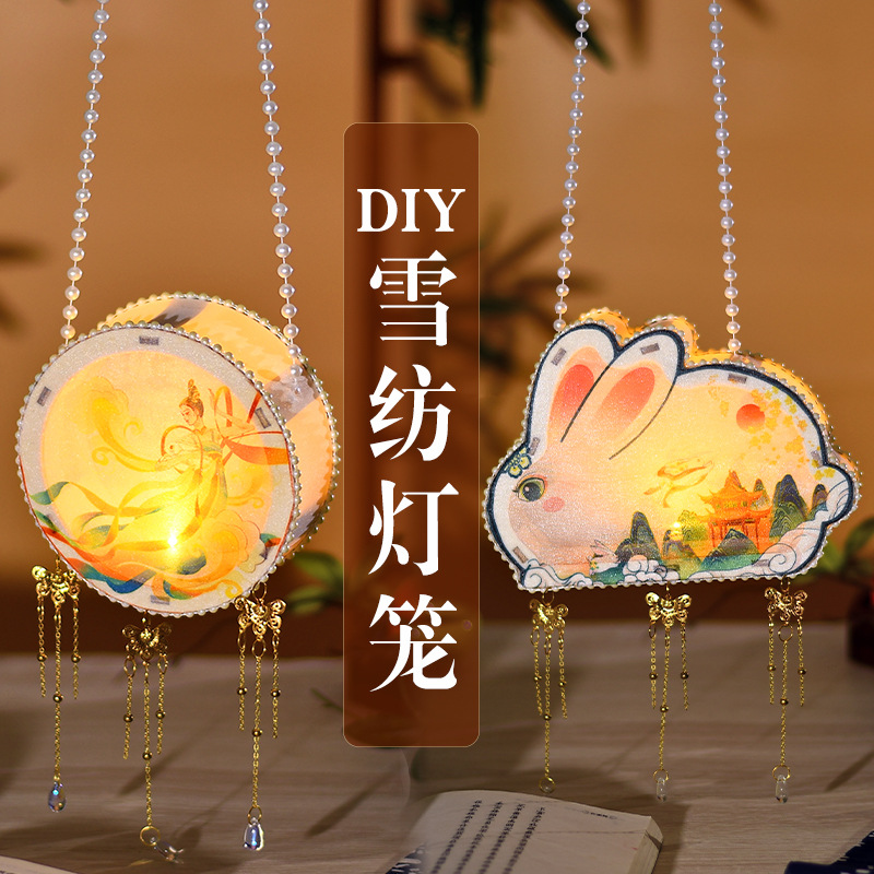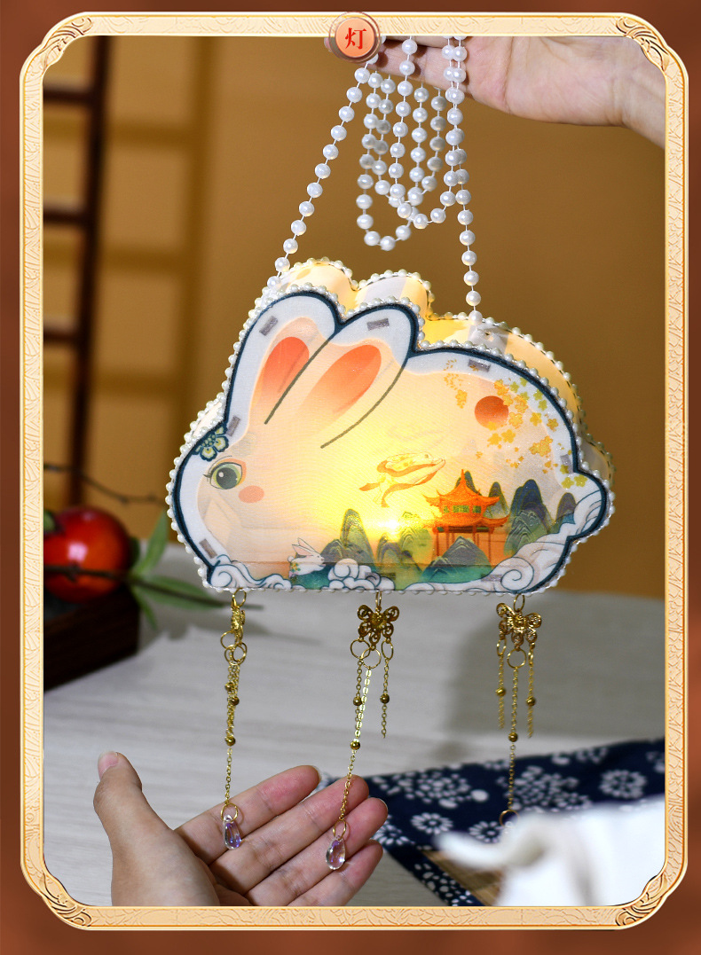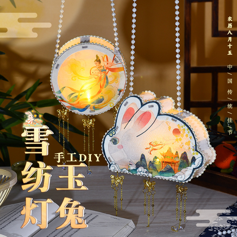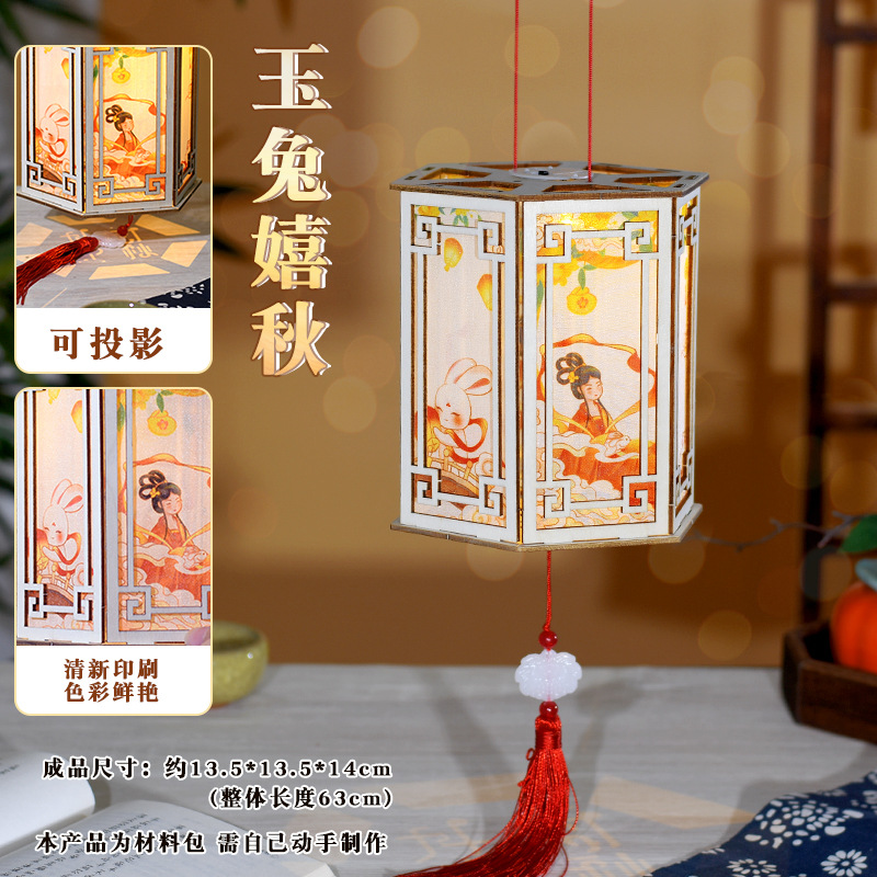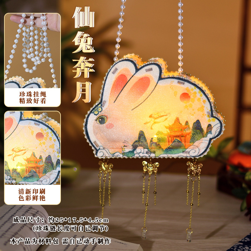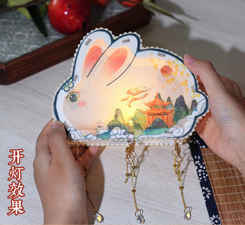 新年diy兔子古风手工制作材料包汉服儿童手提花灯玉兔发光灯笼